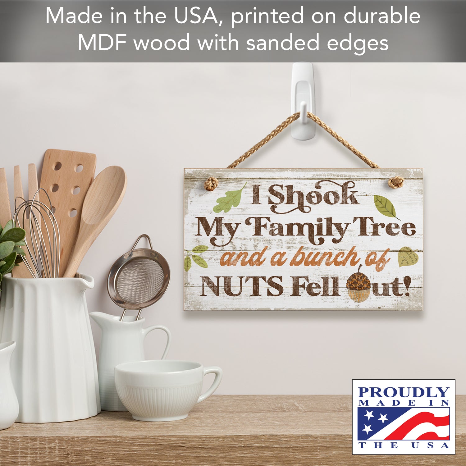 Shook My Family Tree Humorous Hanging Wood Wall Sign 9.5” x 5.75” Made in the USA
