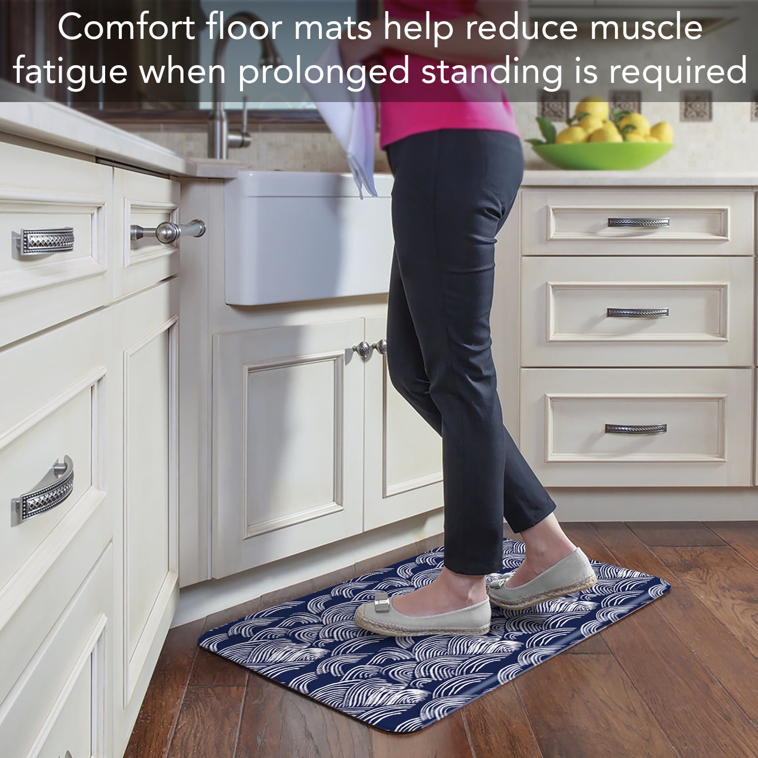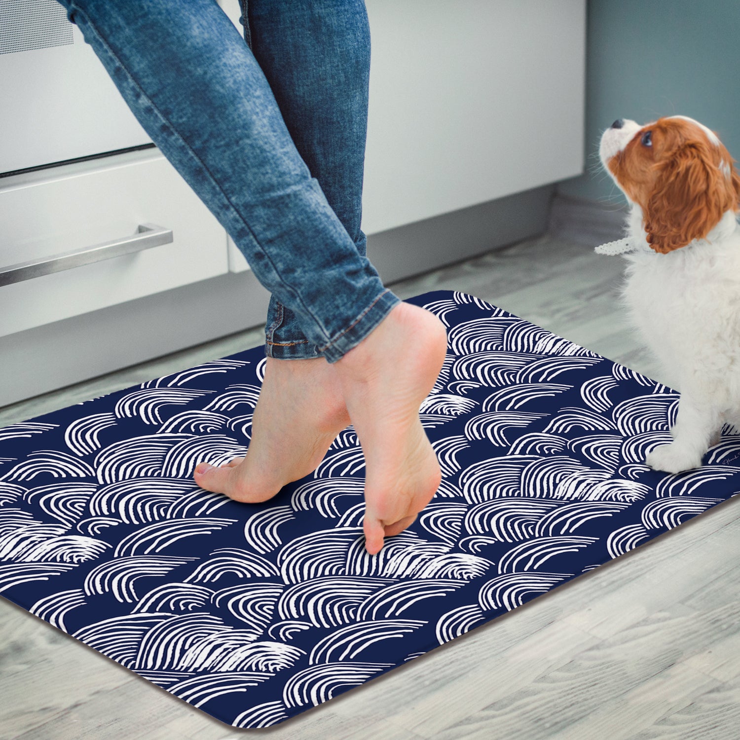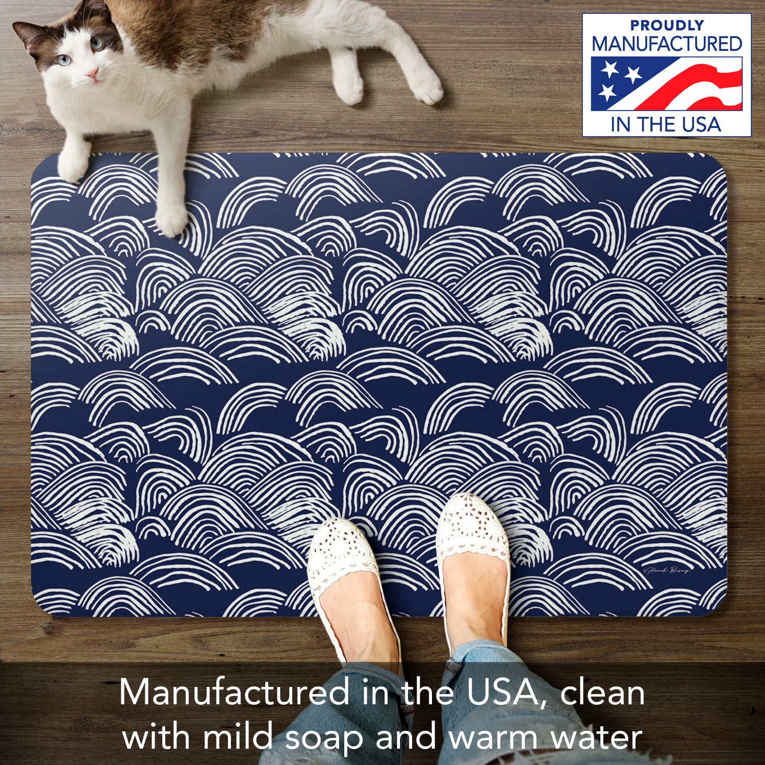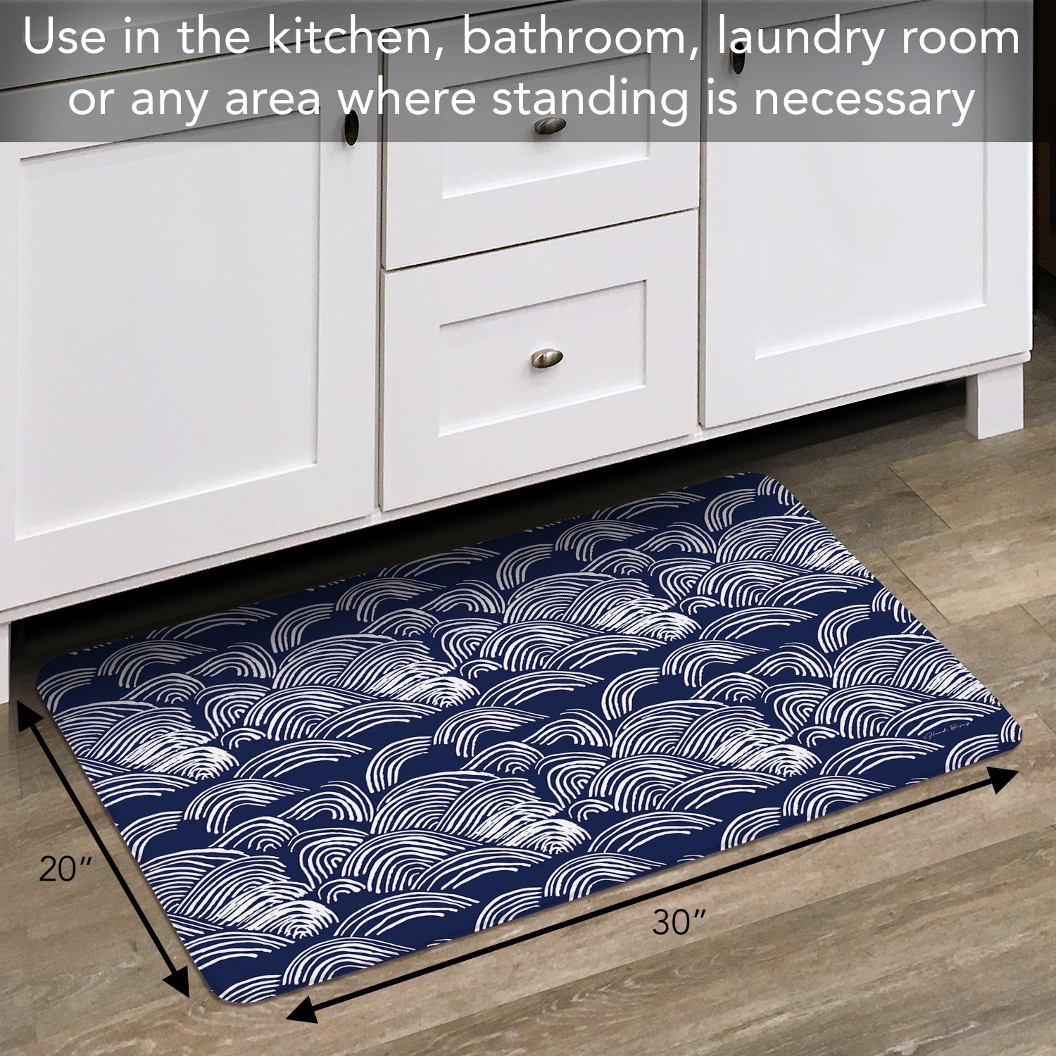 Indigo Waves 30” x 20” Decorative Vinyl Comfort Floor Mat Manufactured in the USA