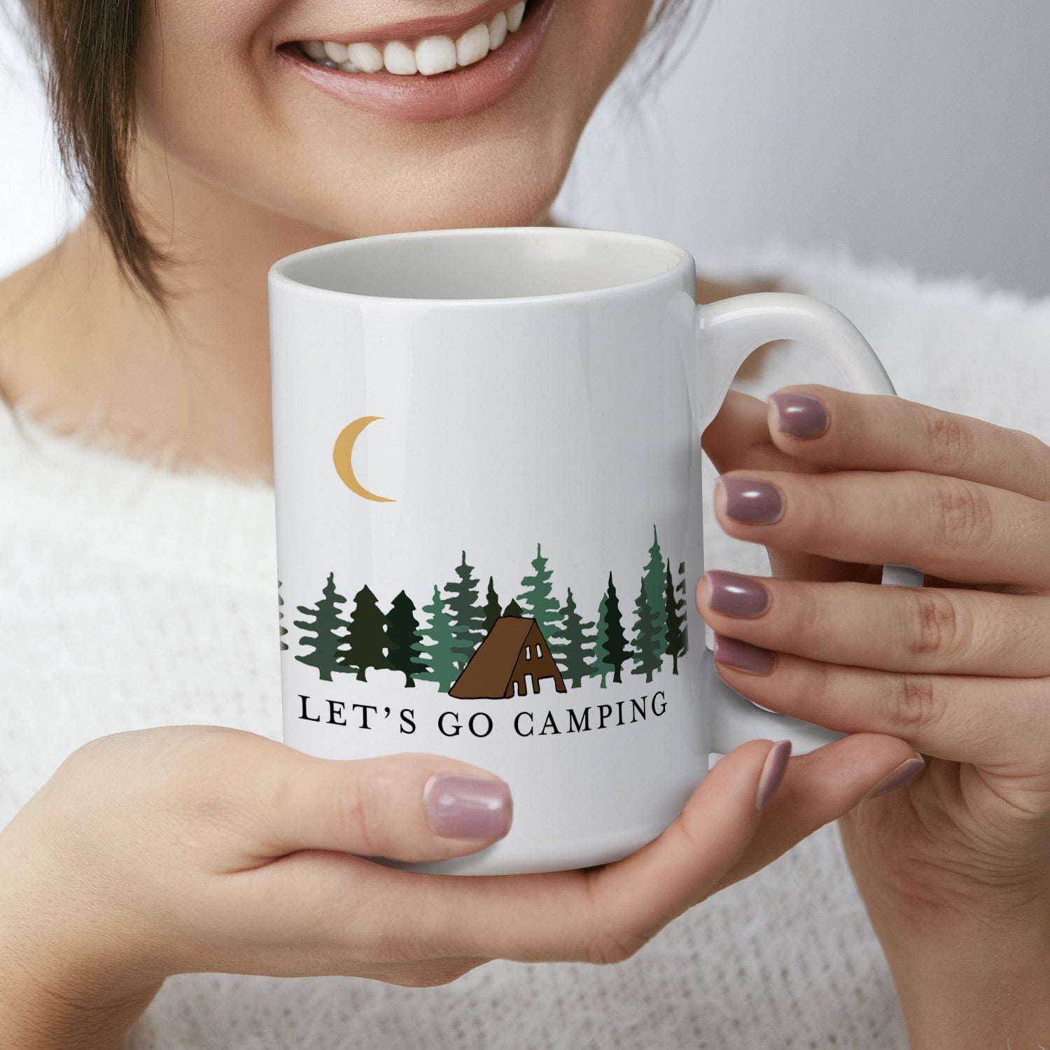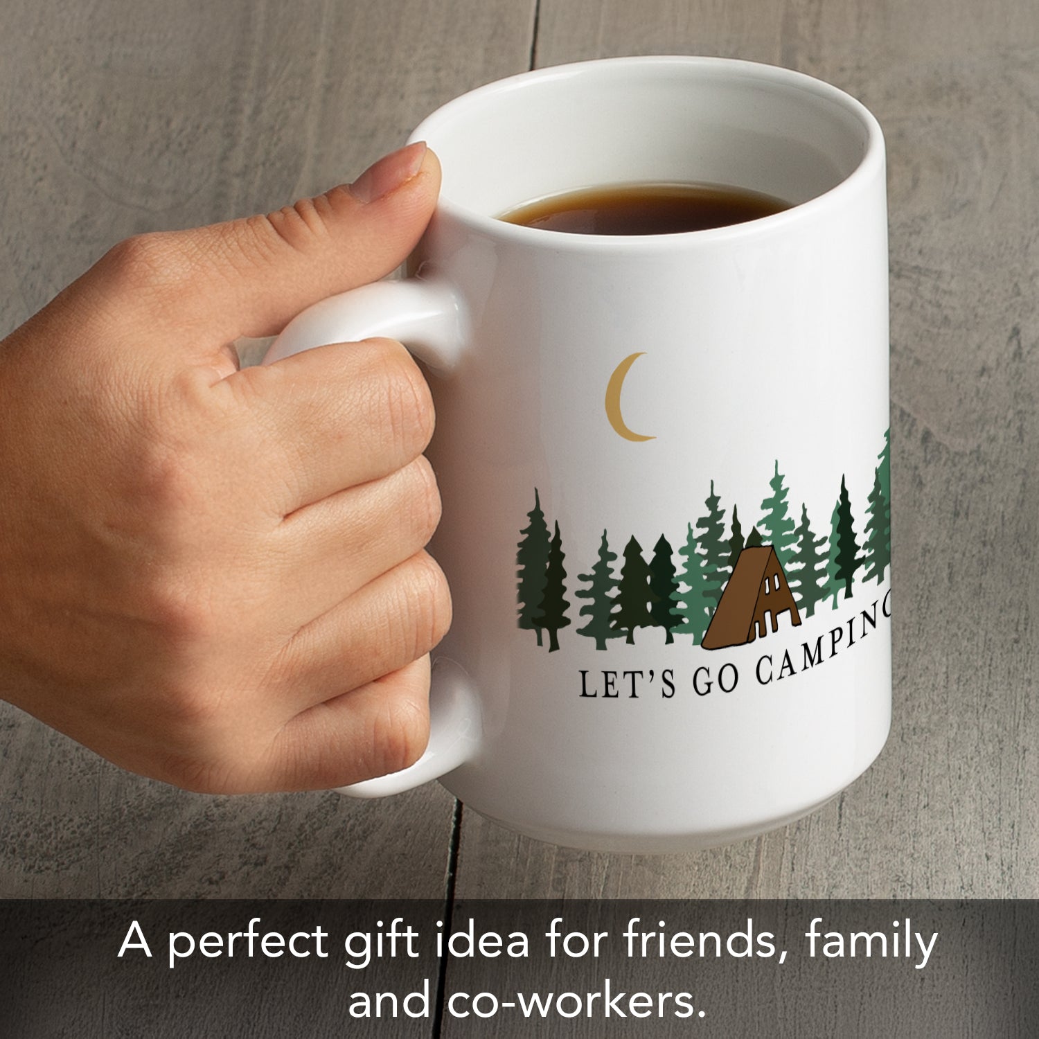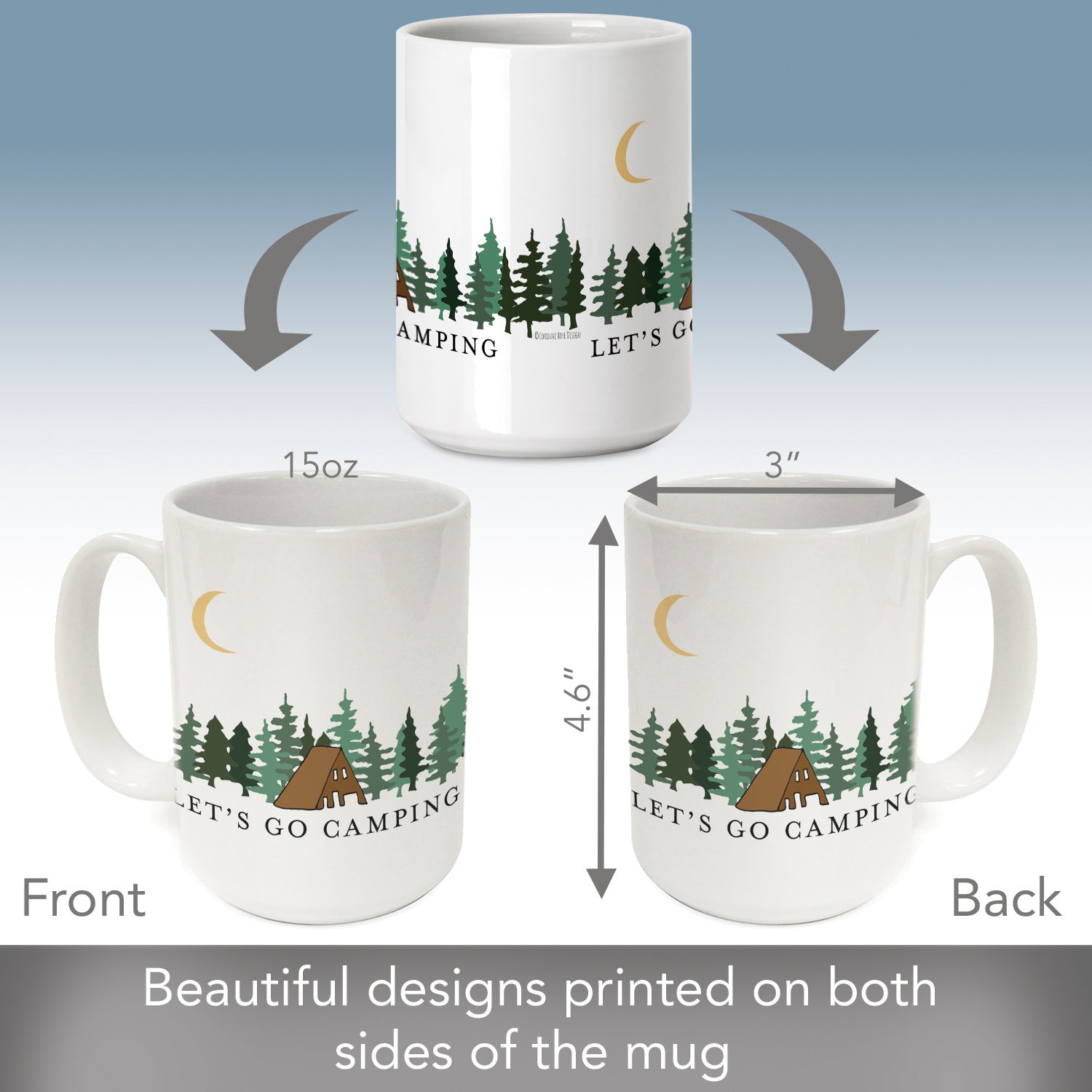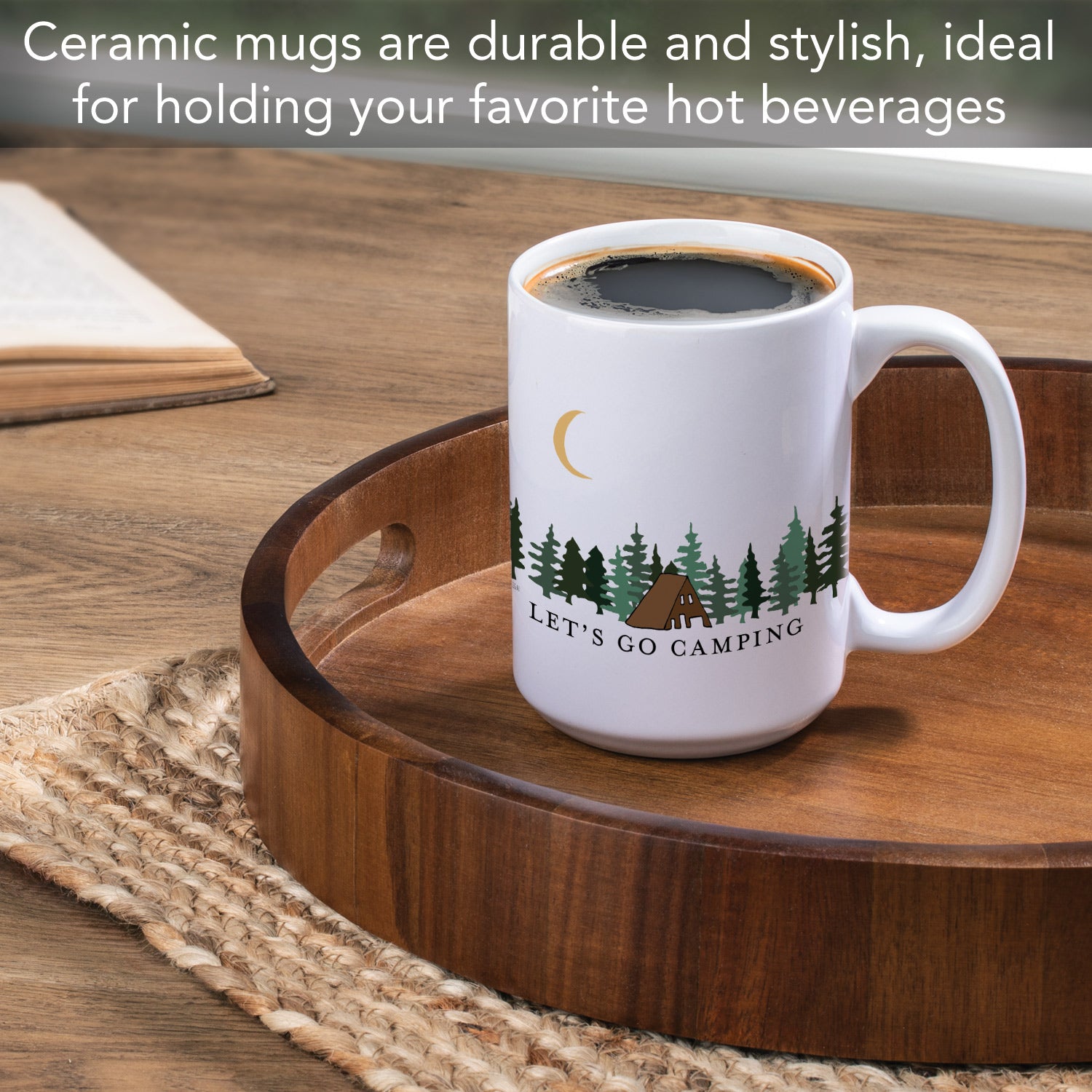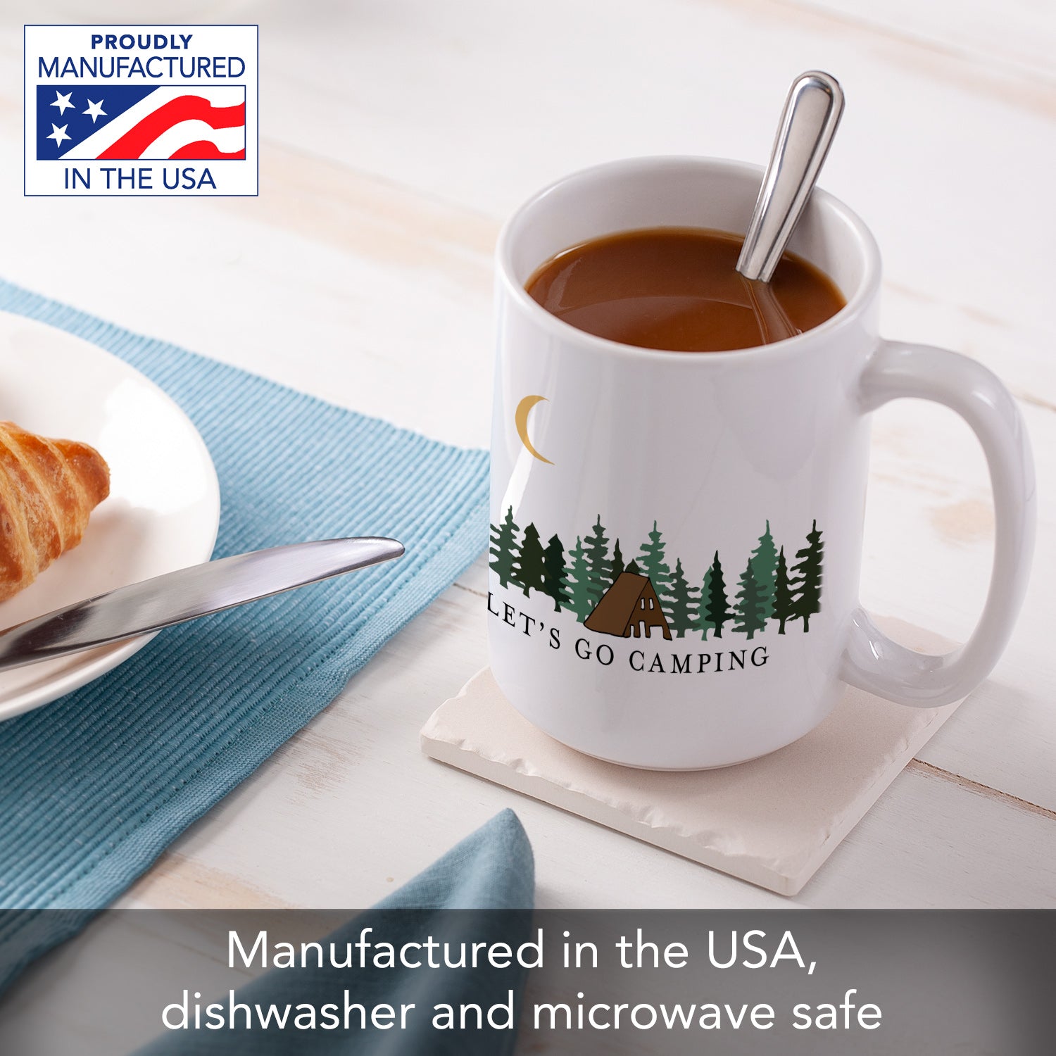 Highland Home Let's Go Camping Large Decorative Ceramic Mug 15 oz. Manufactured in the USA