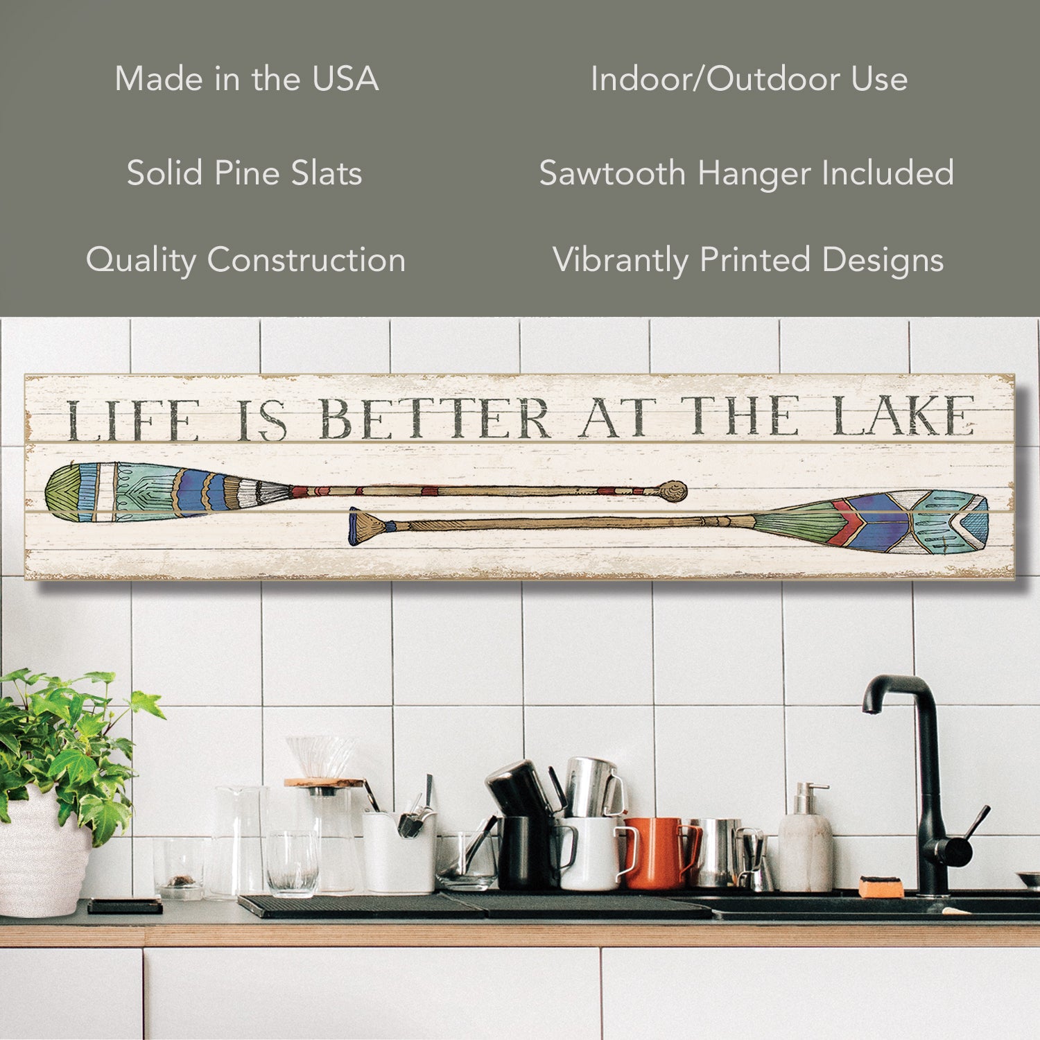 QUALITY CONSTRUCTION-Made of solid pine wood slats. Artwork is a high-quality print that is transferred to the wood surface. This process allows the vibrancy of the colors to withstand time and wear.