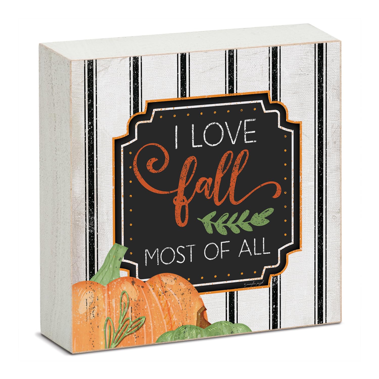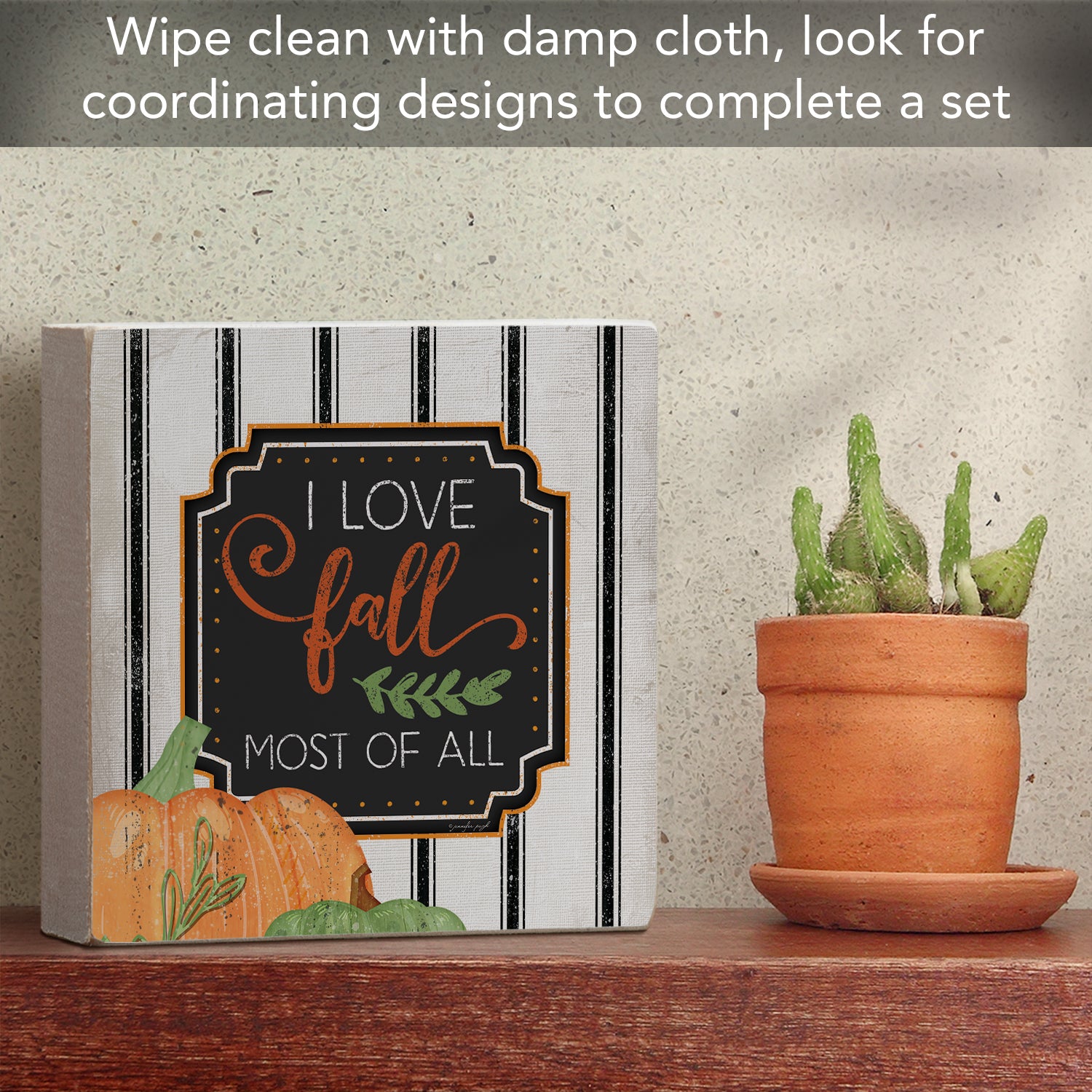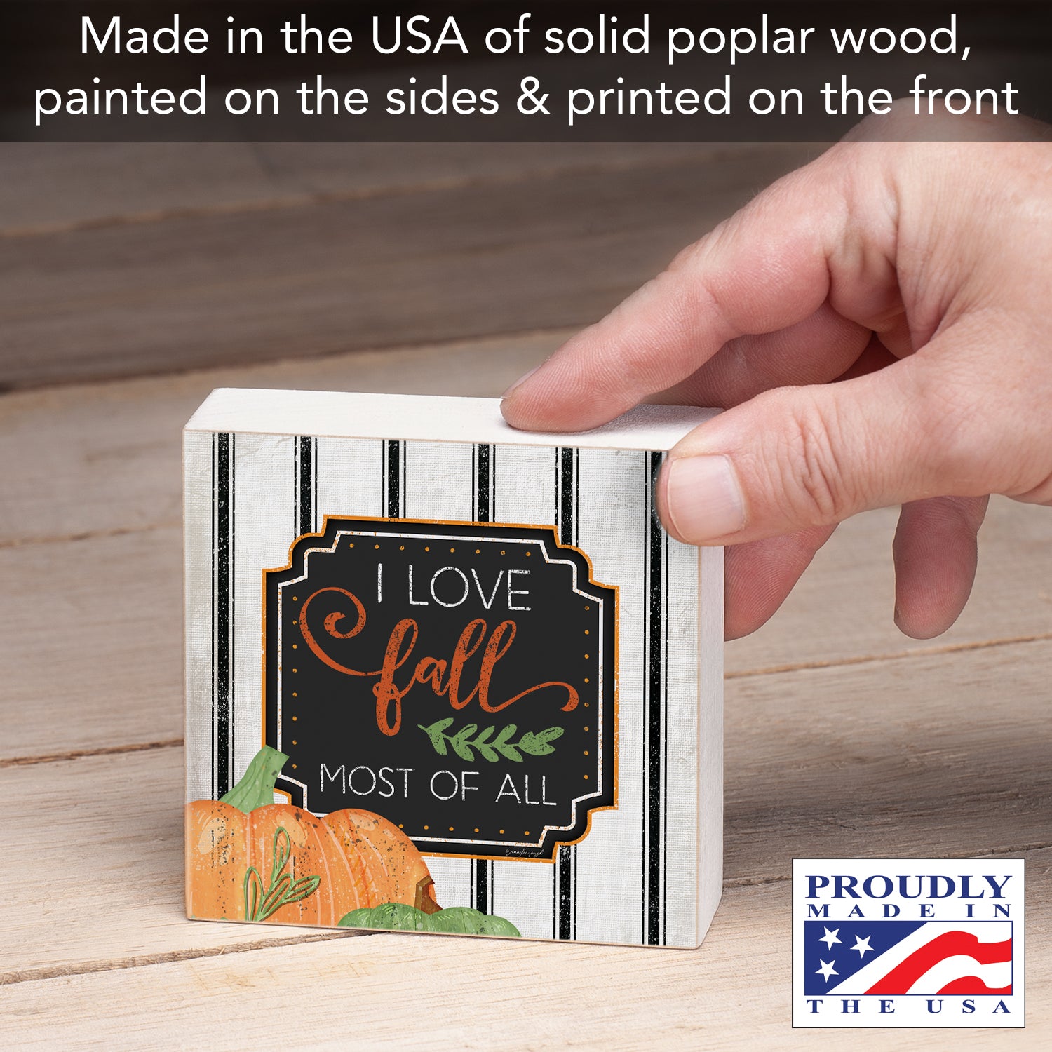 I Love Fall Decorative Wooden Home Accent Sign 3.75" Square Made in the USA