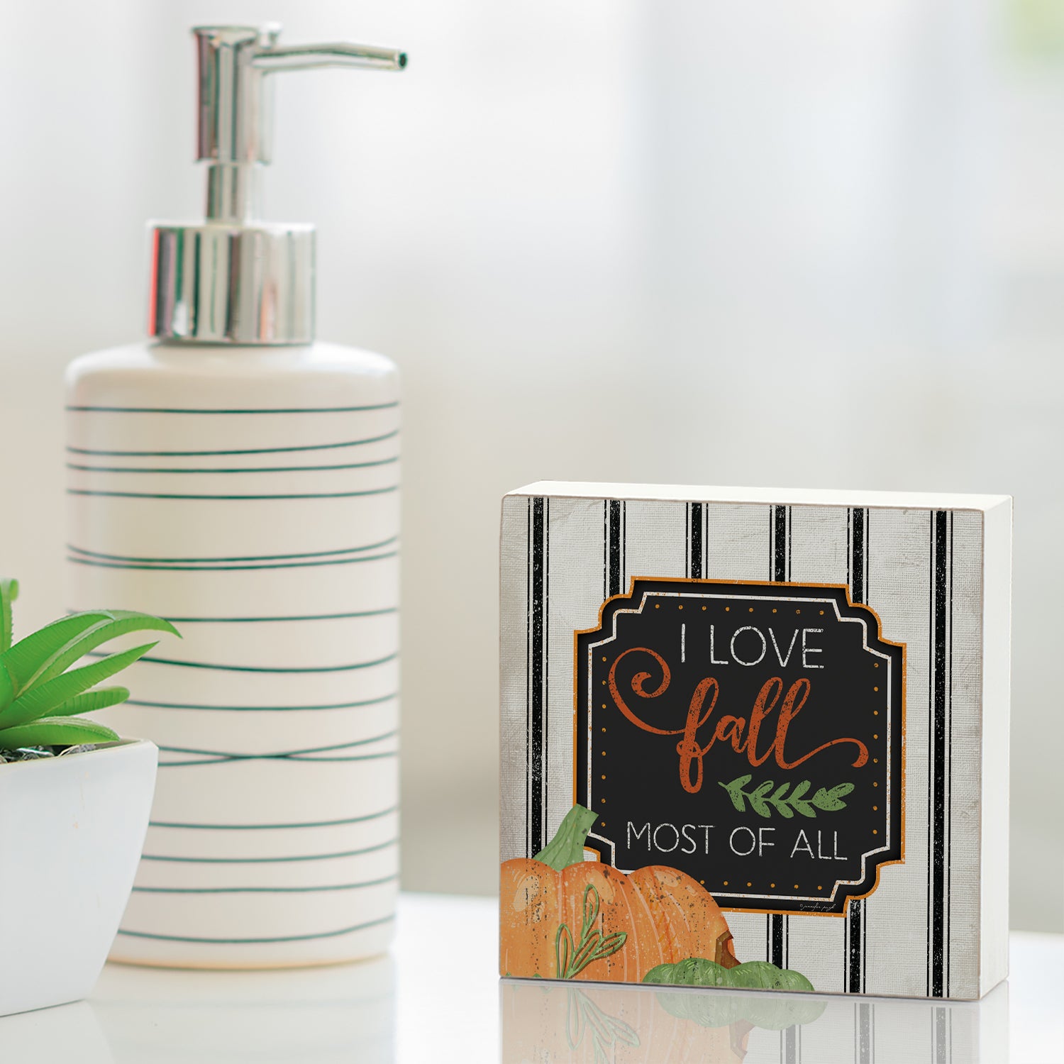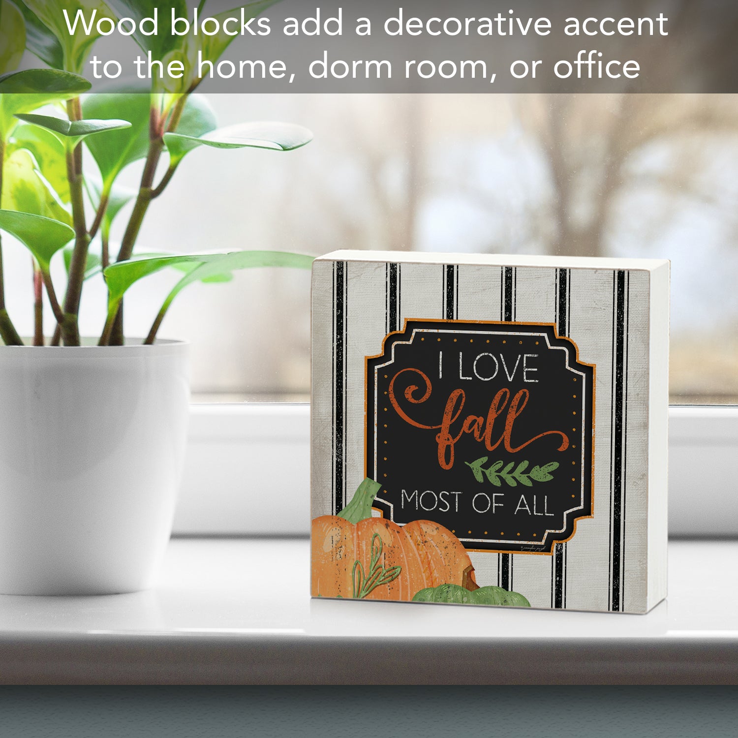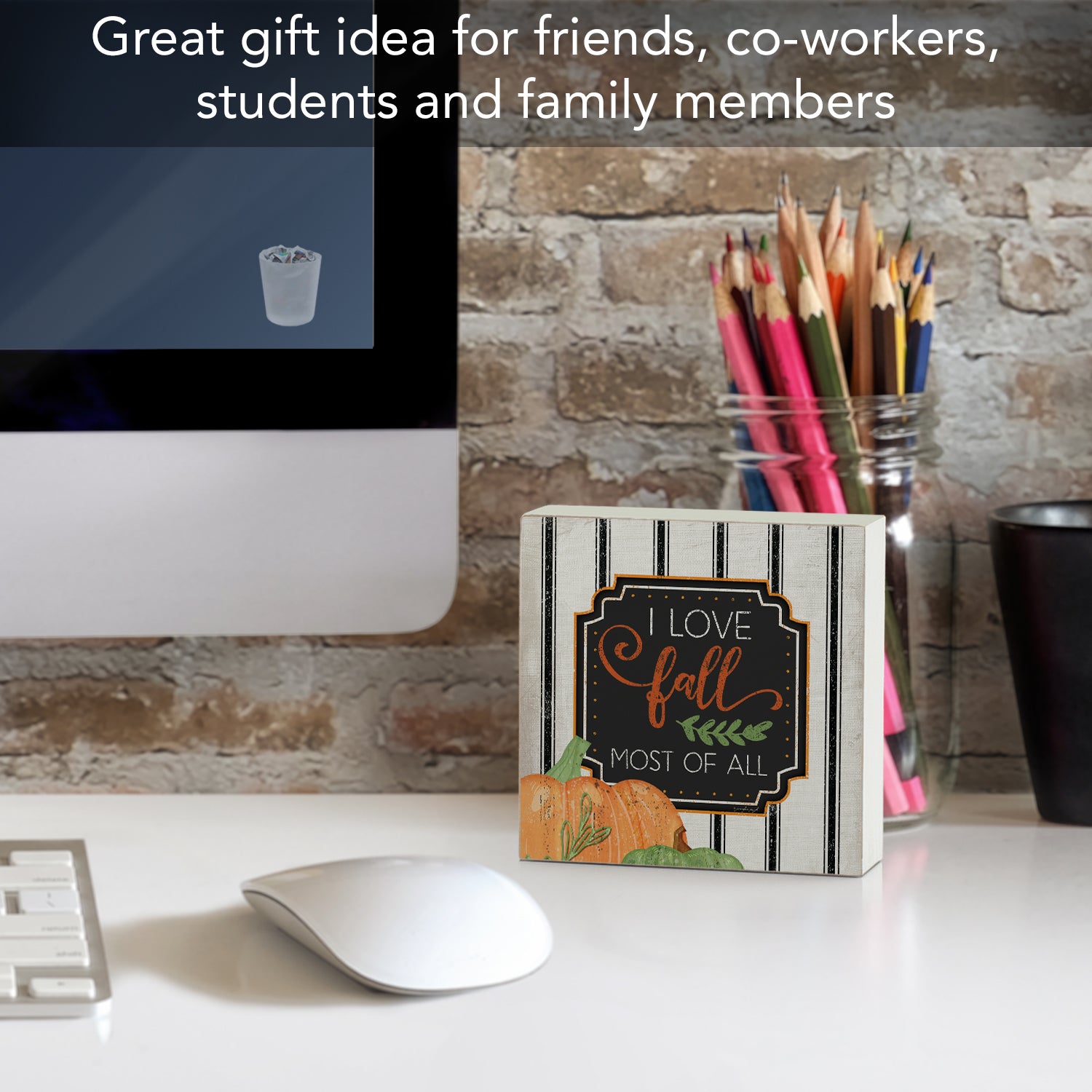 I Love Fall Decorative Wooden Home Accent Sign 3.75" Square Made in the USA