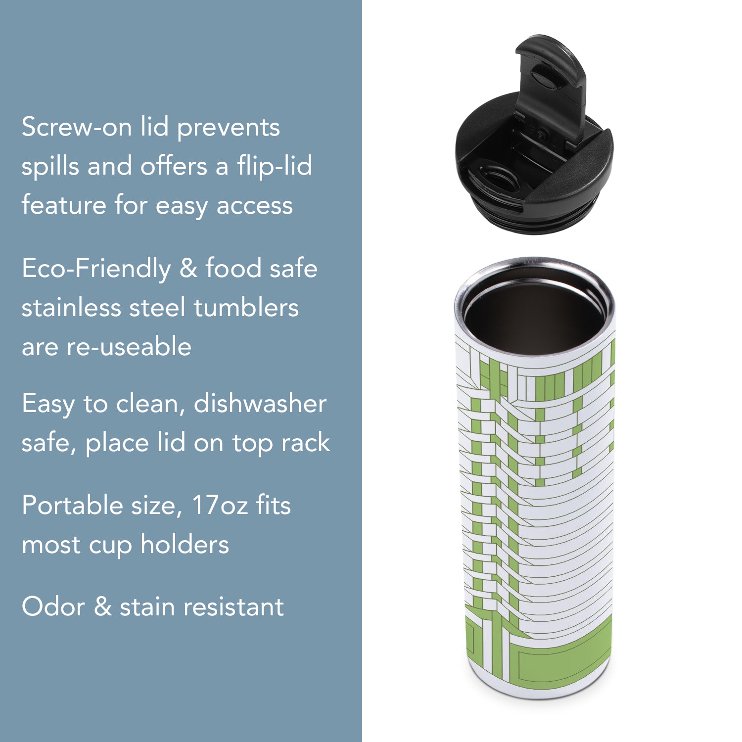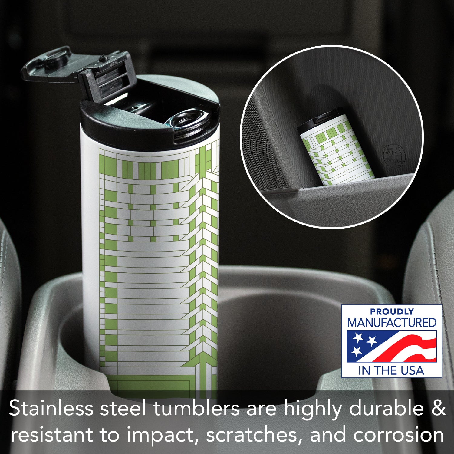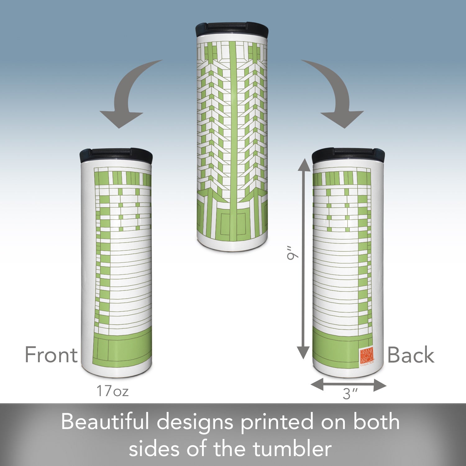 Frank Lloyd Wright's Martin House Casement Window Design on 17 Ounce Insulated Stainless Steel Tumbler Manufactured in the USA