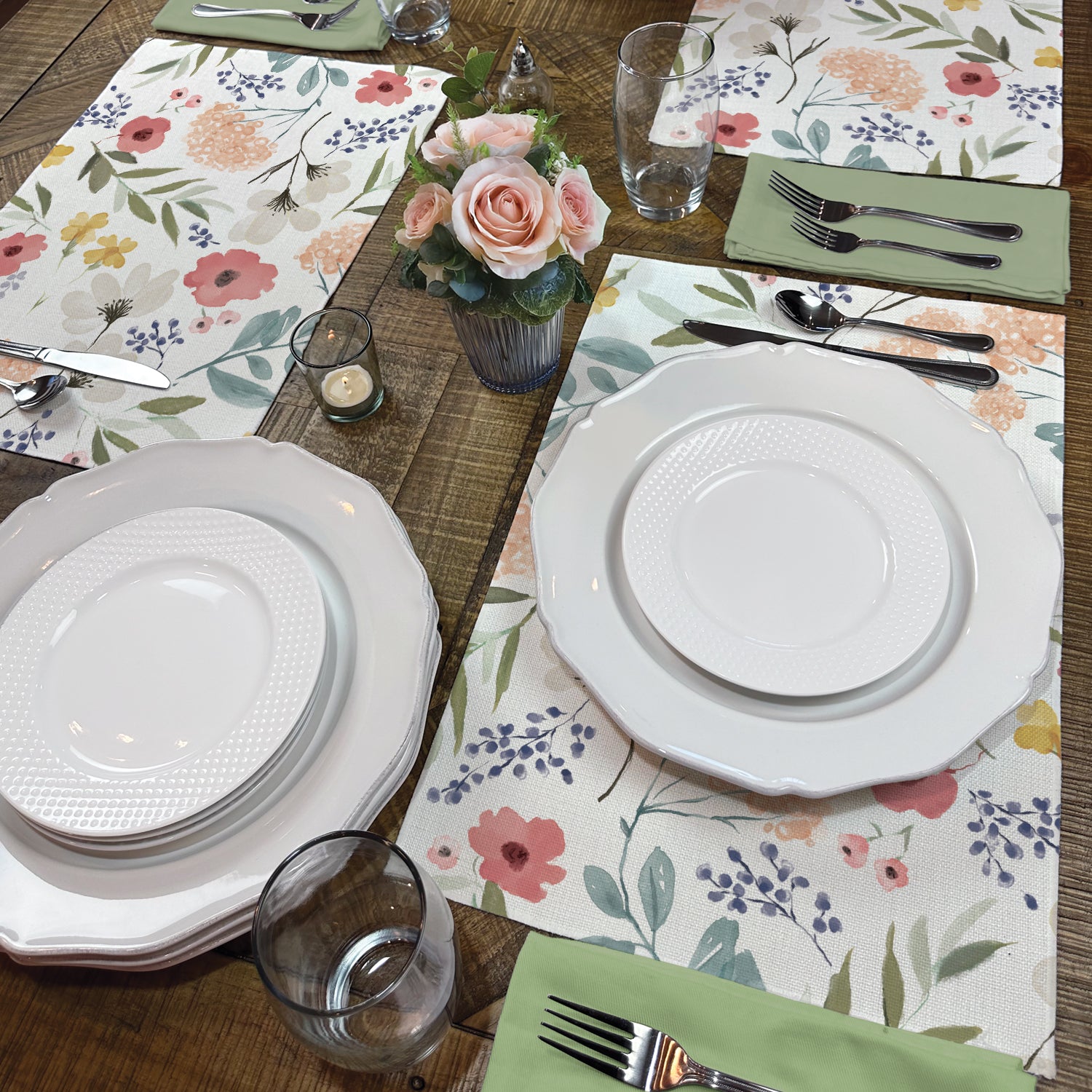 DURABLE/EASY CARE-Poly-Cotton Blend can withstand daily use. These placemats are soft, absorbent, and easy to wash. Machine wash and dryer safe.