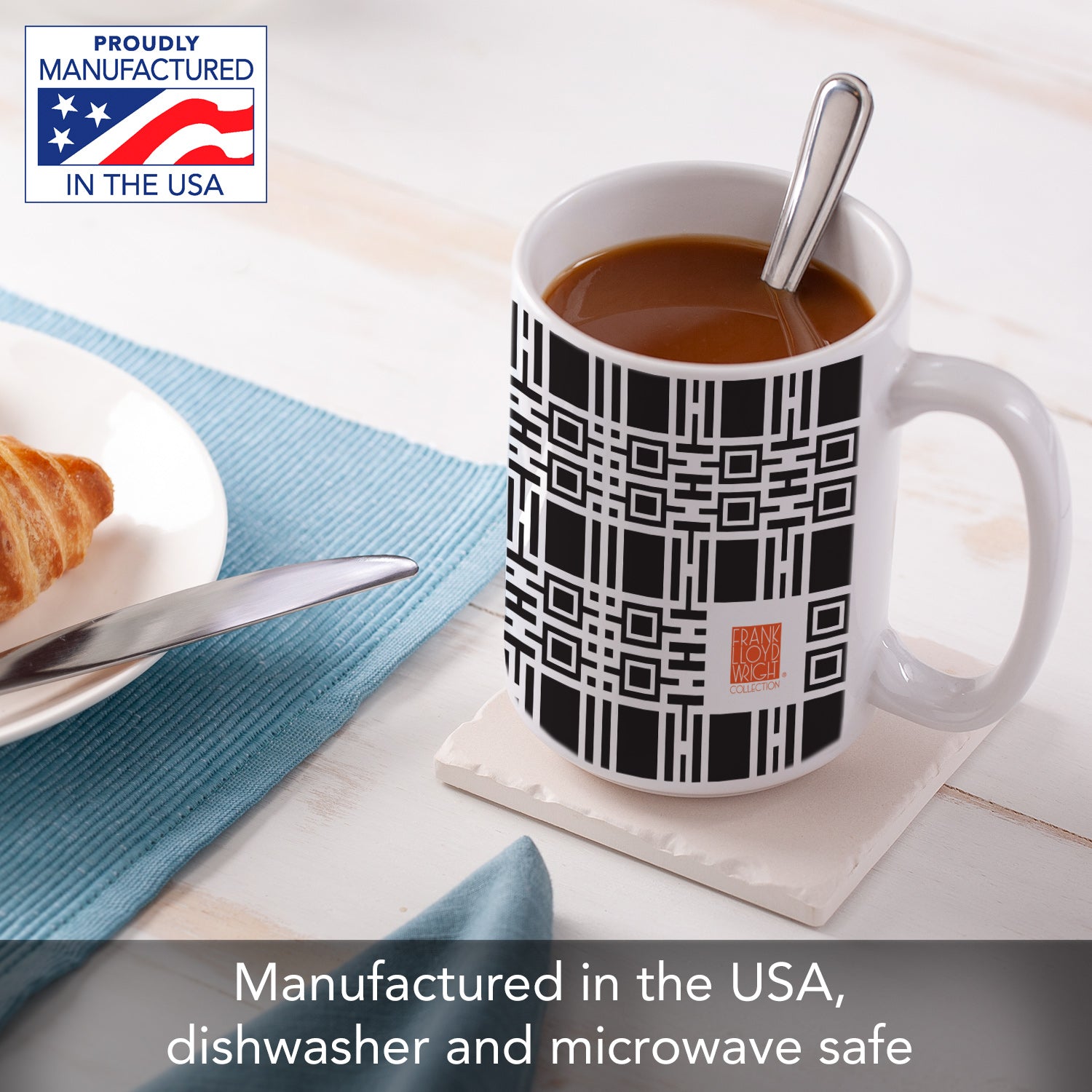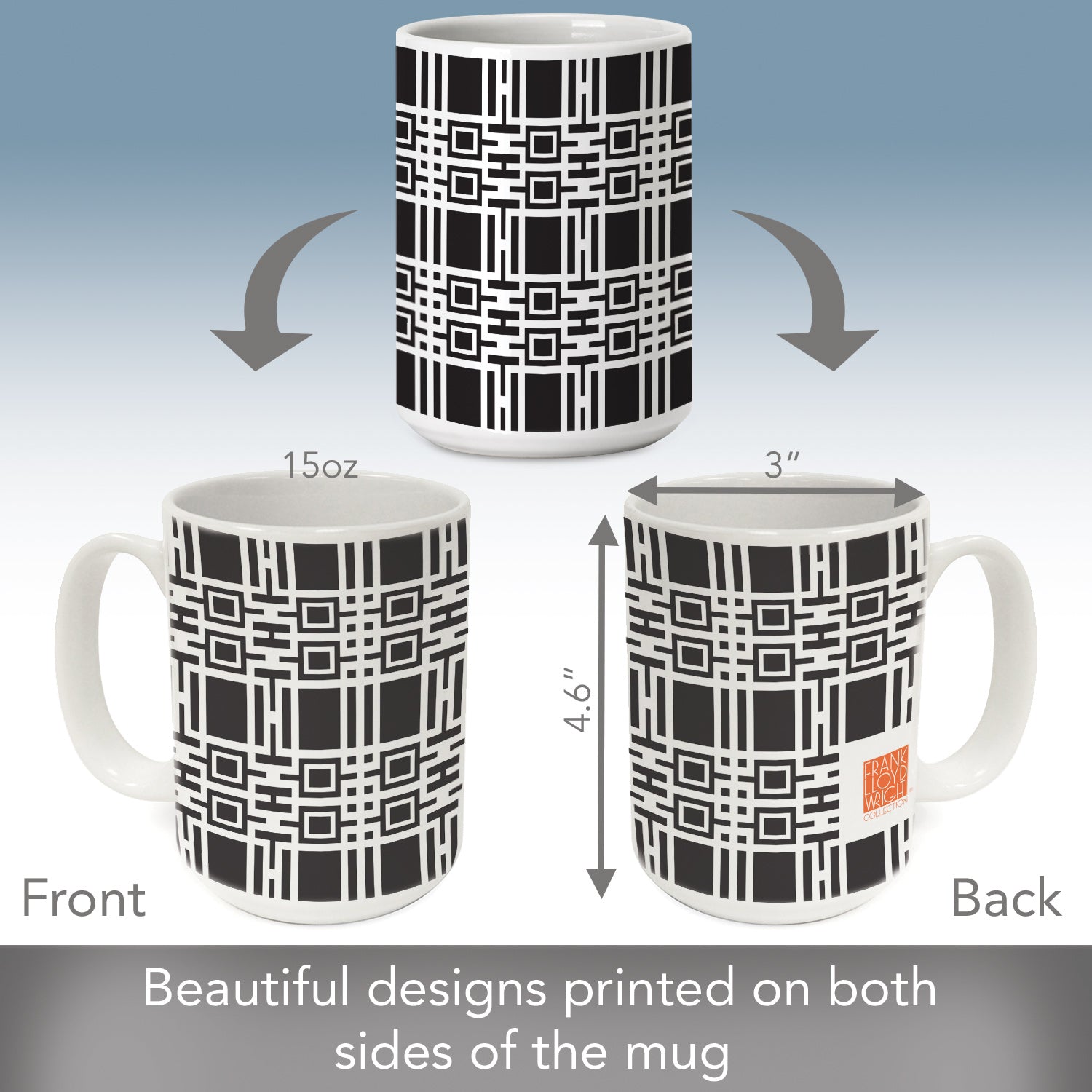 Frank Lloyd Wright's Midway Gardens Wall Pattern on 15 oz. Ceramic Mug Manufactured in the USA
