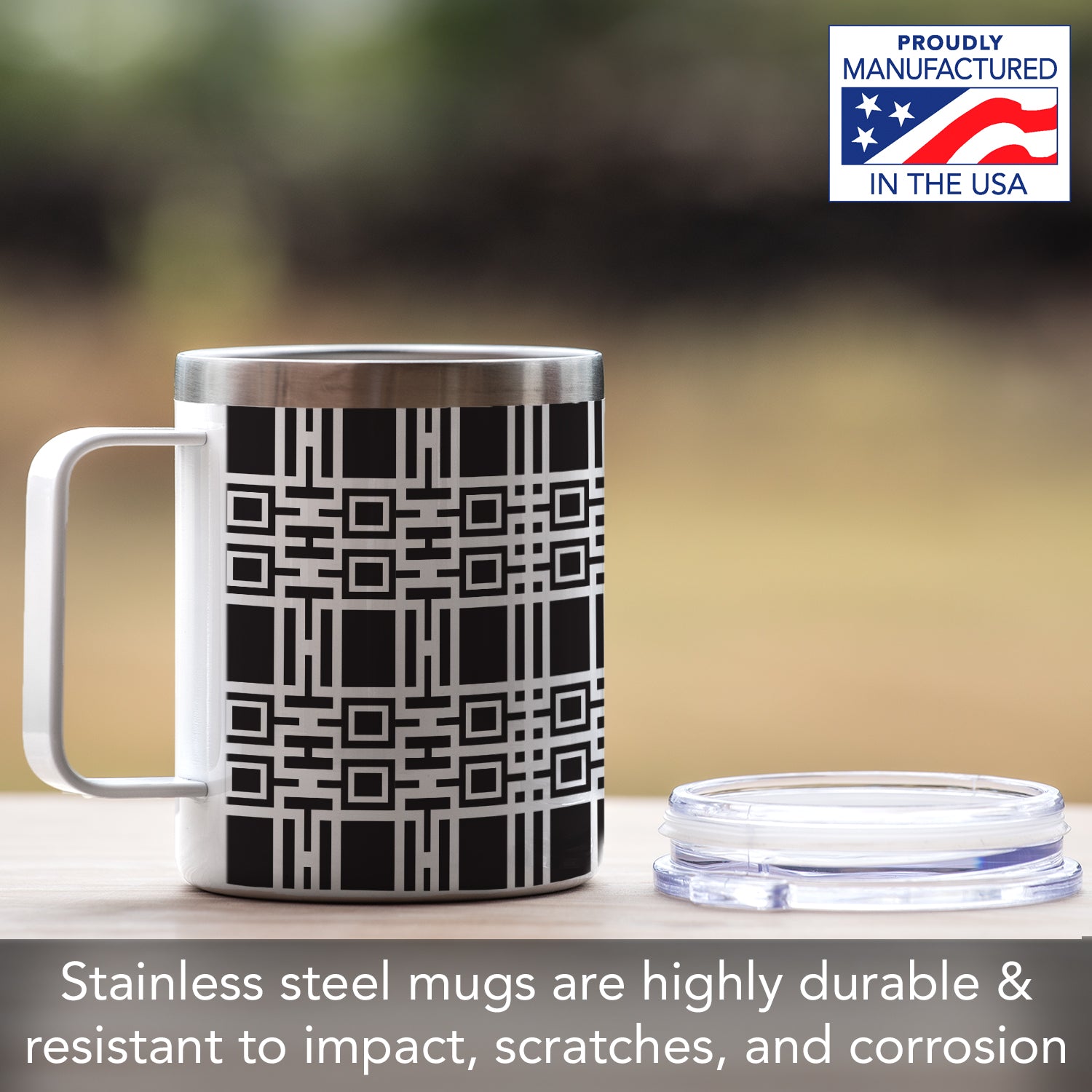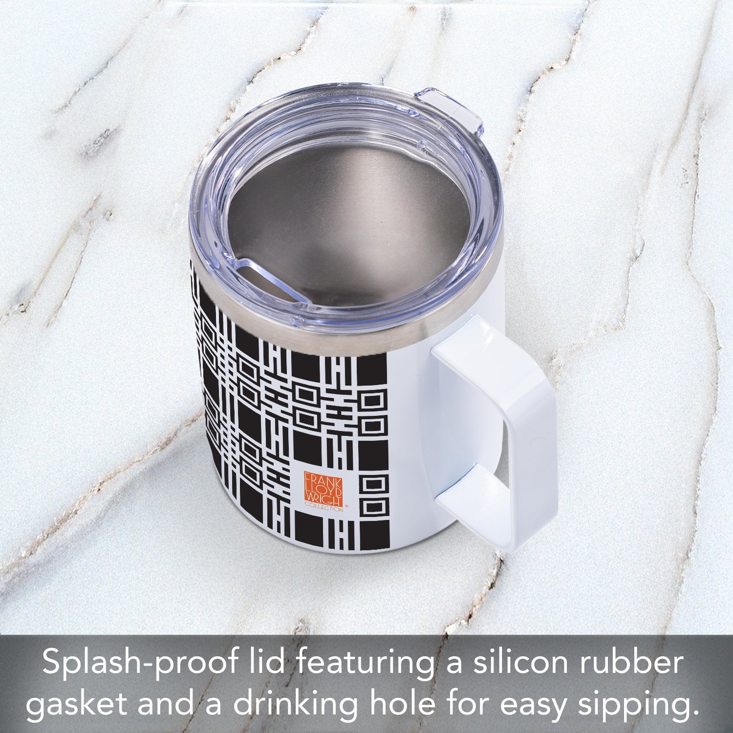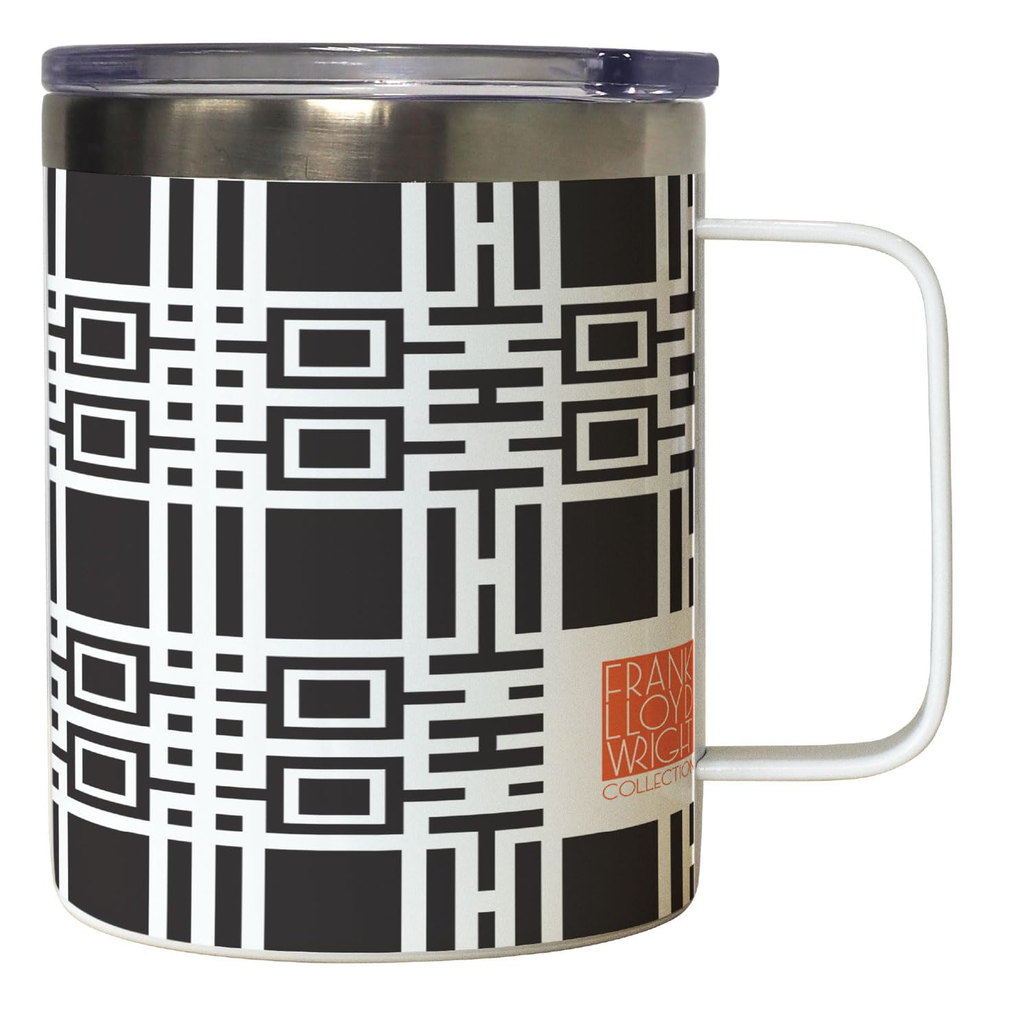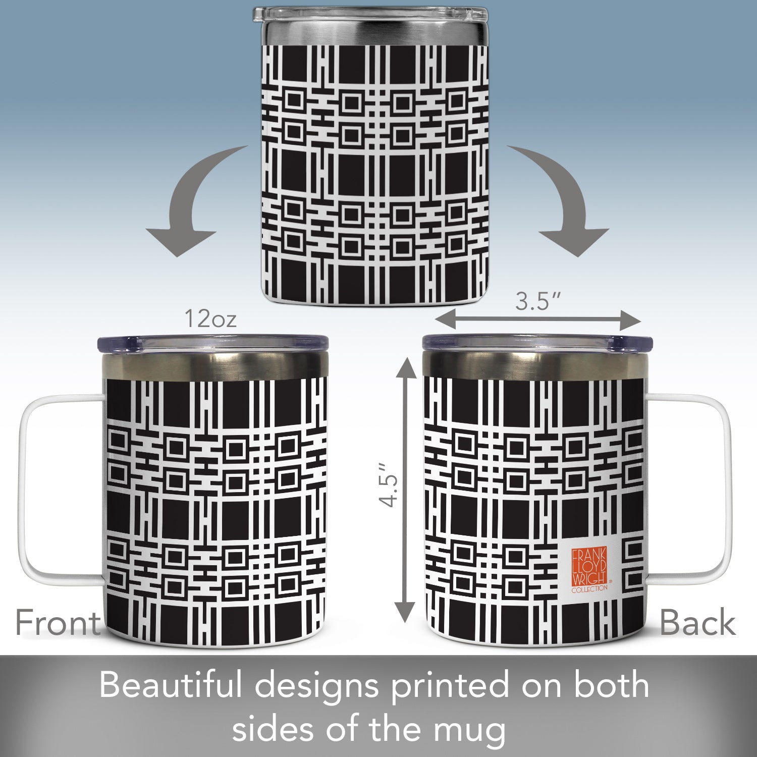 Frank Lloyd Wright's Midway Gardens Wall Pattern on Stainless Steel Mug with Lid 12 oz. Manufactured in the USA