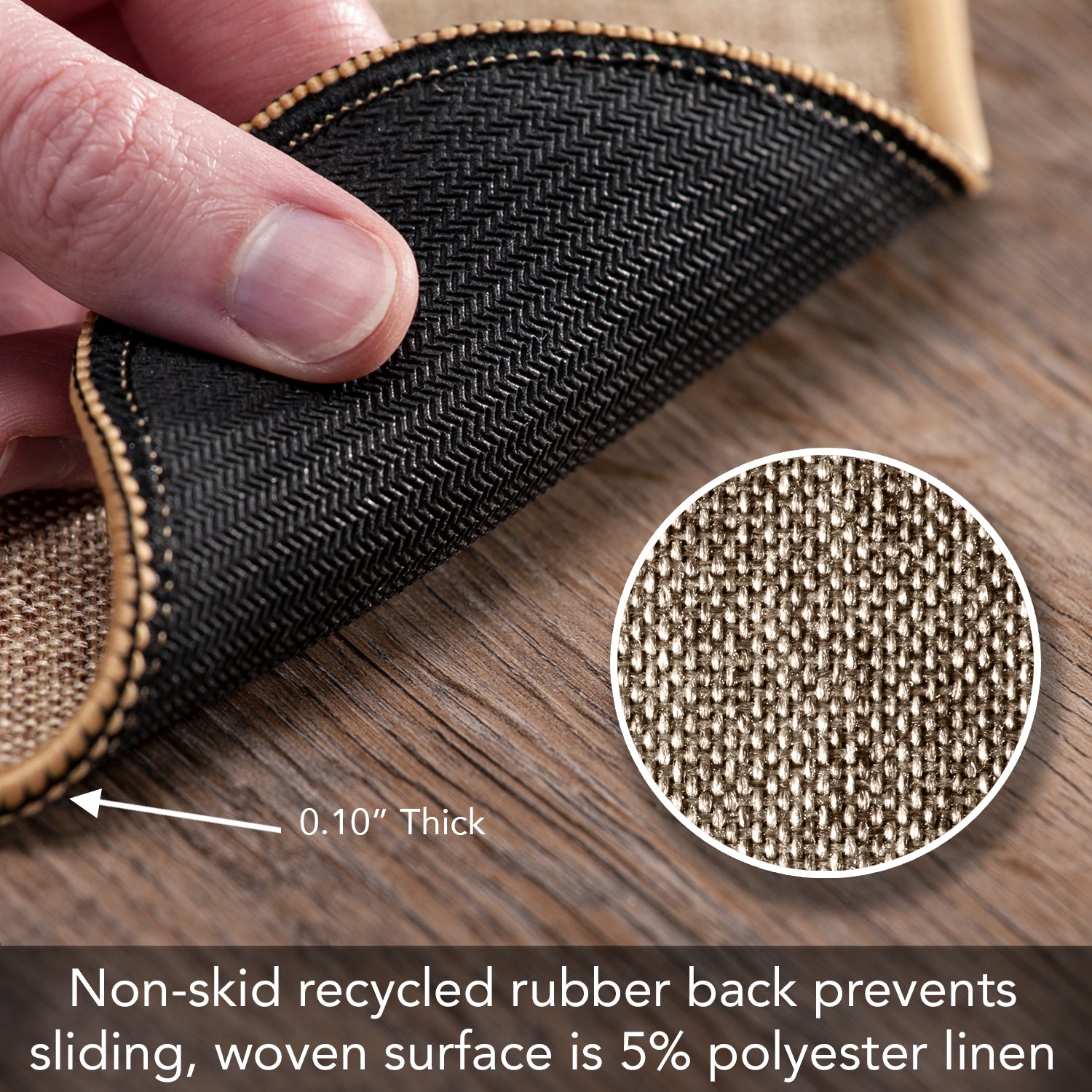 DURABLE & EASY TO CLEAN- Durable Woven Polyester surface with stitched edging has a look of natural linen. Non-skid rubber backing keeps the Floor Mat in place. Floor Mat is easy to clean with mild soap and water or by spraying off with garden hose then lying flat to dry.