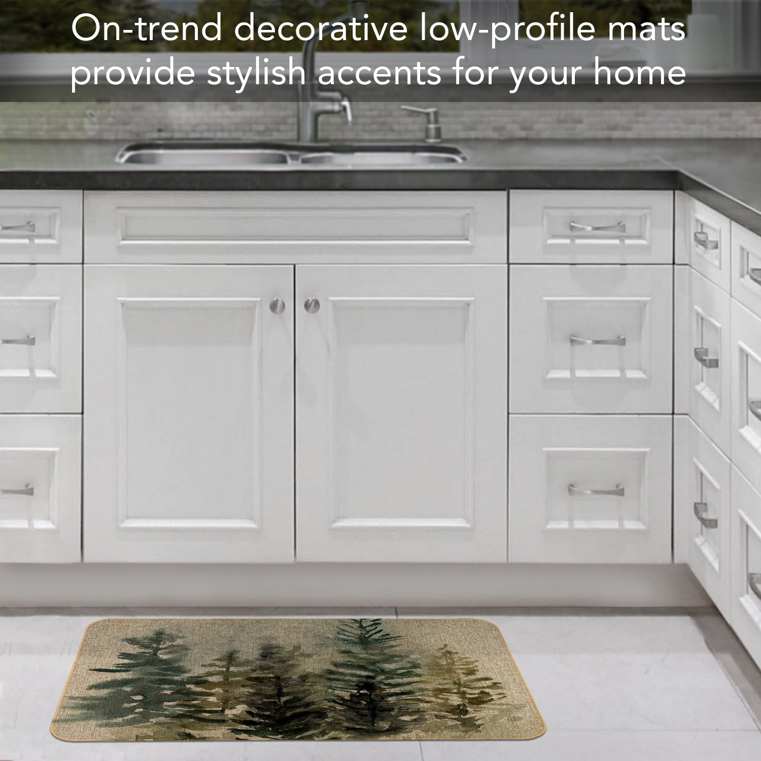 LOW PROFILE/ALL FLOOR TYPES- Textured Rubber backing allows the Floor Mat to be placed on any floor type whether it be tile, wood, or carpet. Low profile prevents tripping hazard. Rubber backing keeps the mat in place.