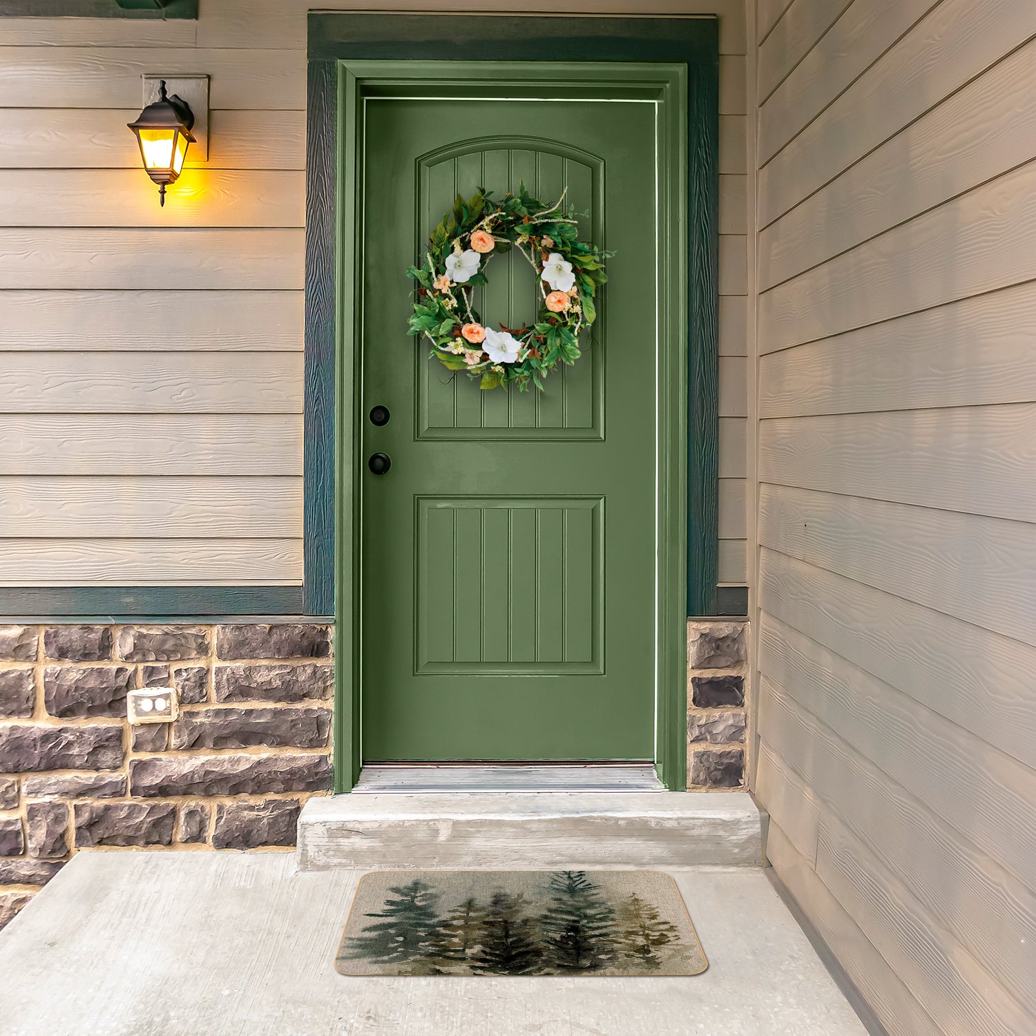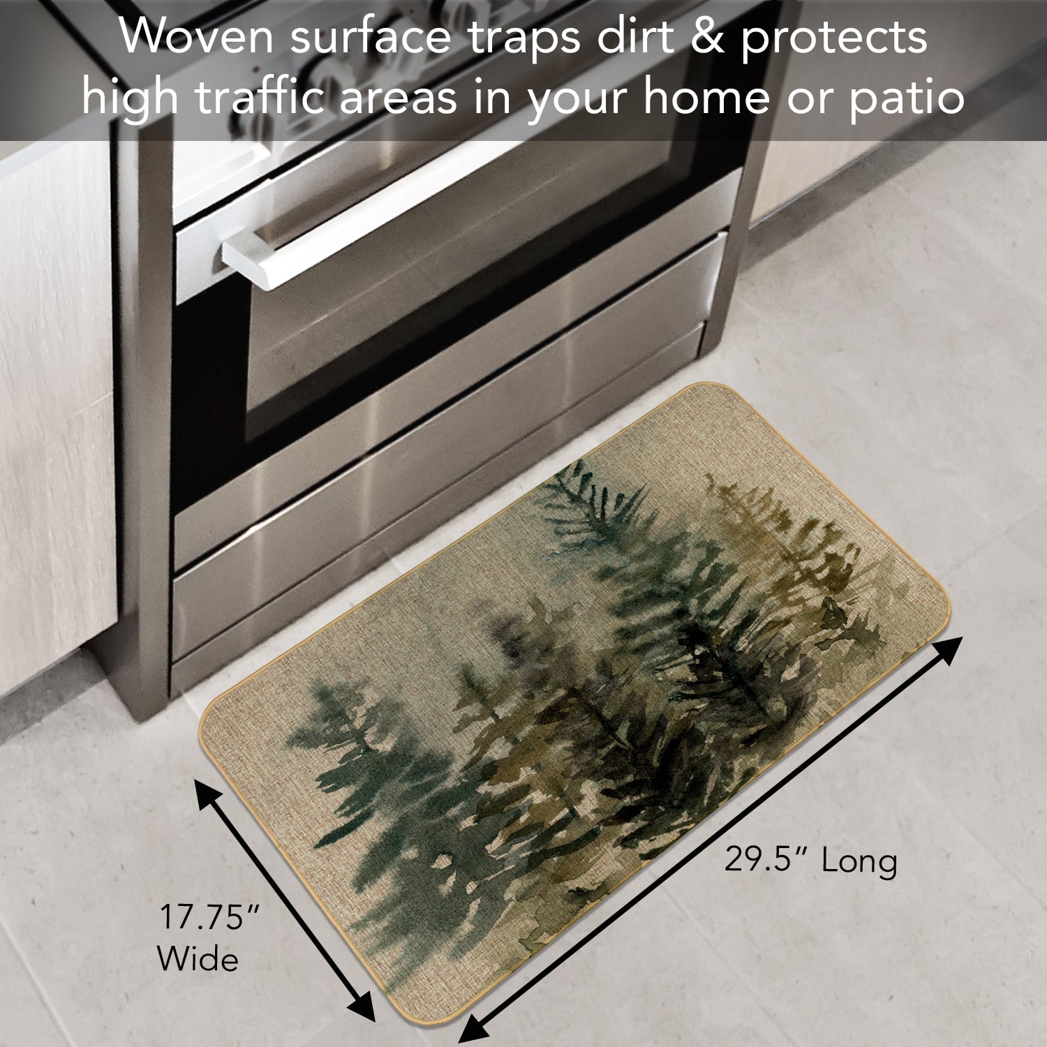 Misty Tree Line Indoor/Outdoor Natural Linen Look Floor Mat 29.5” x 17.75”