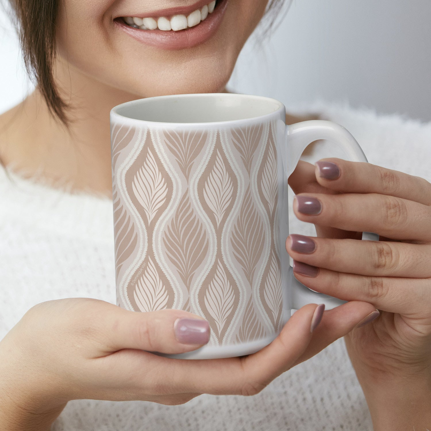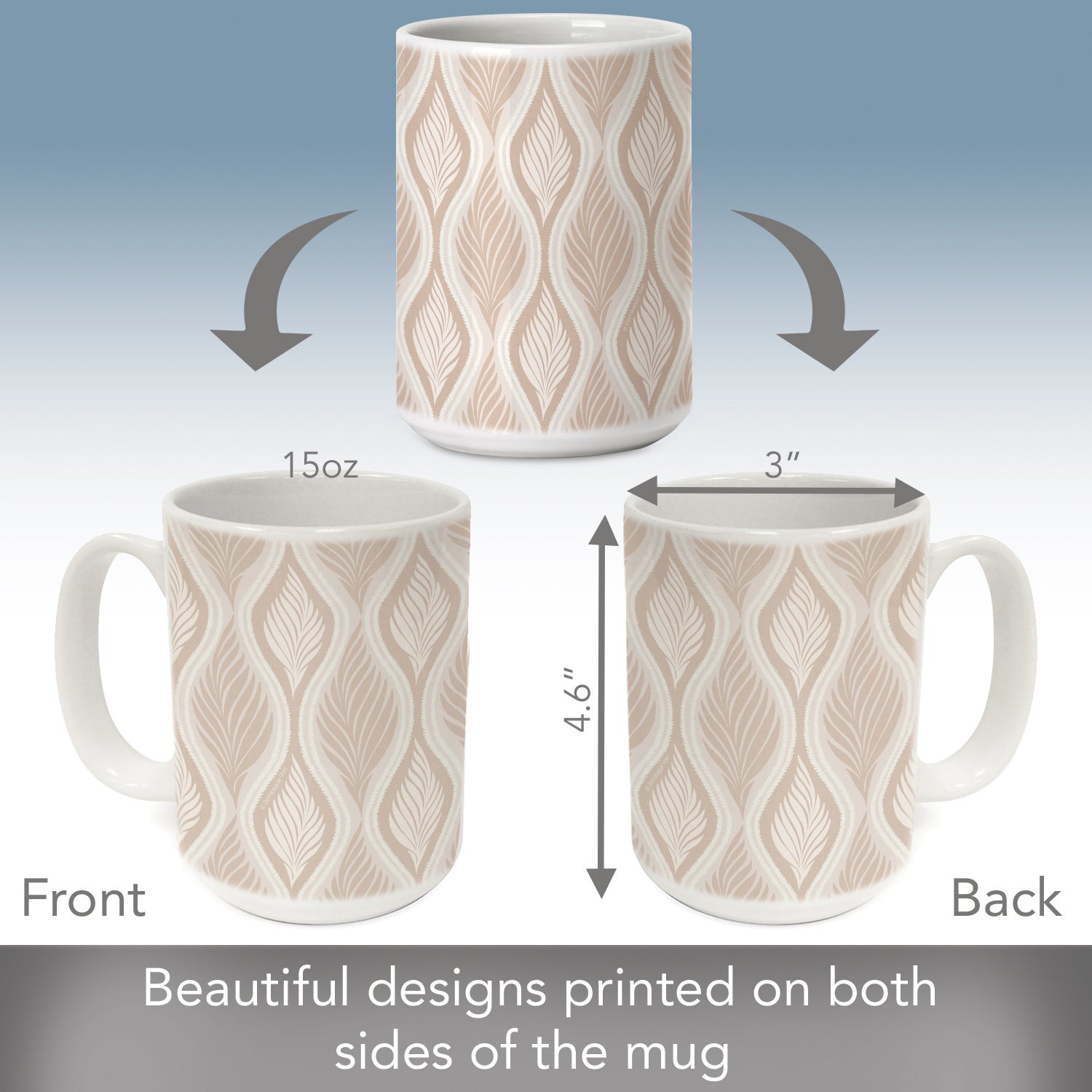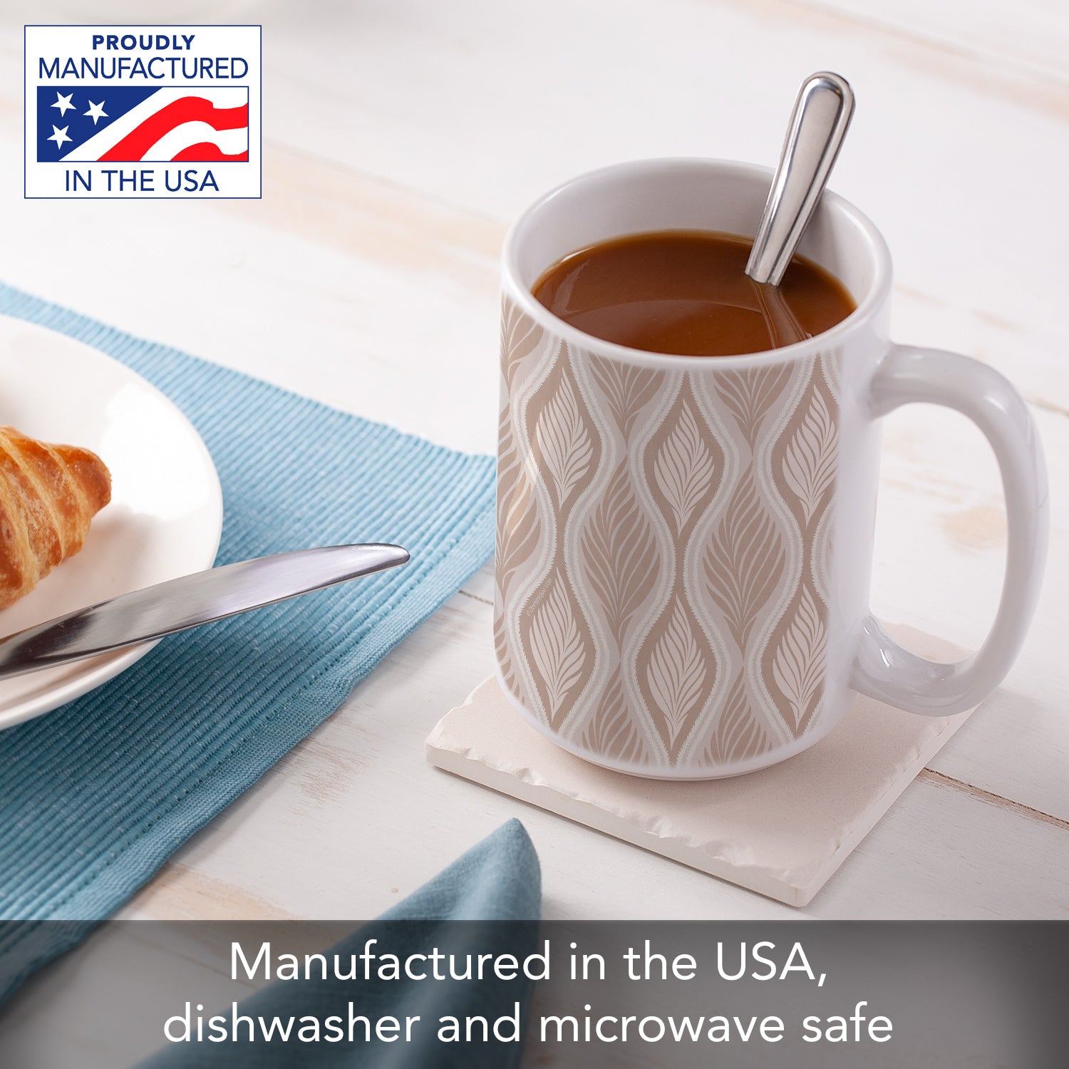 Highland Home Mocha Leaves 15 oz. Ceramic Mug Manufactured in the USA