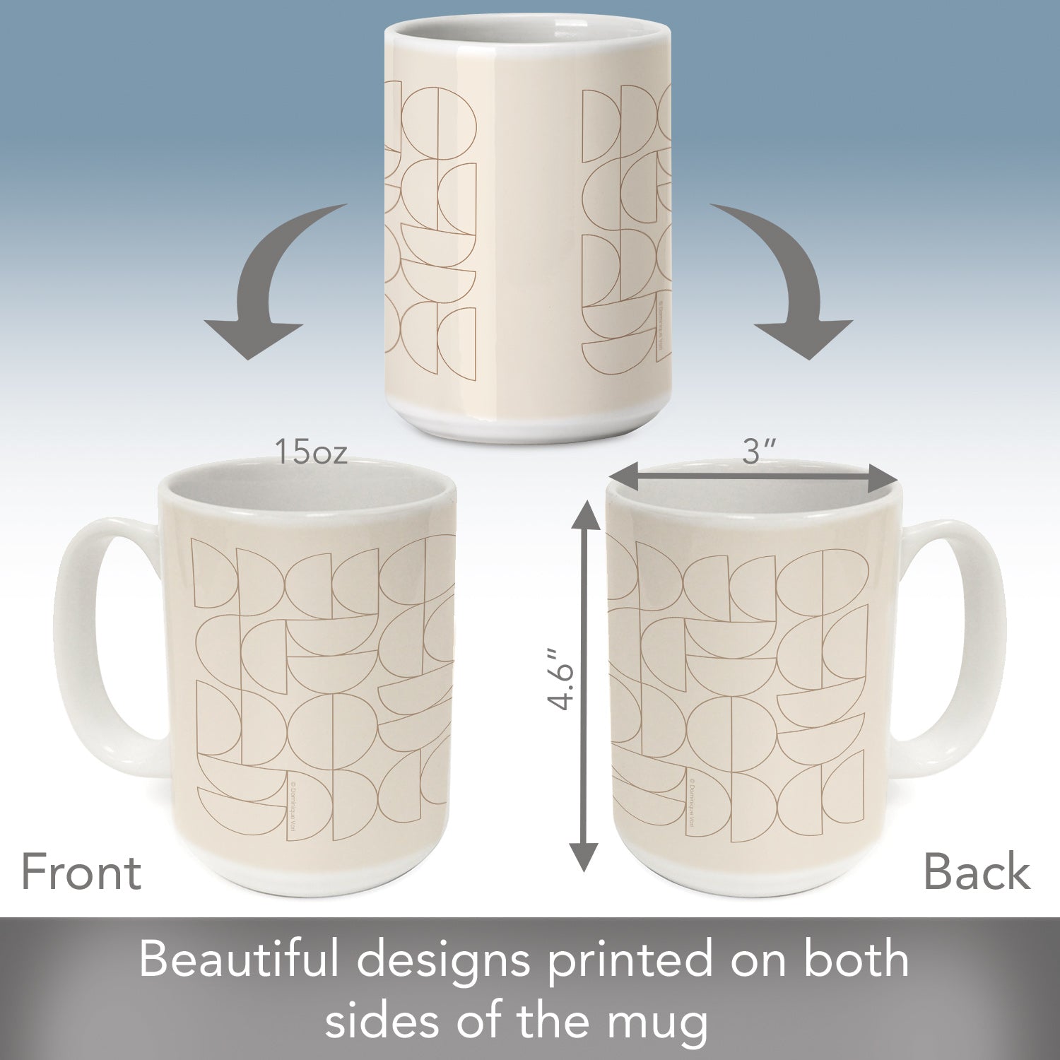 MEASUREMENTS-Mug will hold up to 15 fluid ounces. Dimensions 5” x 4.75” x 3.5”. Look for our coordinating coasters for your home or office.