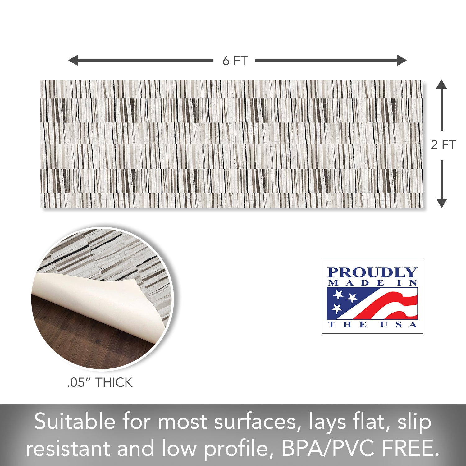 MADE IN THE USA-Deco-Floormat is manufactured in our Florida facility. Each Floor Mat purchase supports hard-working American families and local communities. Recyclable.