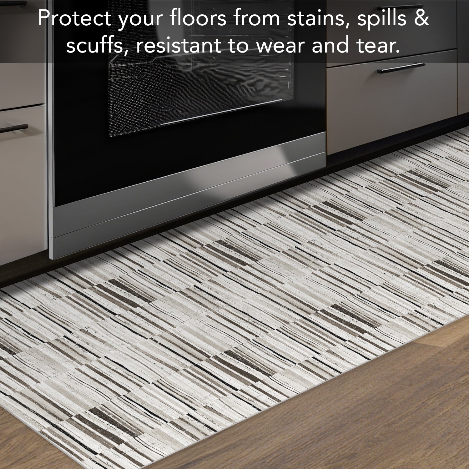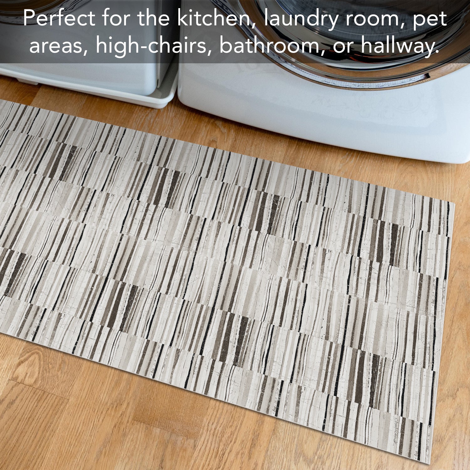 Highland Home Neutral Stripes Deco-Floormat, Decorative Mat, Kitchen Rug, Splat Mat, Chair Mat Made in the USA
