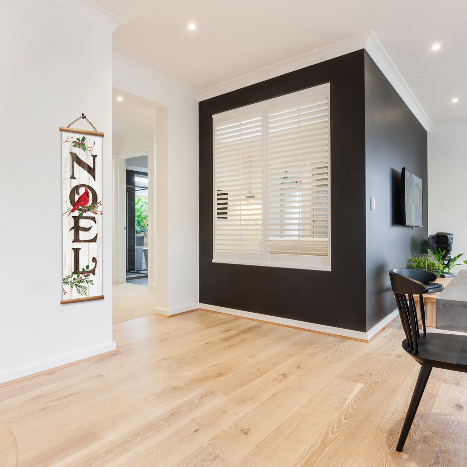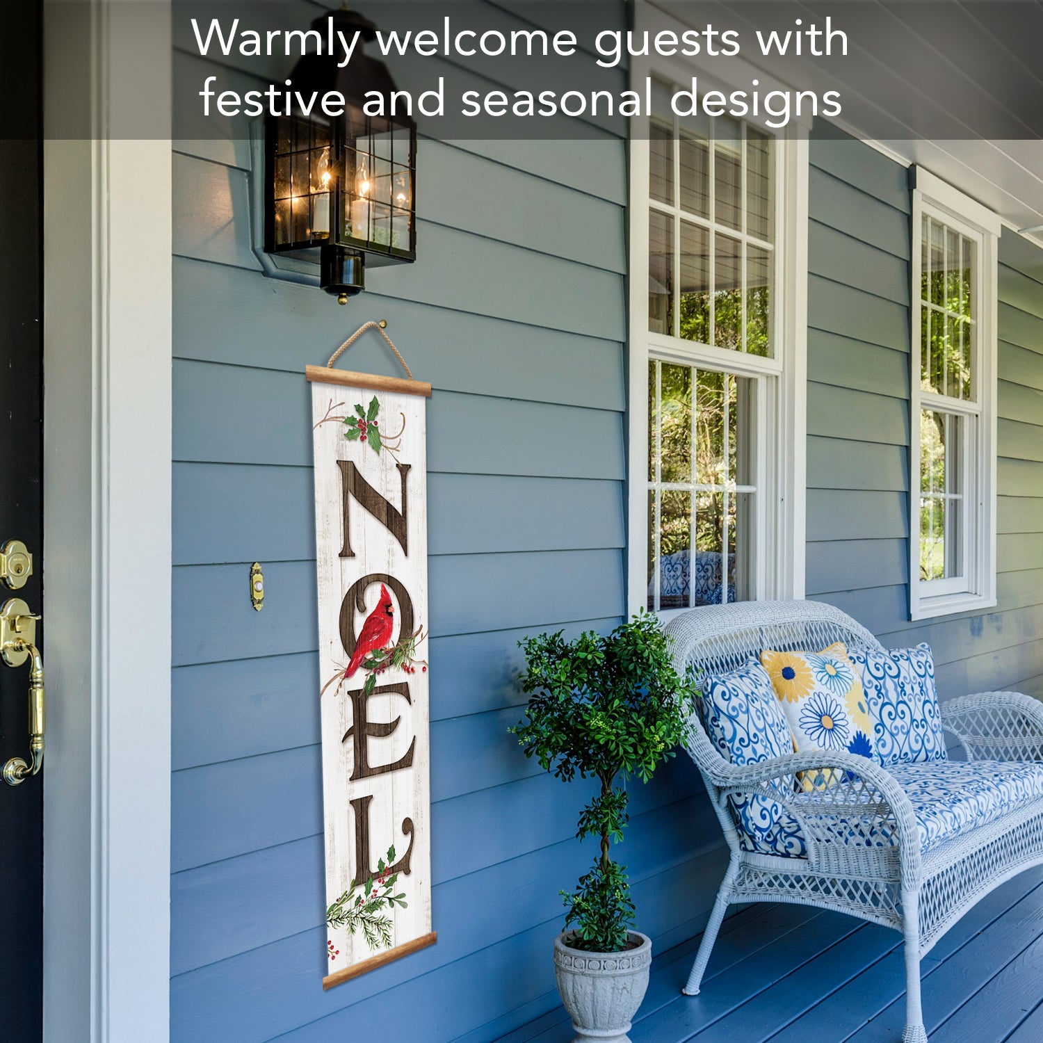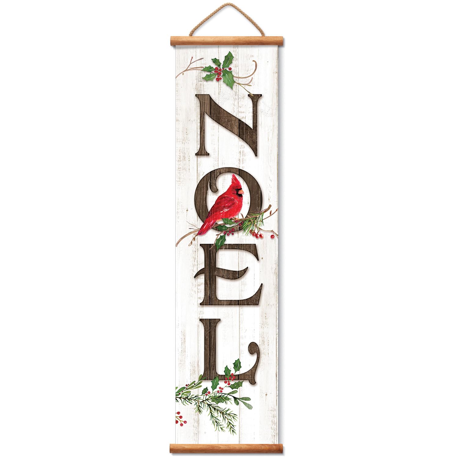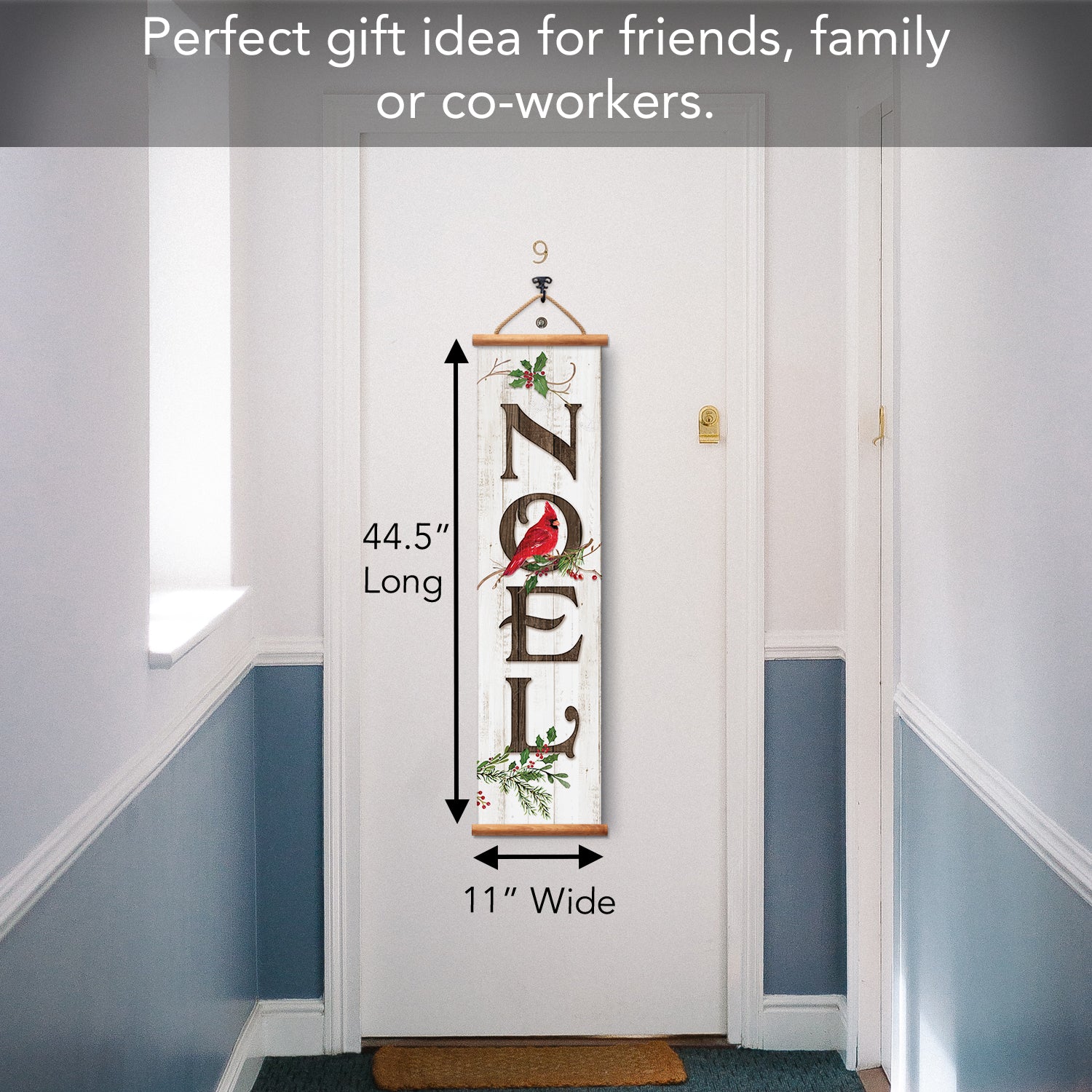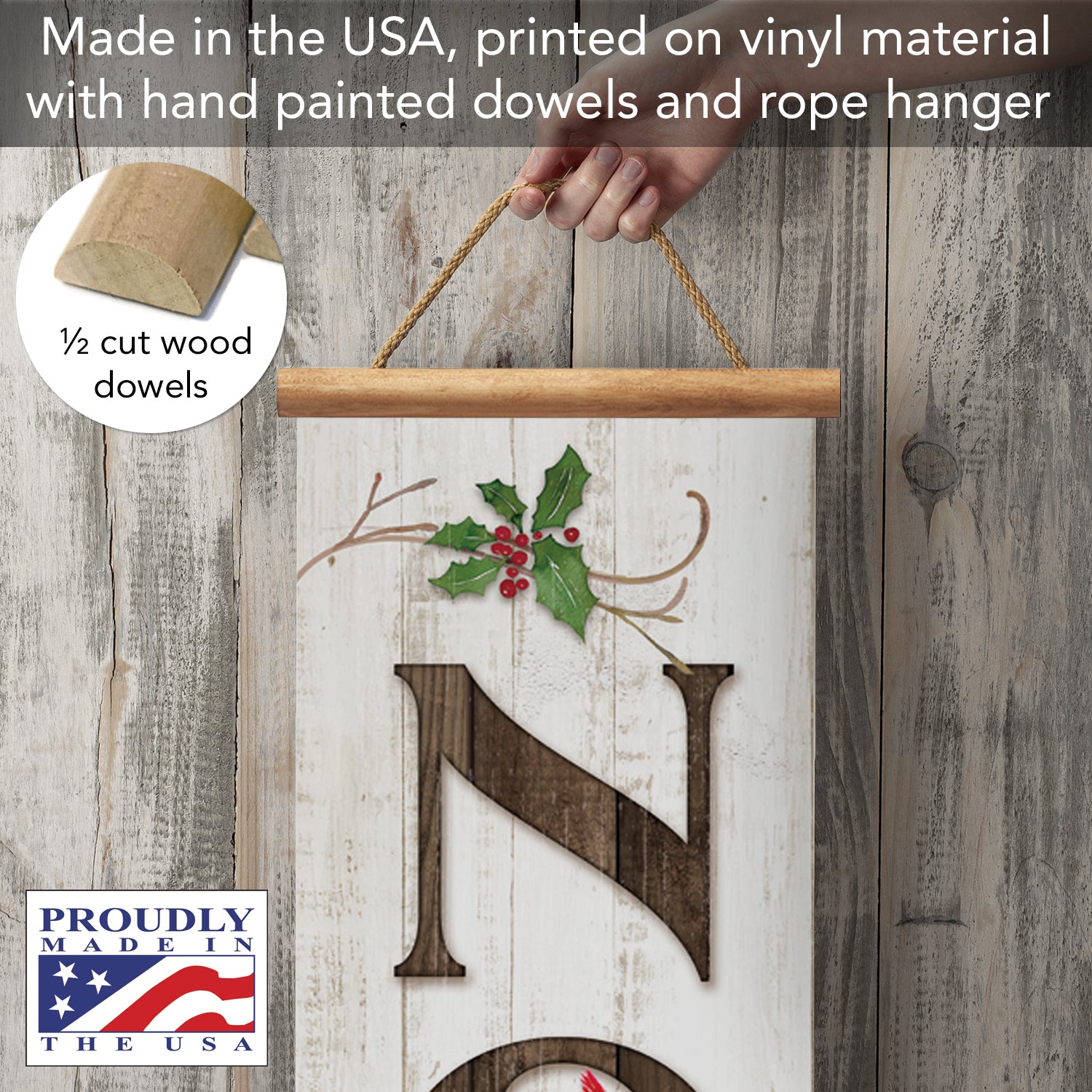 Noel Indoor/Outdoor Vinyl Hanging Entryway Sign Made in the USA Wooden Dowel on Each End