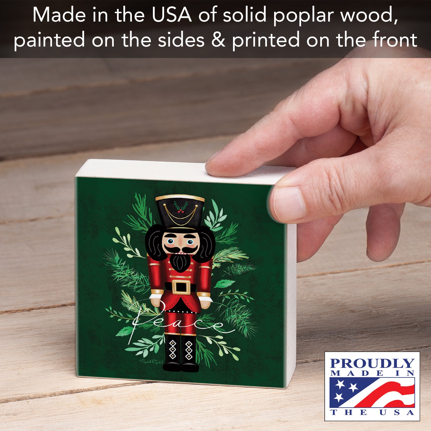 DURABLE-Our Wood Blocks are constructed of solid Poplar Wood. Artistic design and quotes are printed on the front with painted sides and a natural wood back.