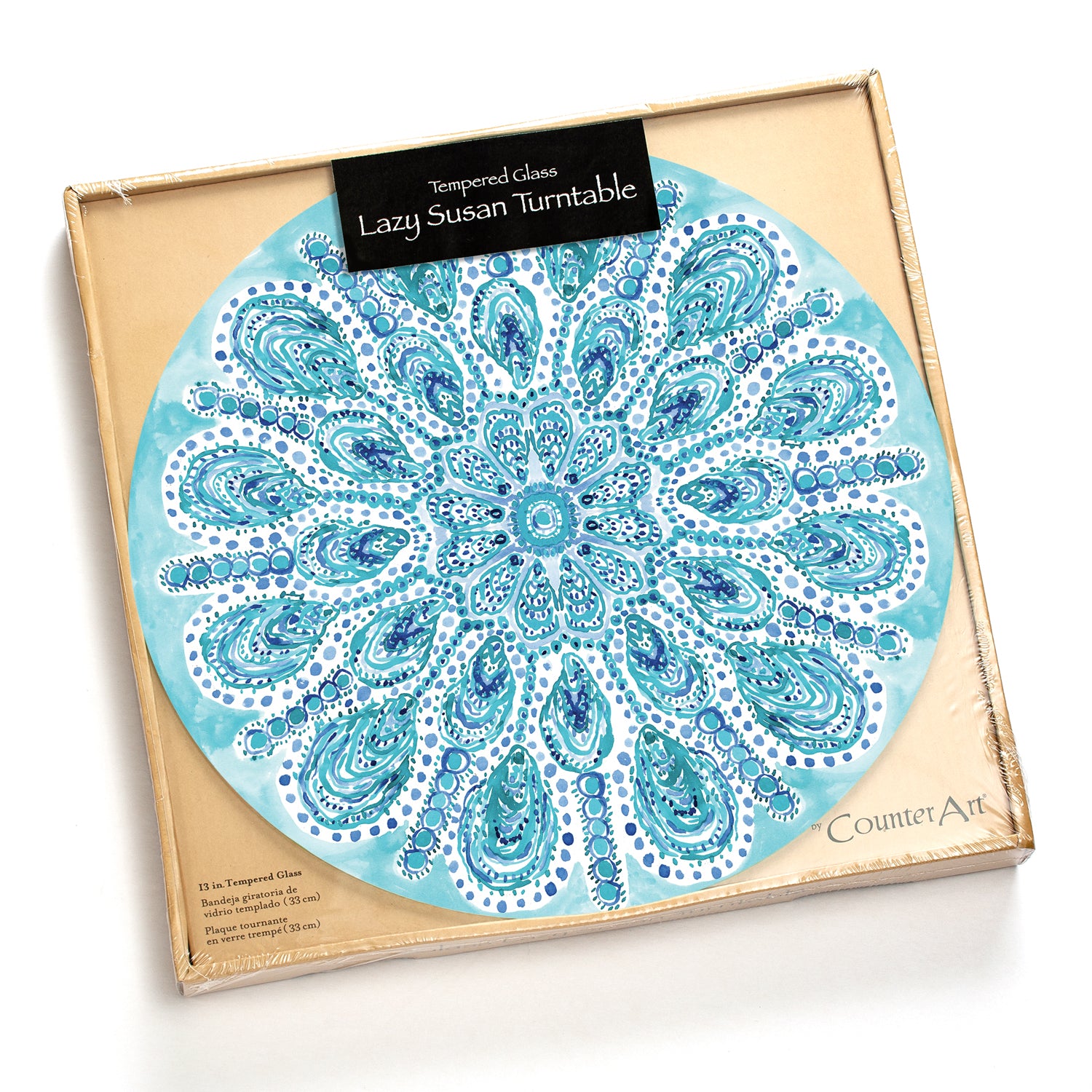 CounterArt Ocean Fantasy 4mm Tempered Glass Lazy Susan Turntable 13" Diameter