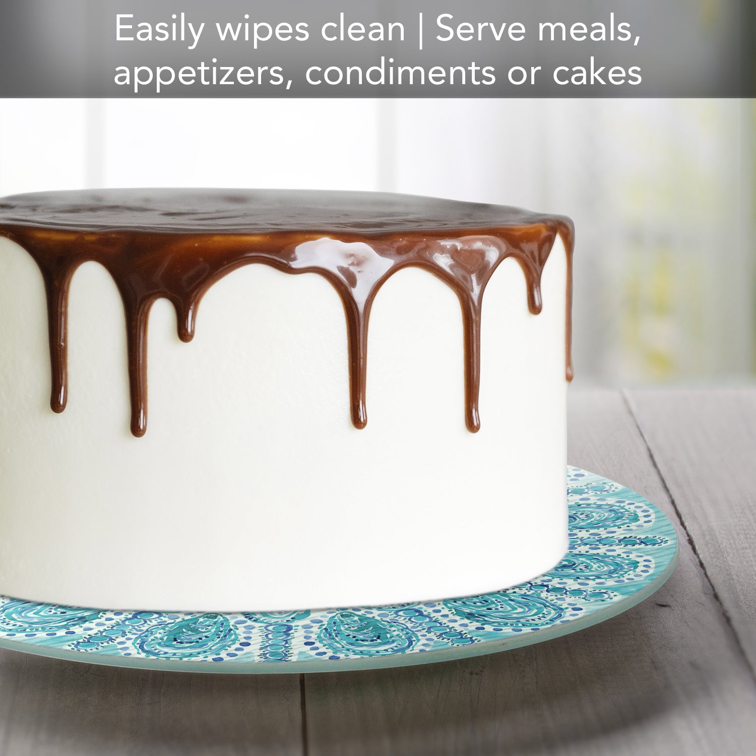 VERSATILE FUNCTIONALITY-Ideal for entertaining when serving cheese, fruit, and appetizers. Use as a Cake Plate, the rotation makes it easy to ice and decorate your cake. Put Pizza on it to cut and serve.