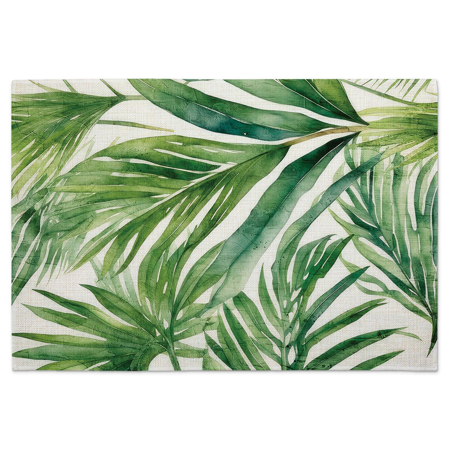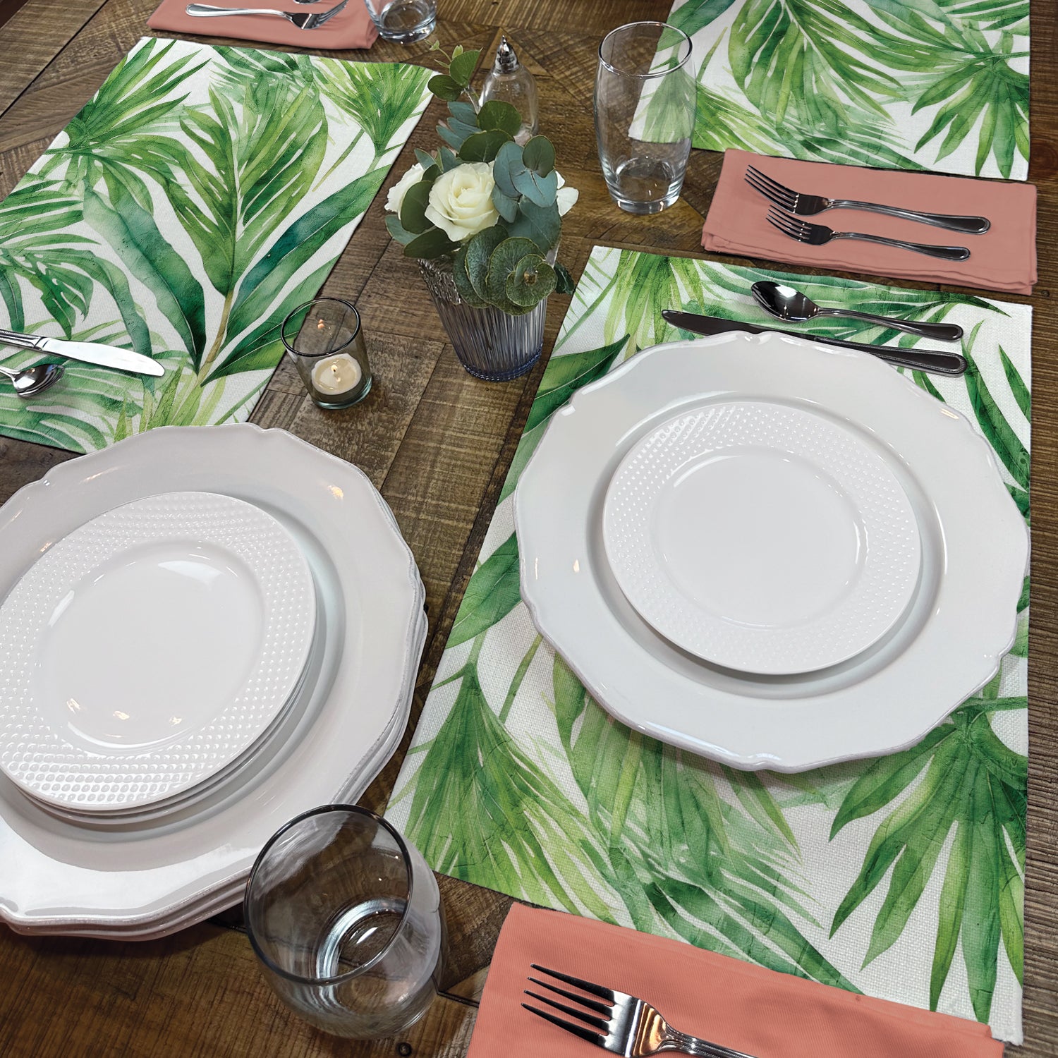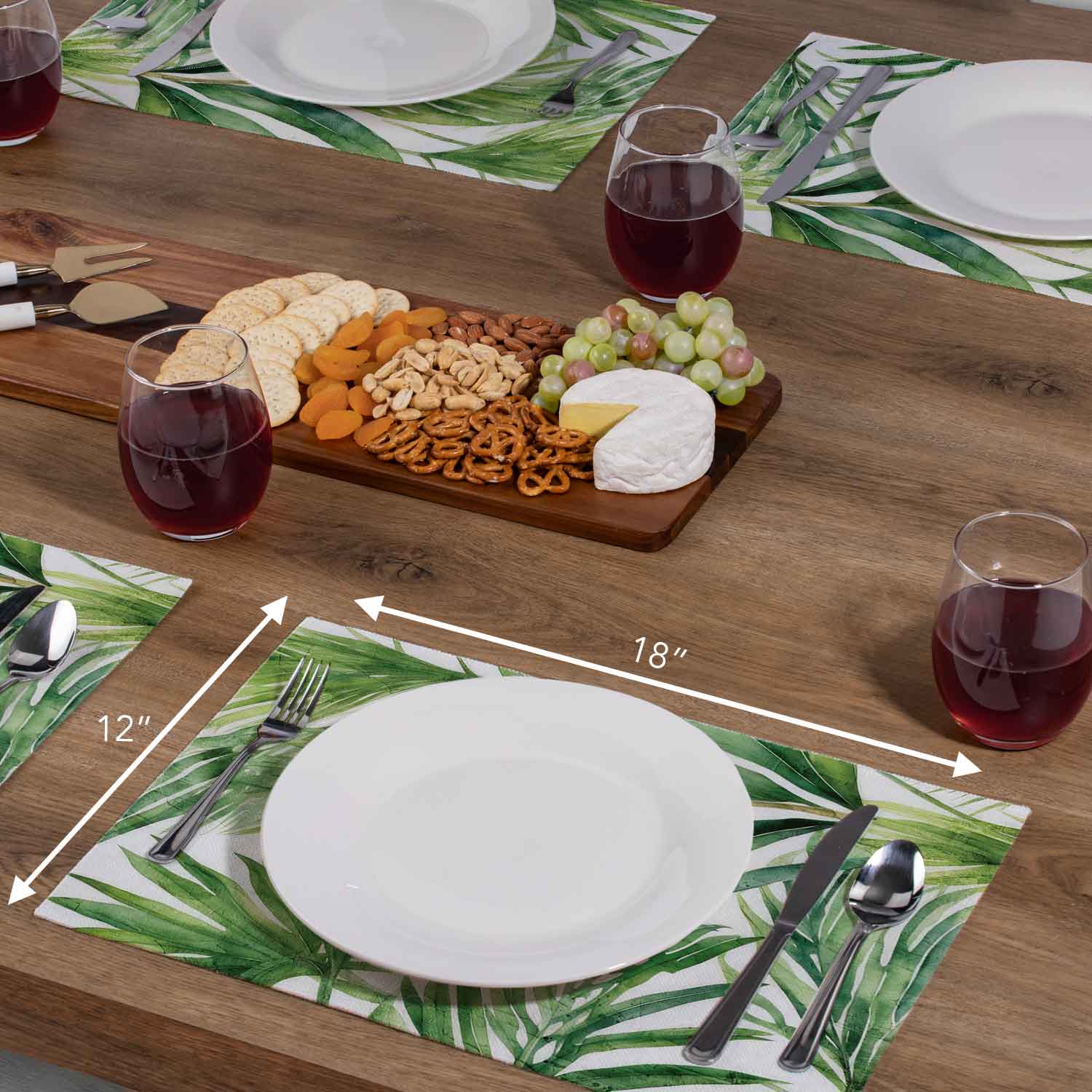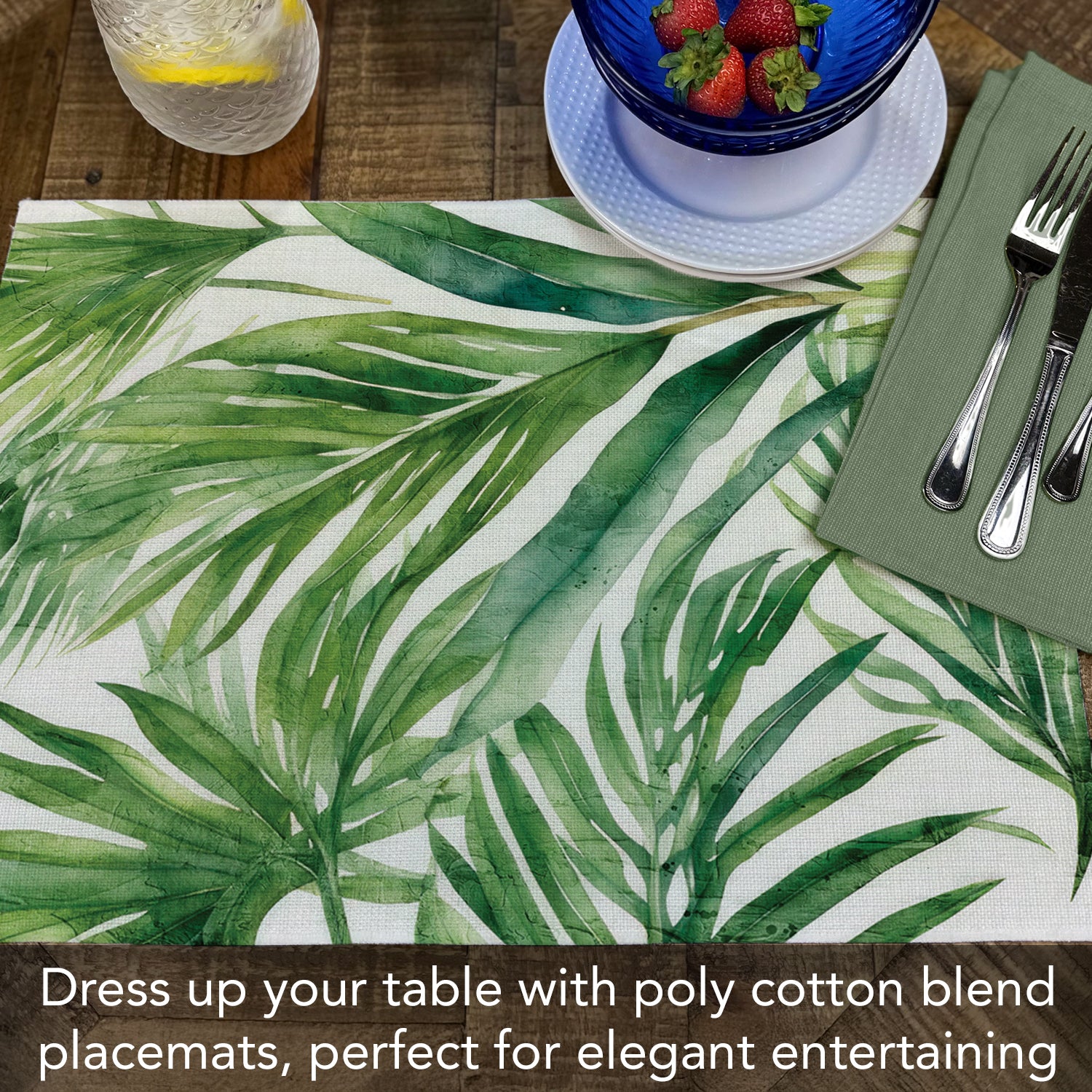 Highland Home Tropical Green 4 Pack Poly-Cotton Blend Fabric Placemats 18" x 12" Manufactured in The USA