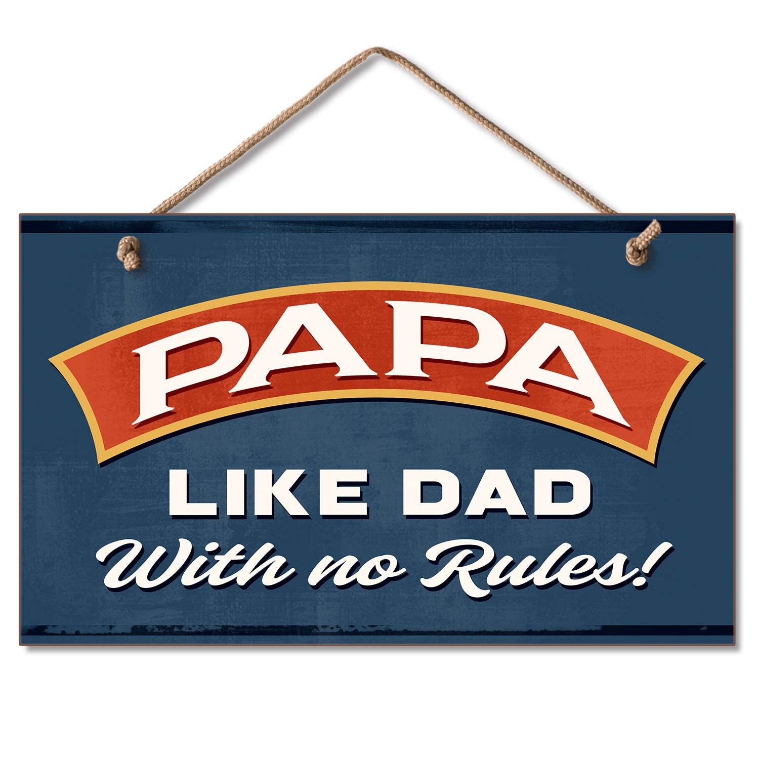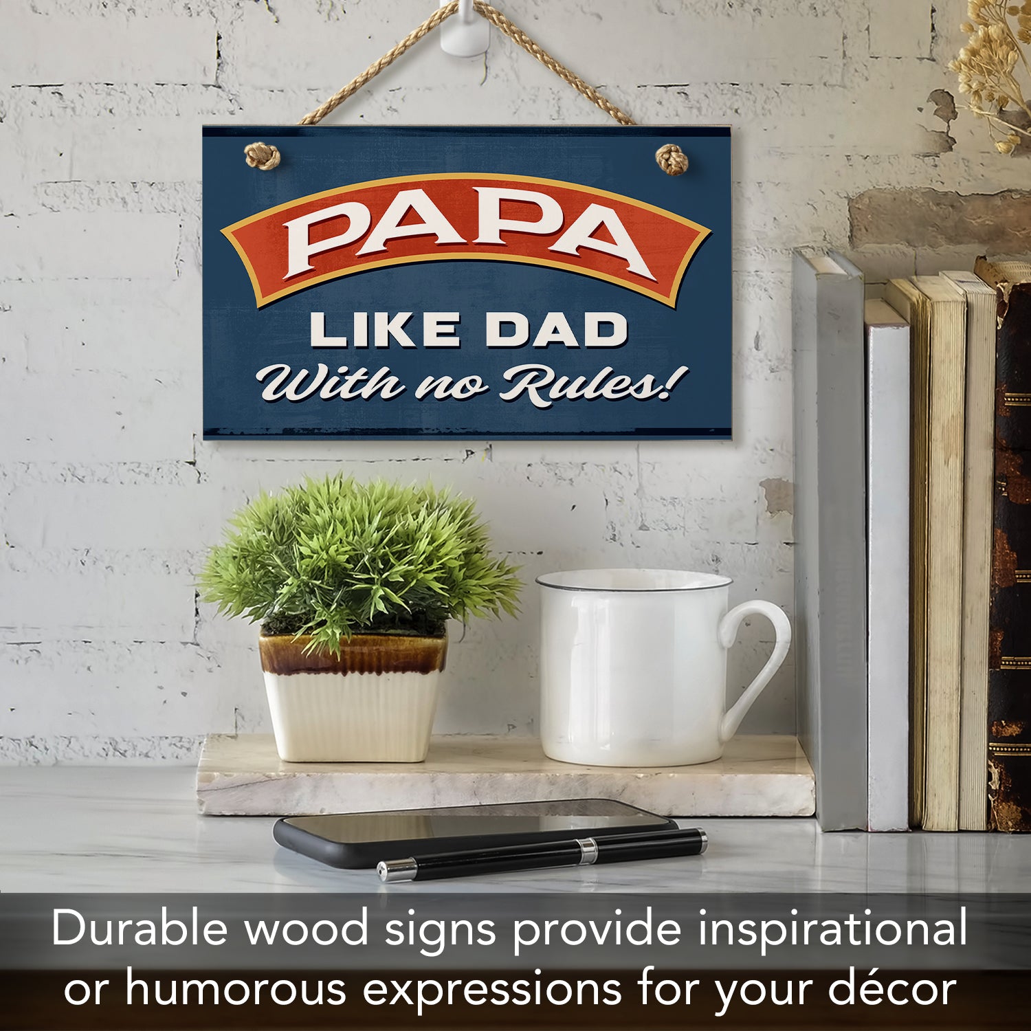 Papa Like Dad With No Rules Decorative Hanging Wood Wall Sign 9.5” x 5.75” Made in the USA