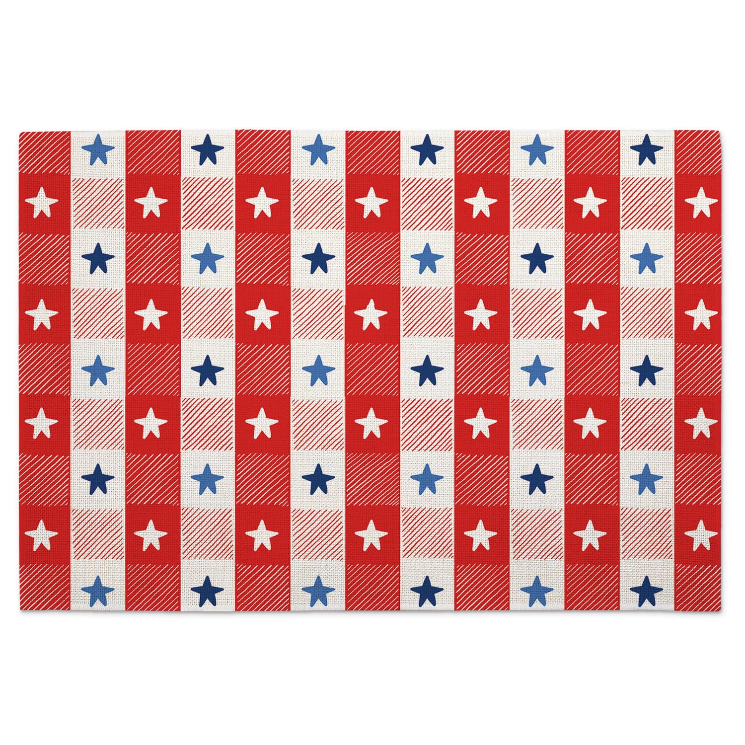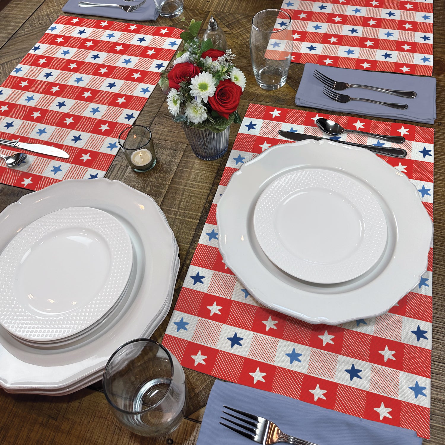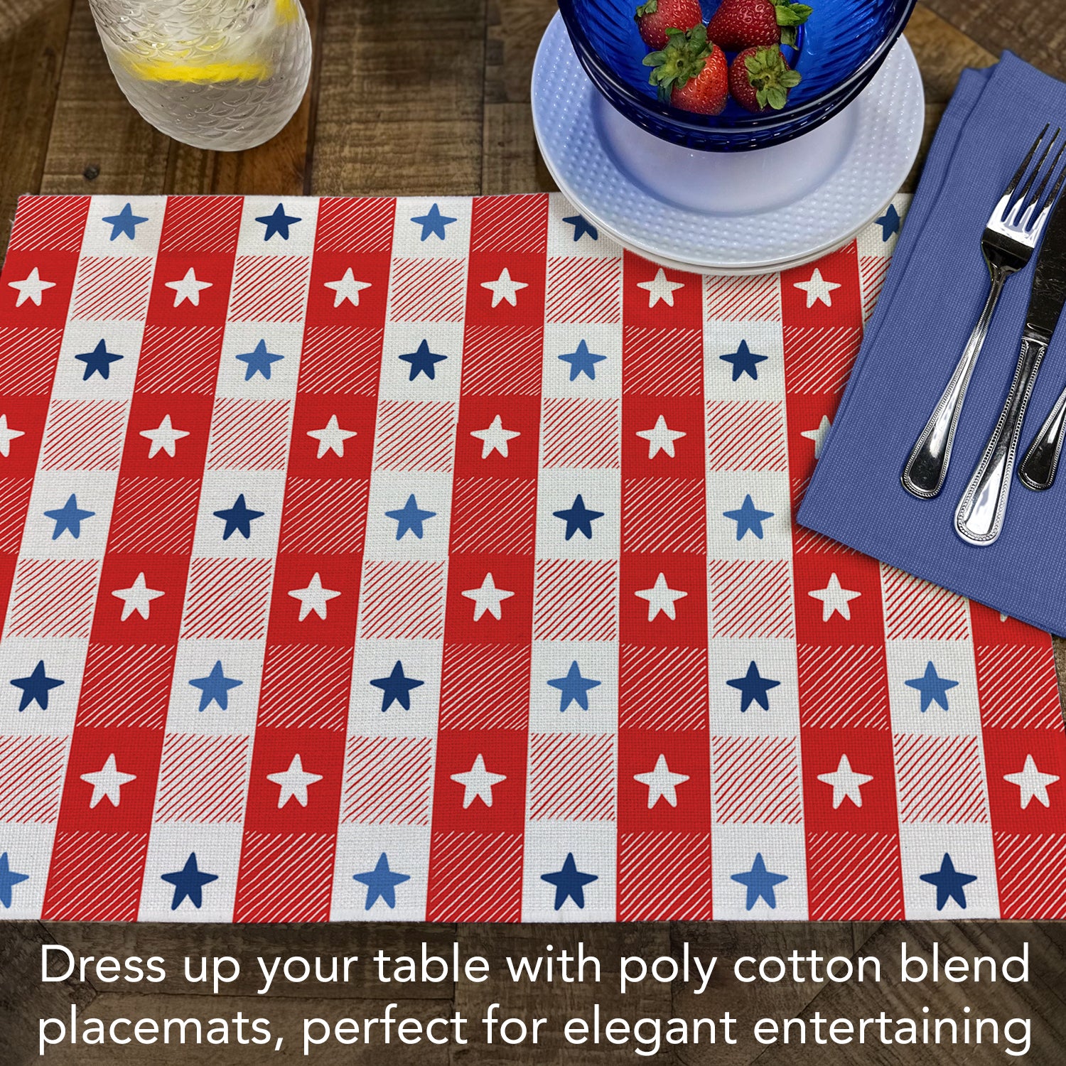 Highland Home Patriotic Picnic 4 Pack Poly-Cotton Blend Fabric Placemats 18" x 12" Manufactured in The USA