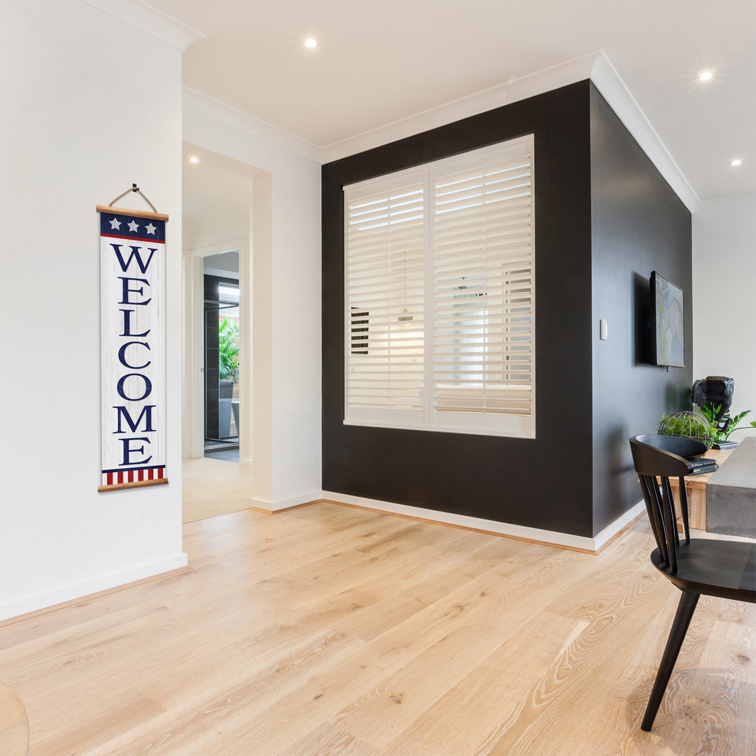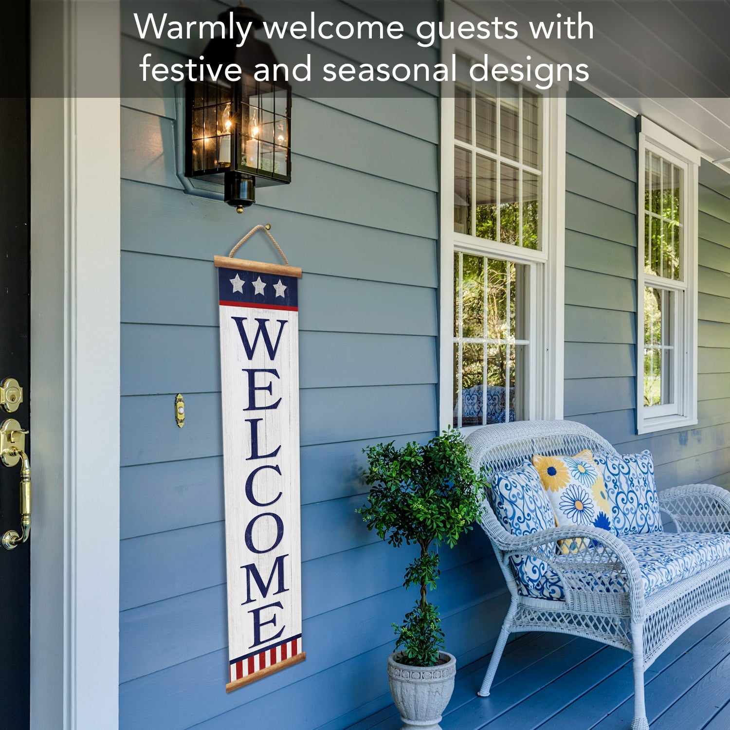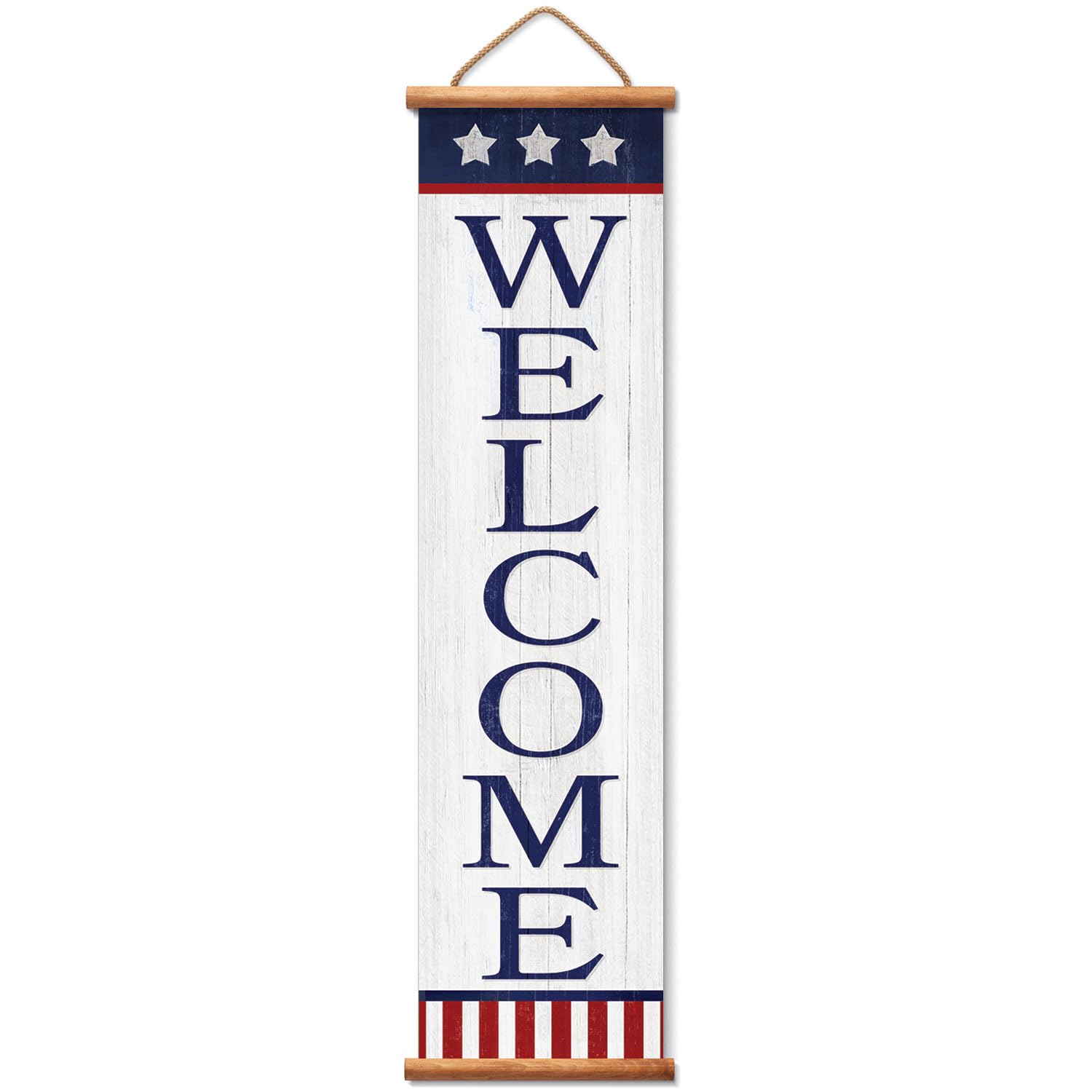 Patriotic Welcome Indoor/Outdoor Vinyl Hanging Entryway Sign Made in the USA