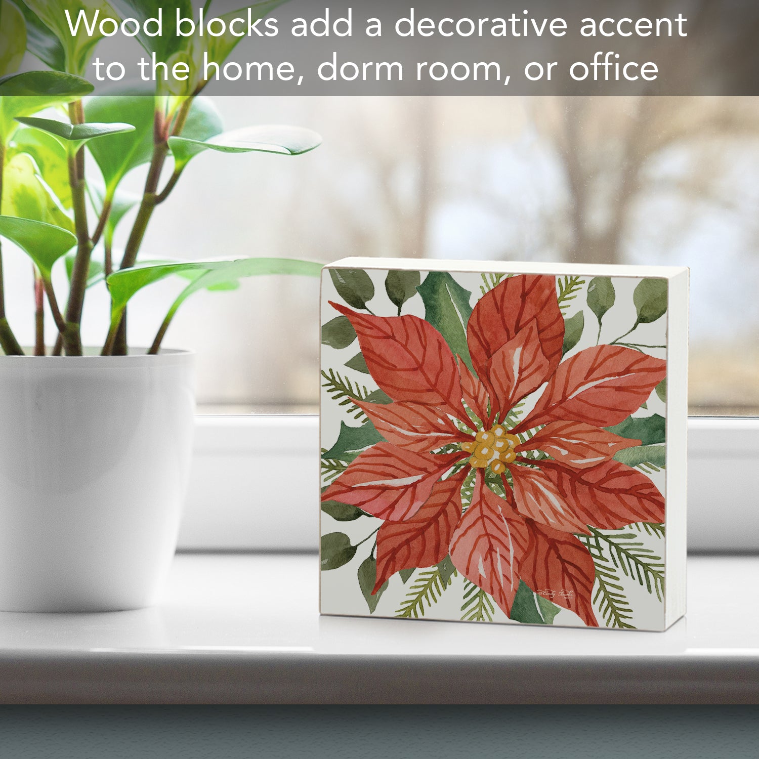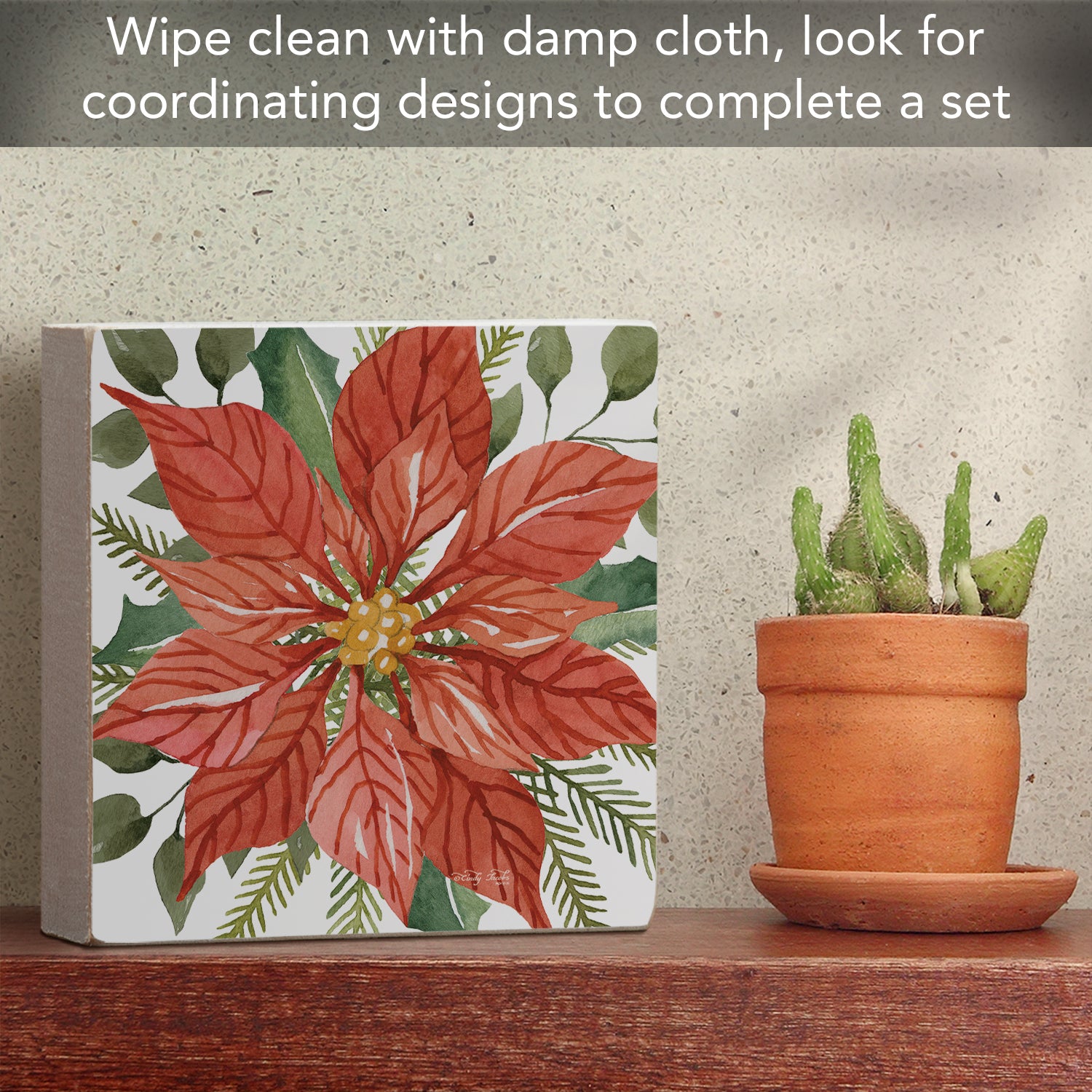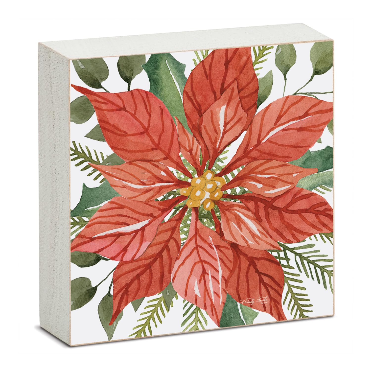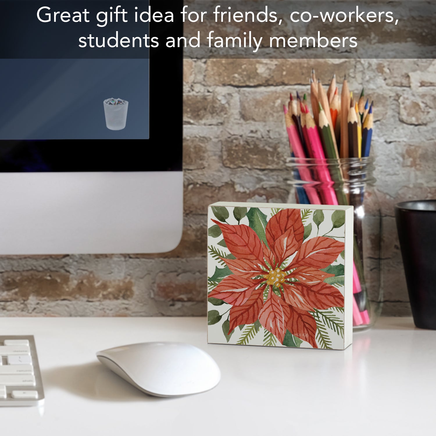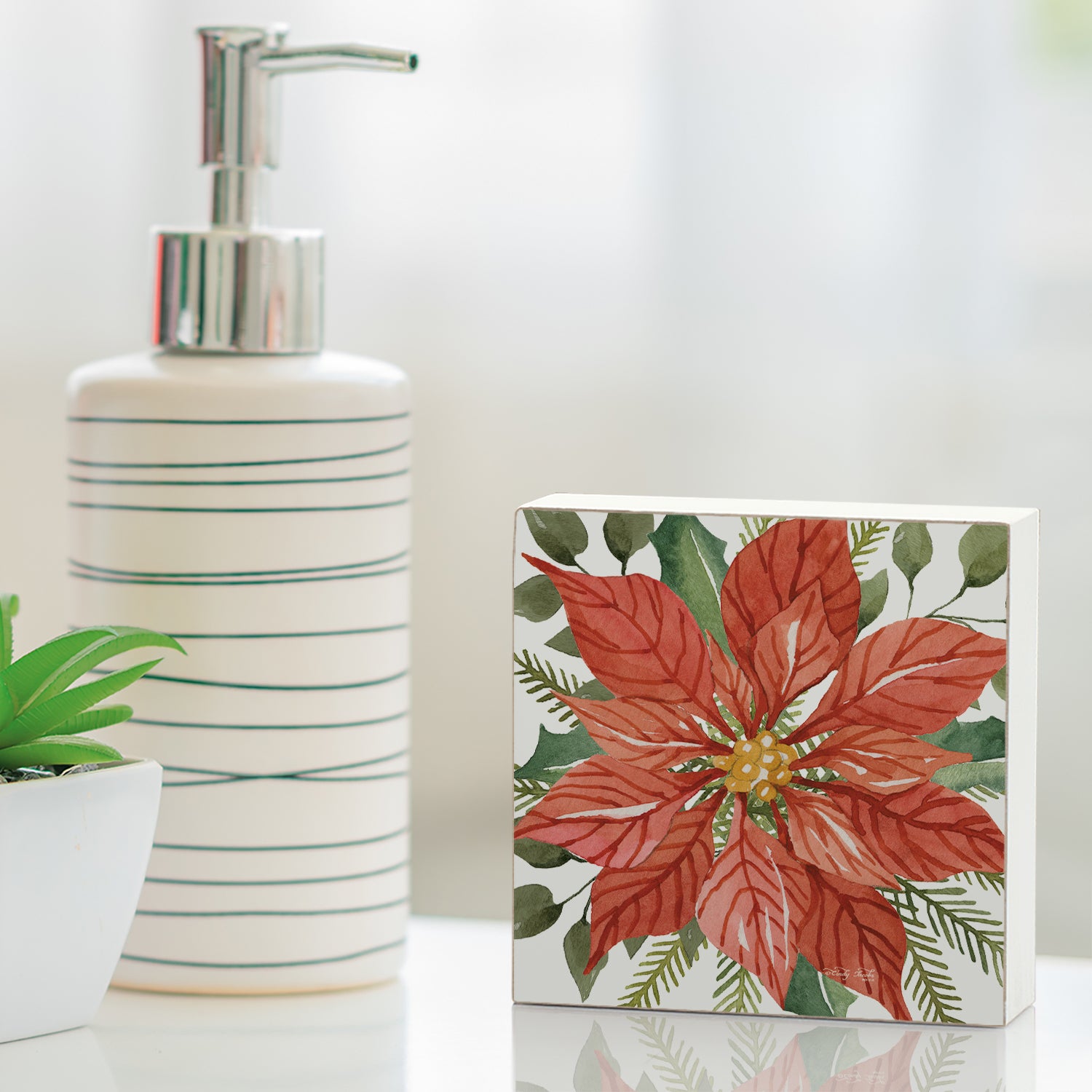 Poinsettia Decorative Wooden Home Accent Sign 3.75" Square Made in the USA