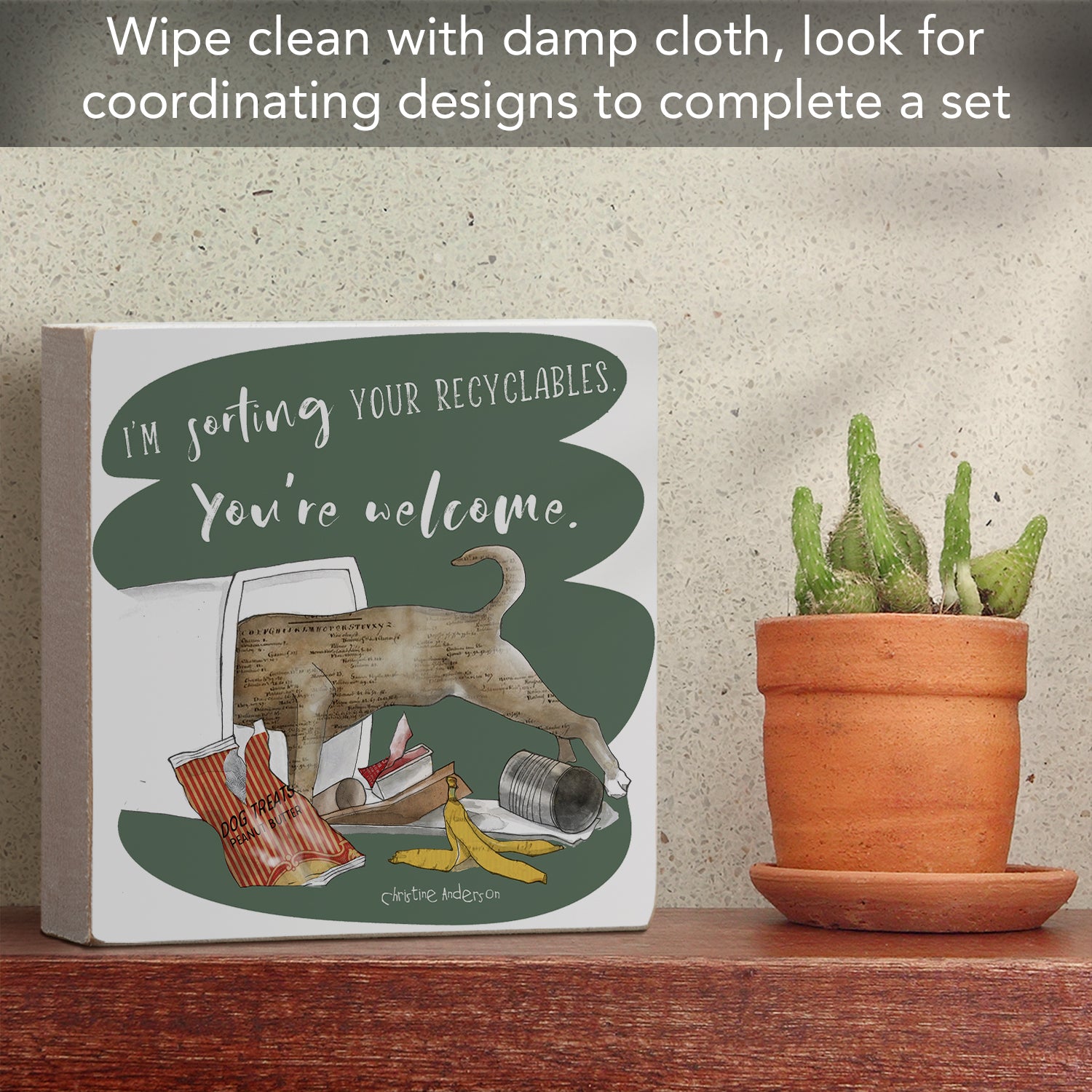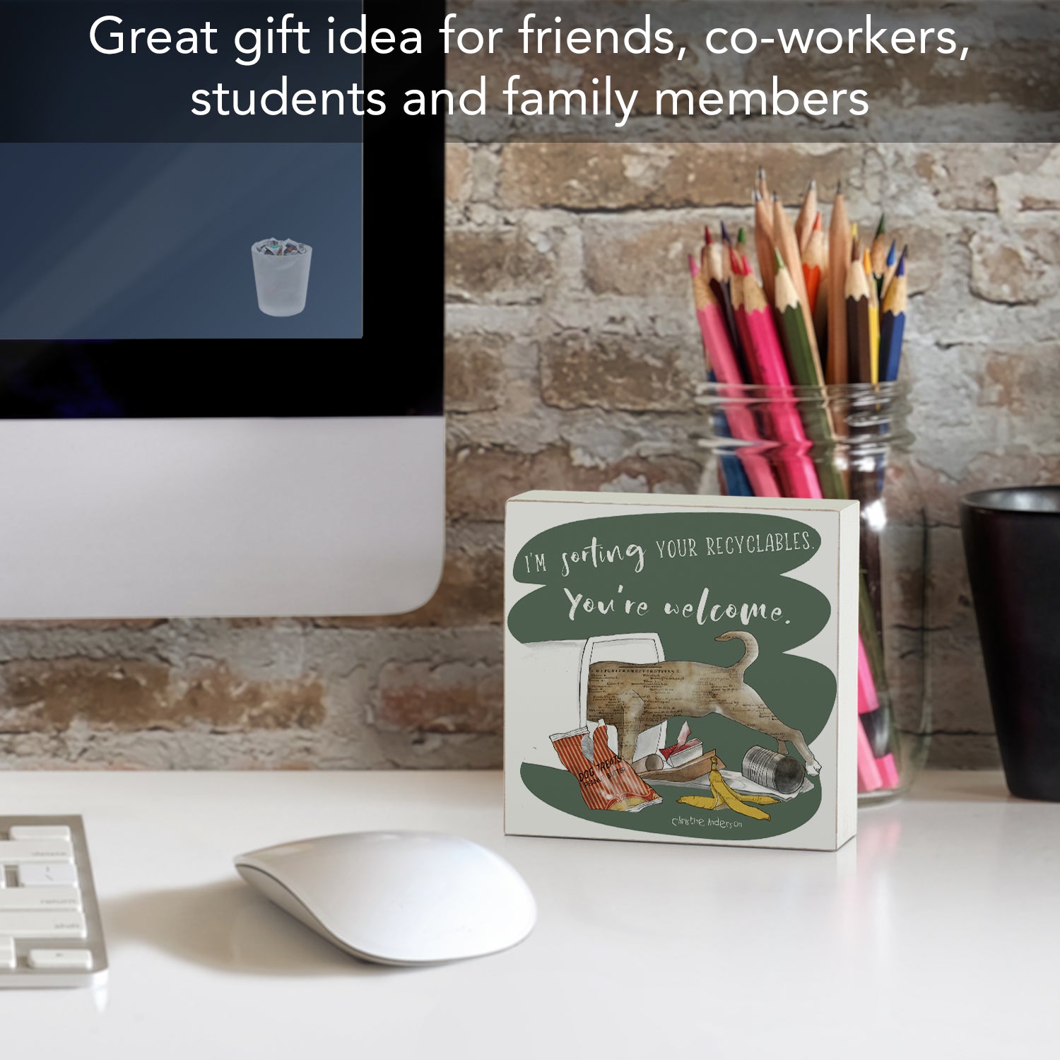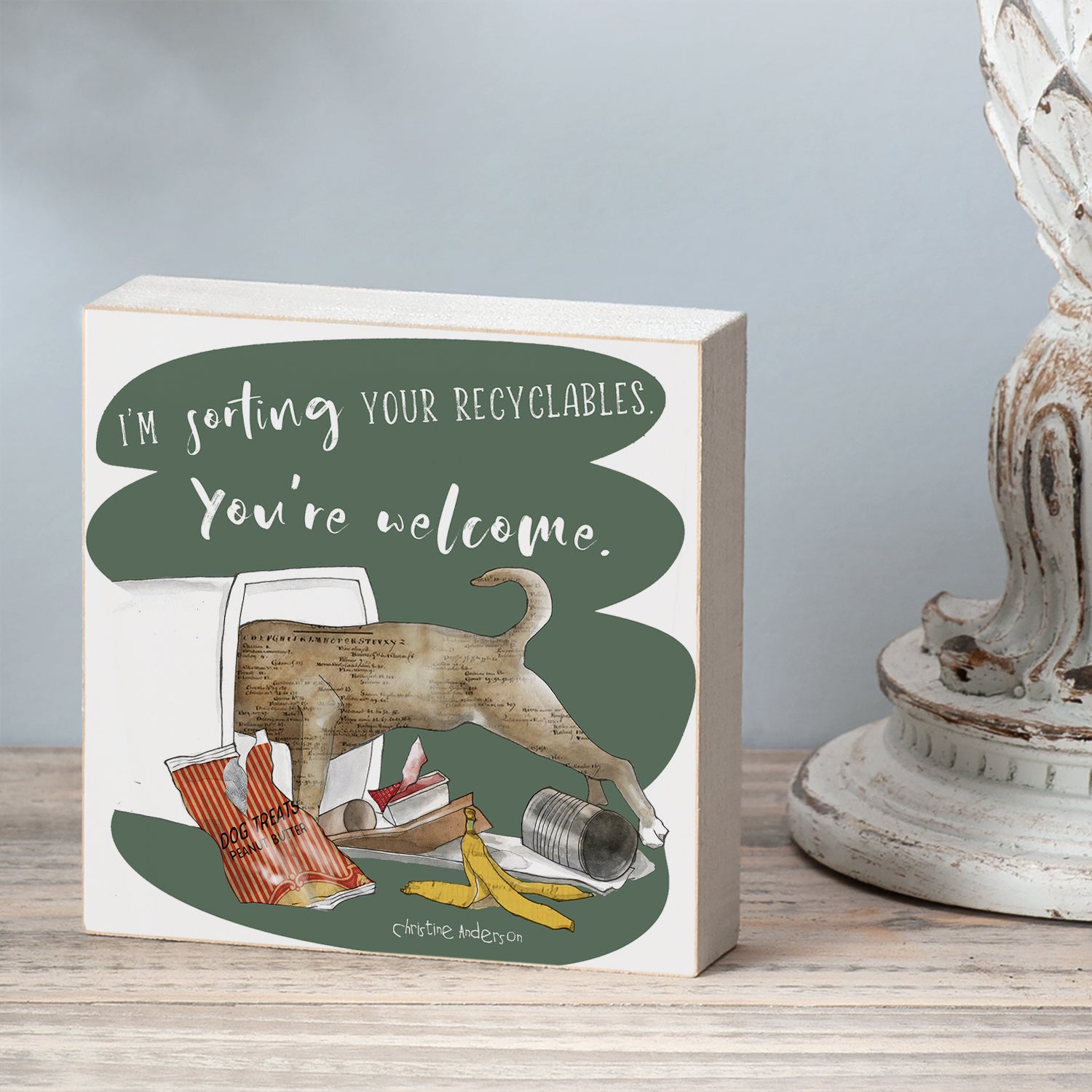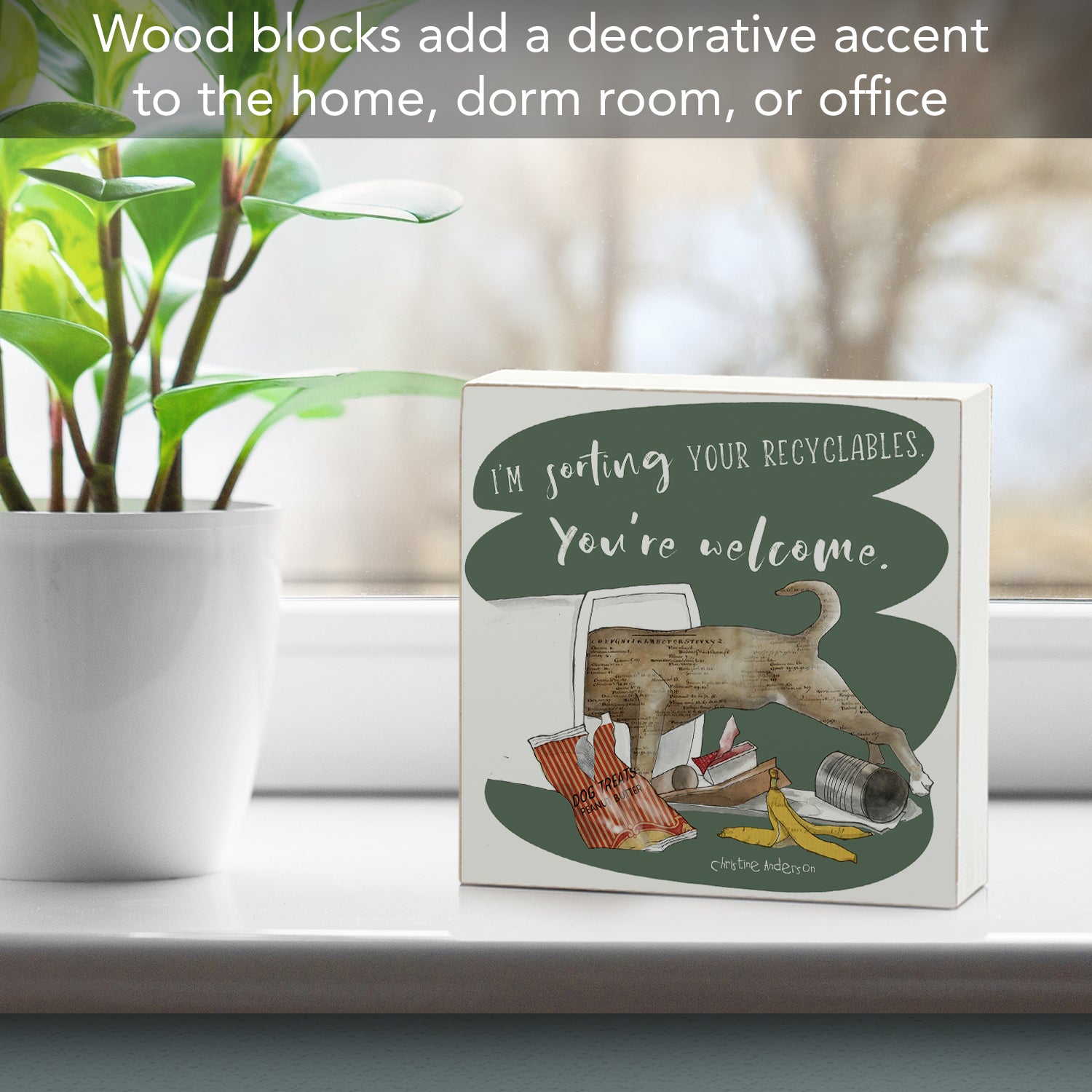 Recyclables Artistic Freestanding Solid Wood Block Sign Made in the USA 3.75” Square