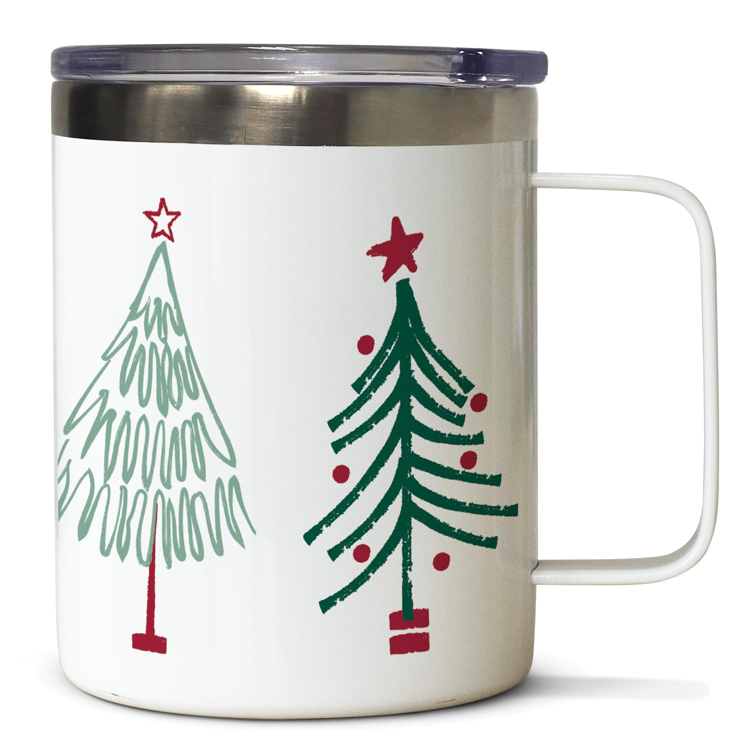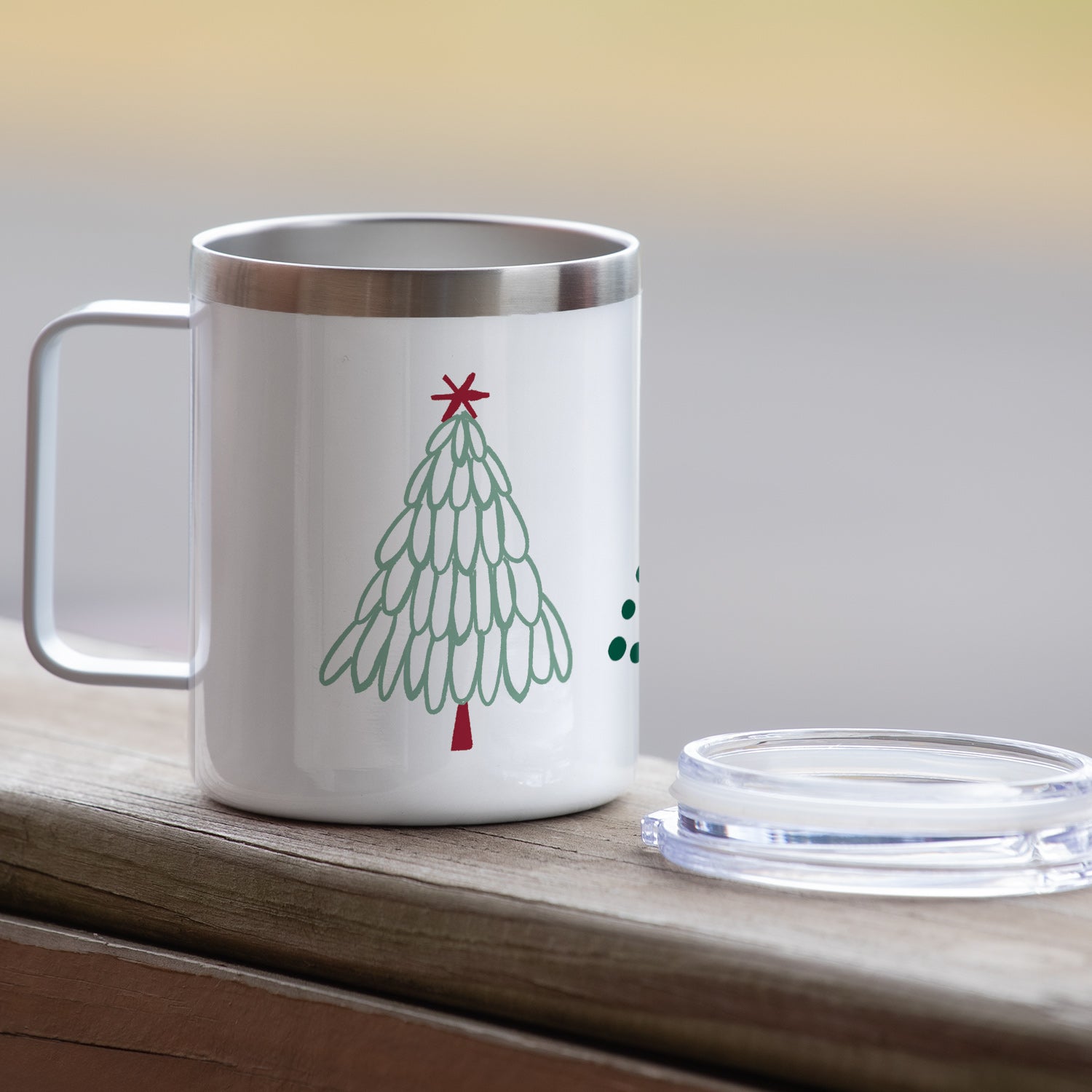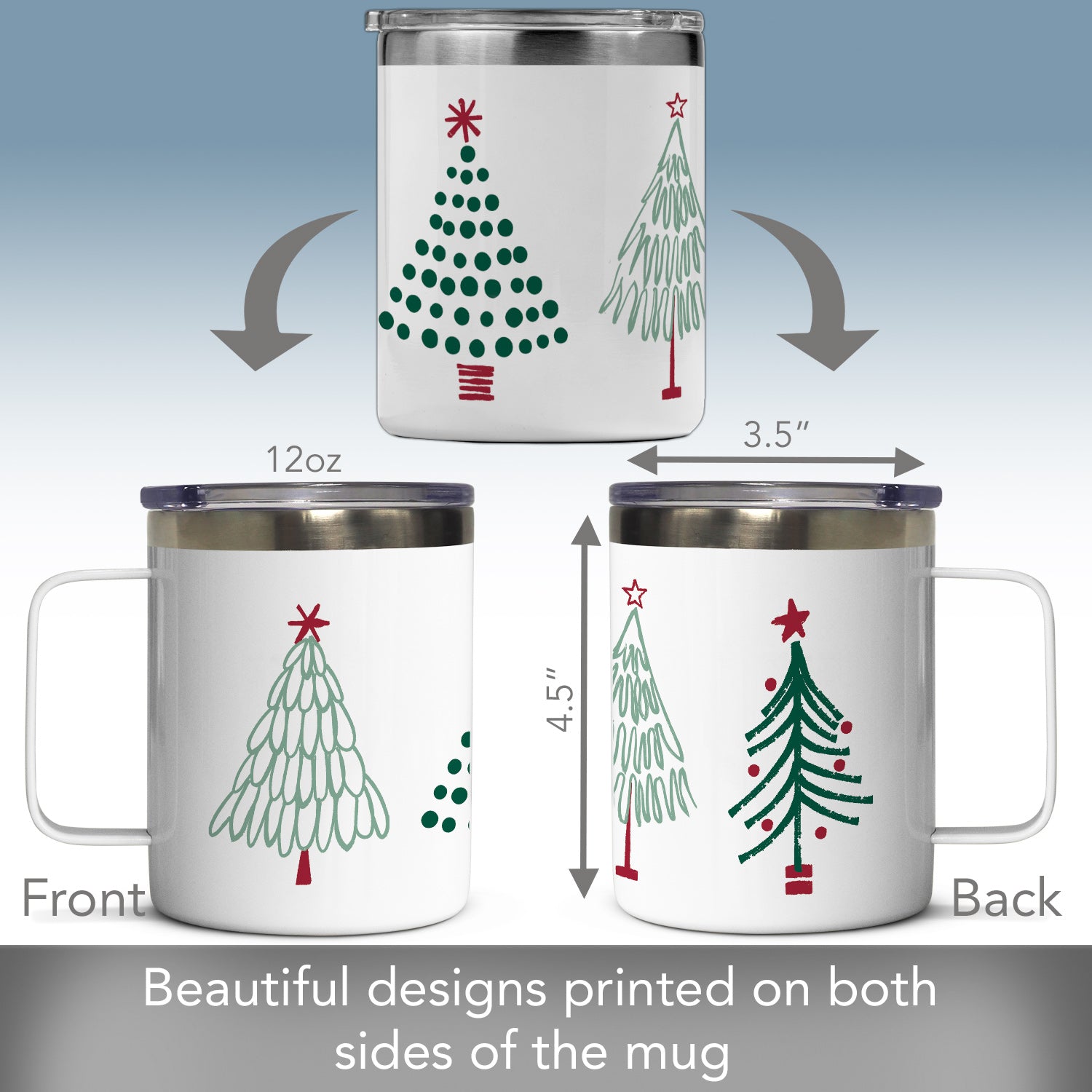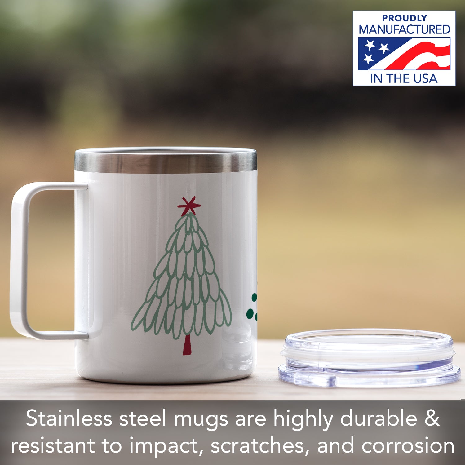 Scandinavian Trees Stainless Steel Insulated Travel Mug with Lid 12 oz. Manufactured in the USA