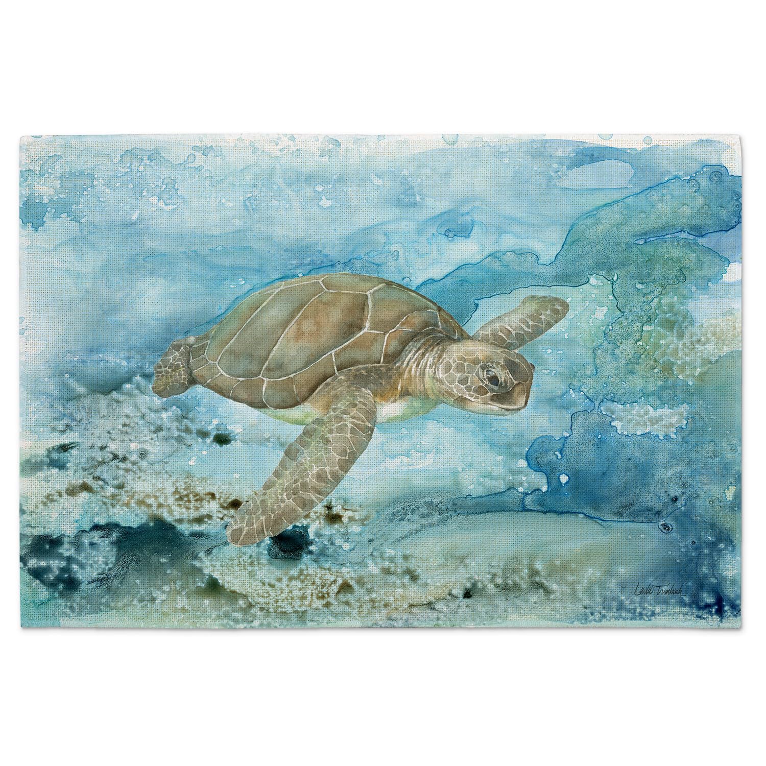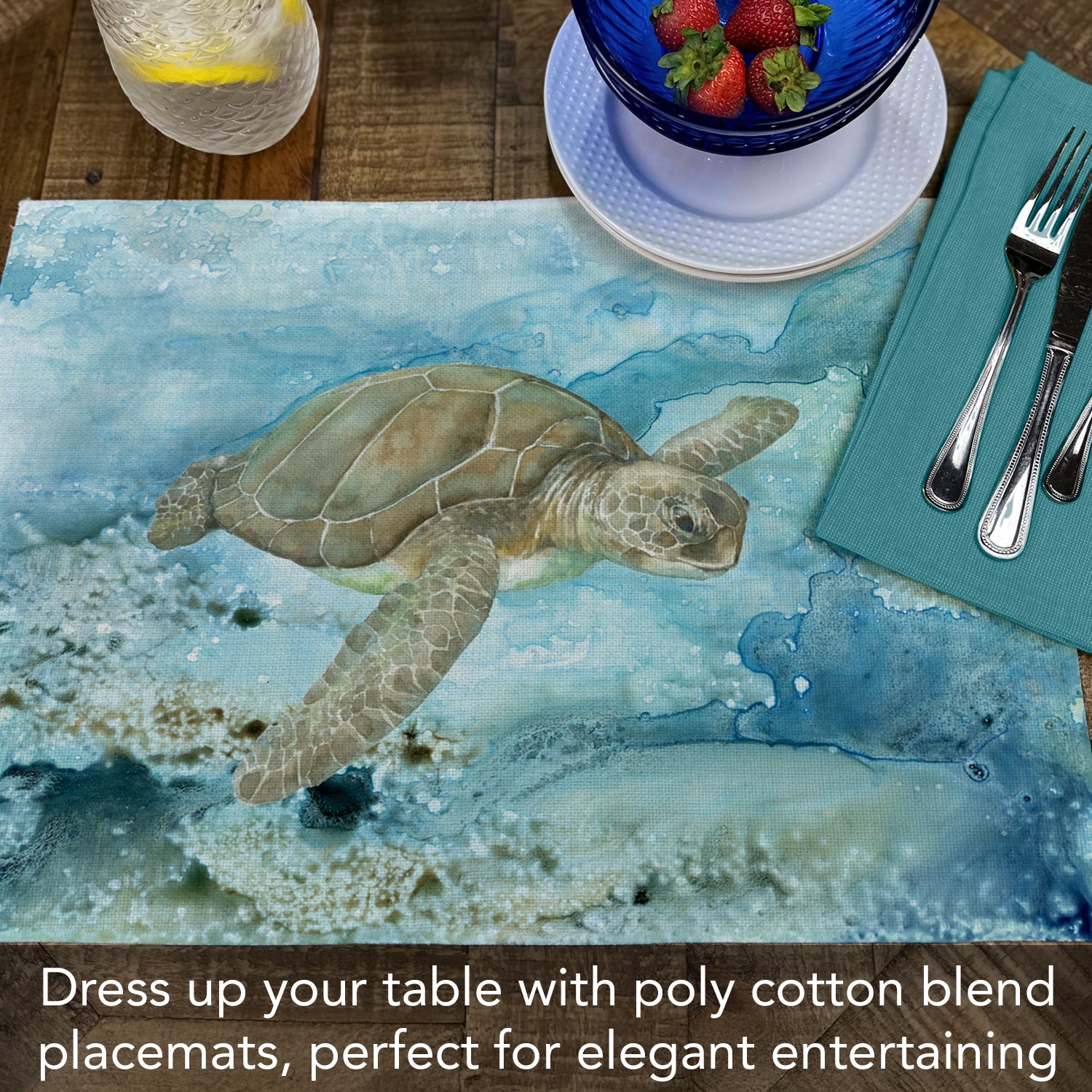 Highland Home Under Sea Turtle 4 Pack Poly-Cotton Blend Fabric Placemats 18" x 12" Manufactured in The USA