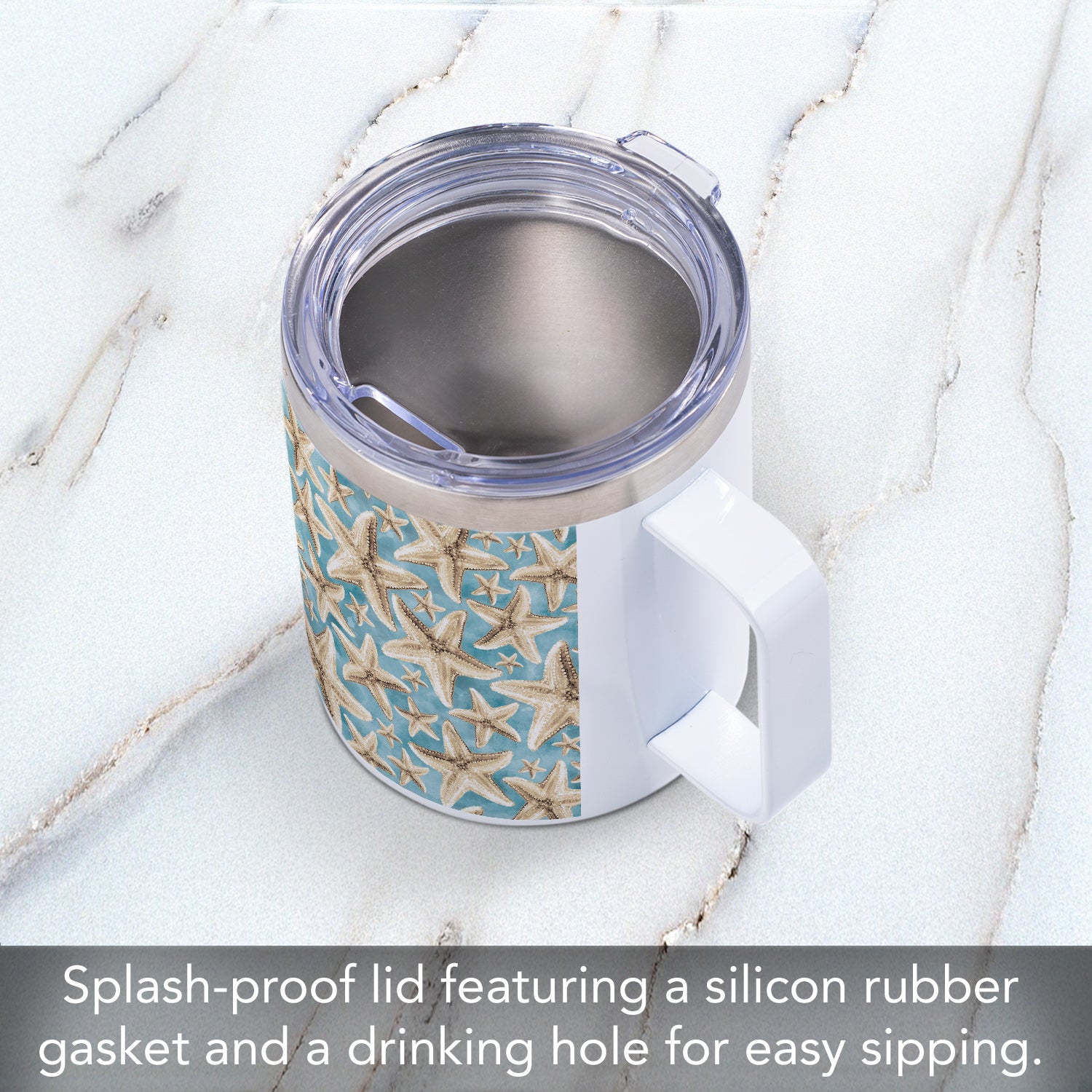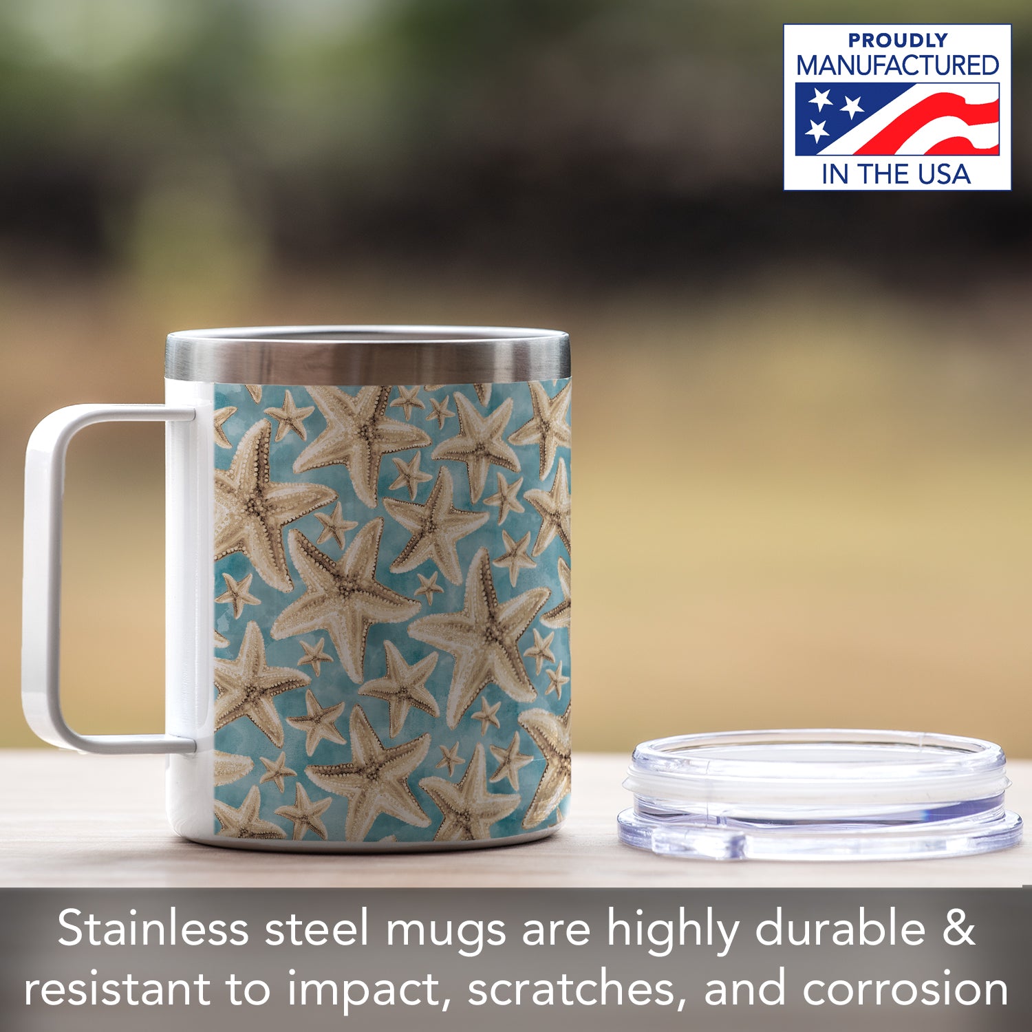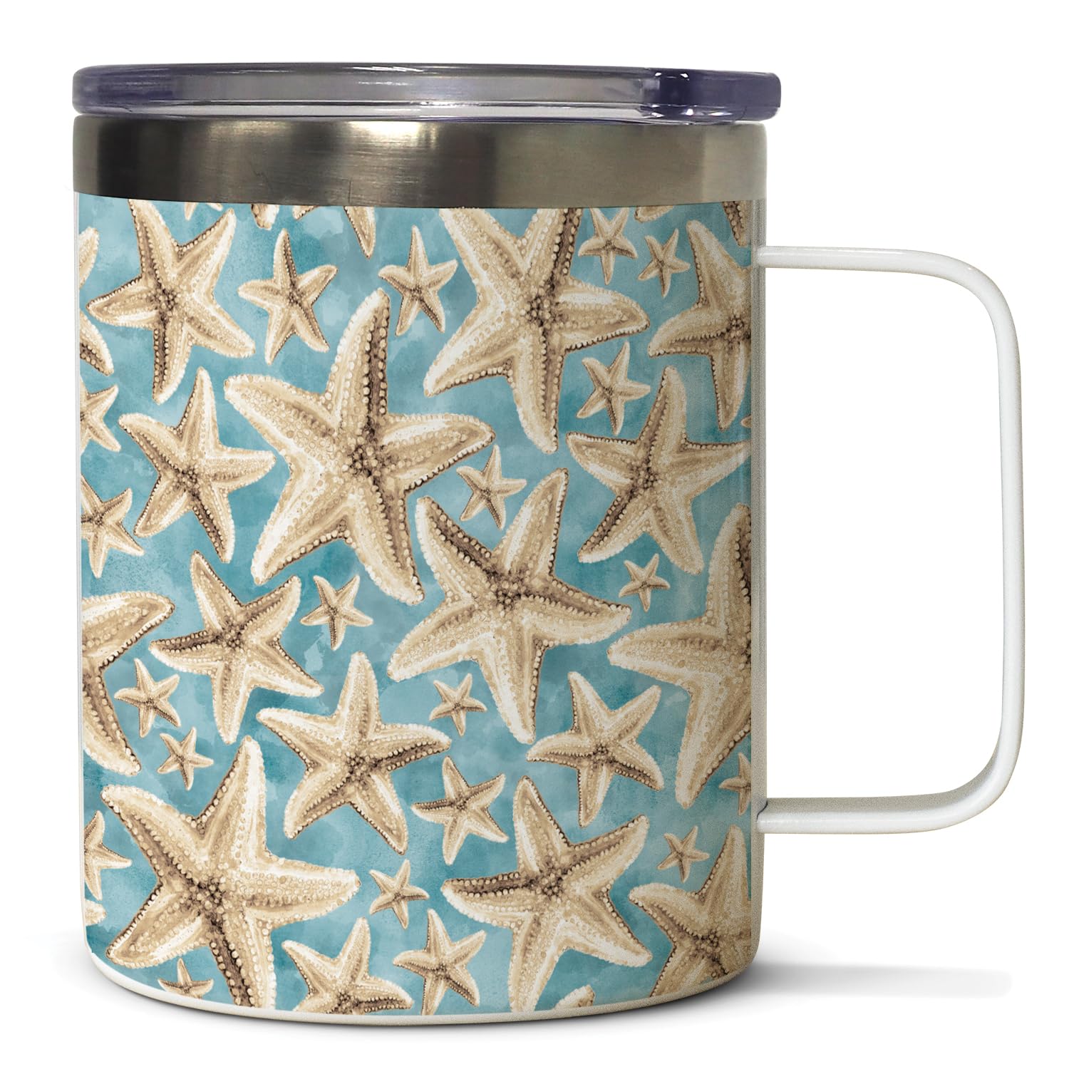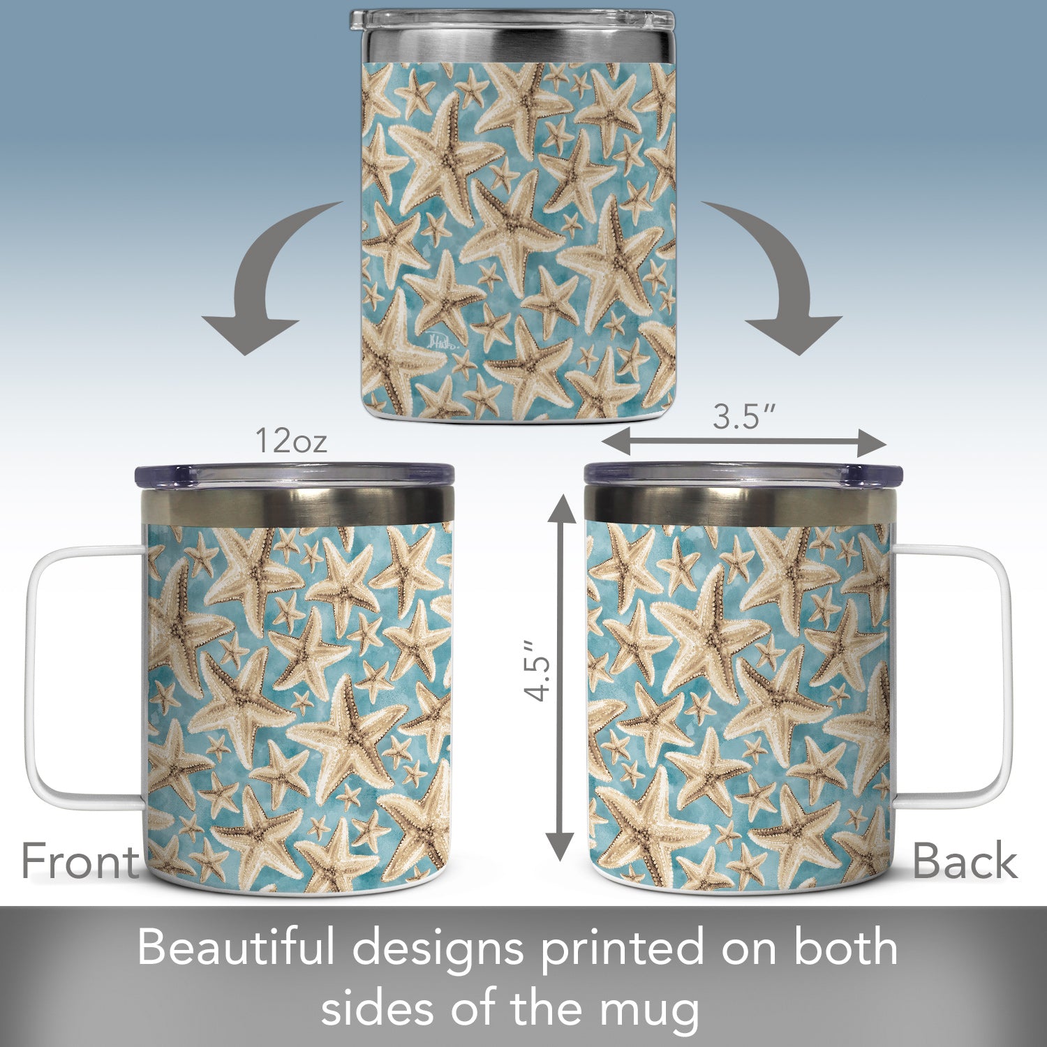 Starfish Galore Stainless Steel Travel Mug with Lid 12 oz. Manufactured in the USA