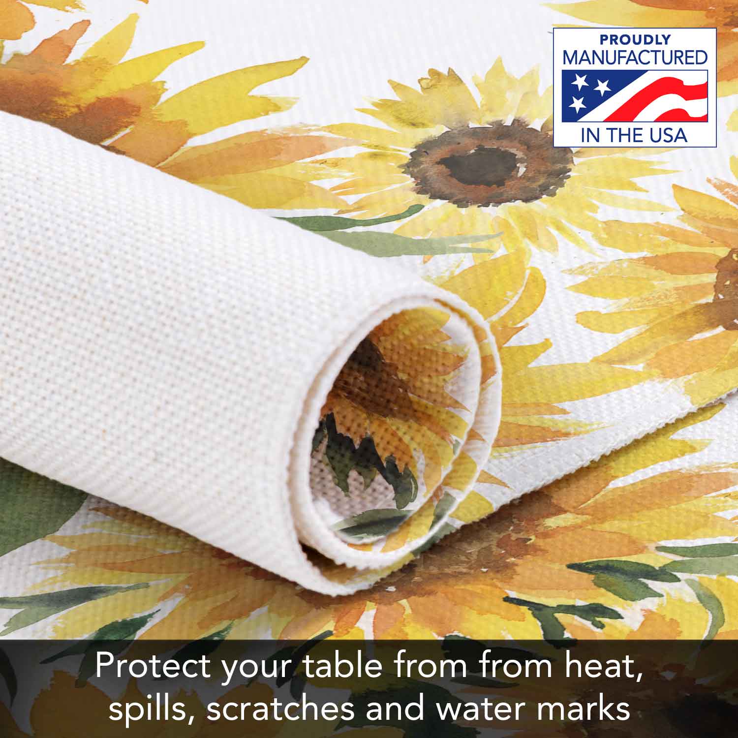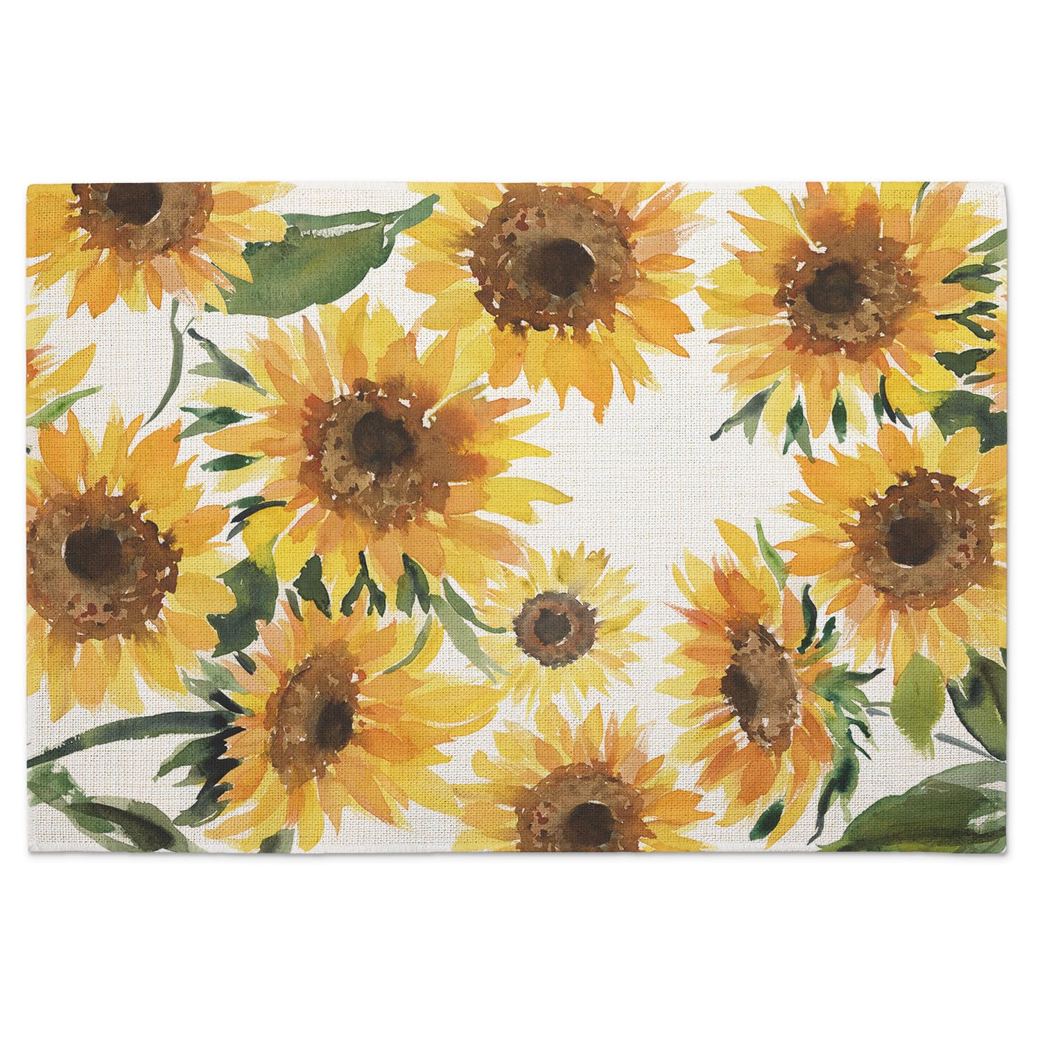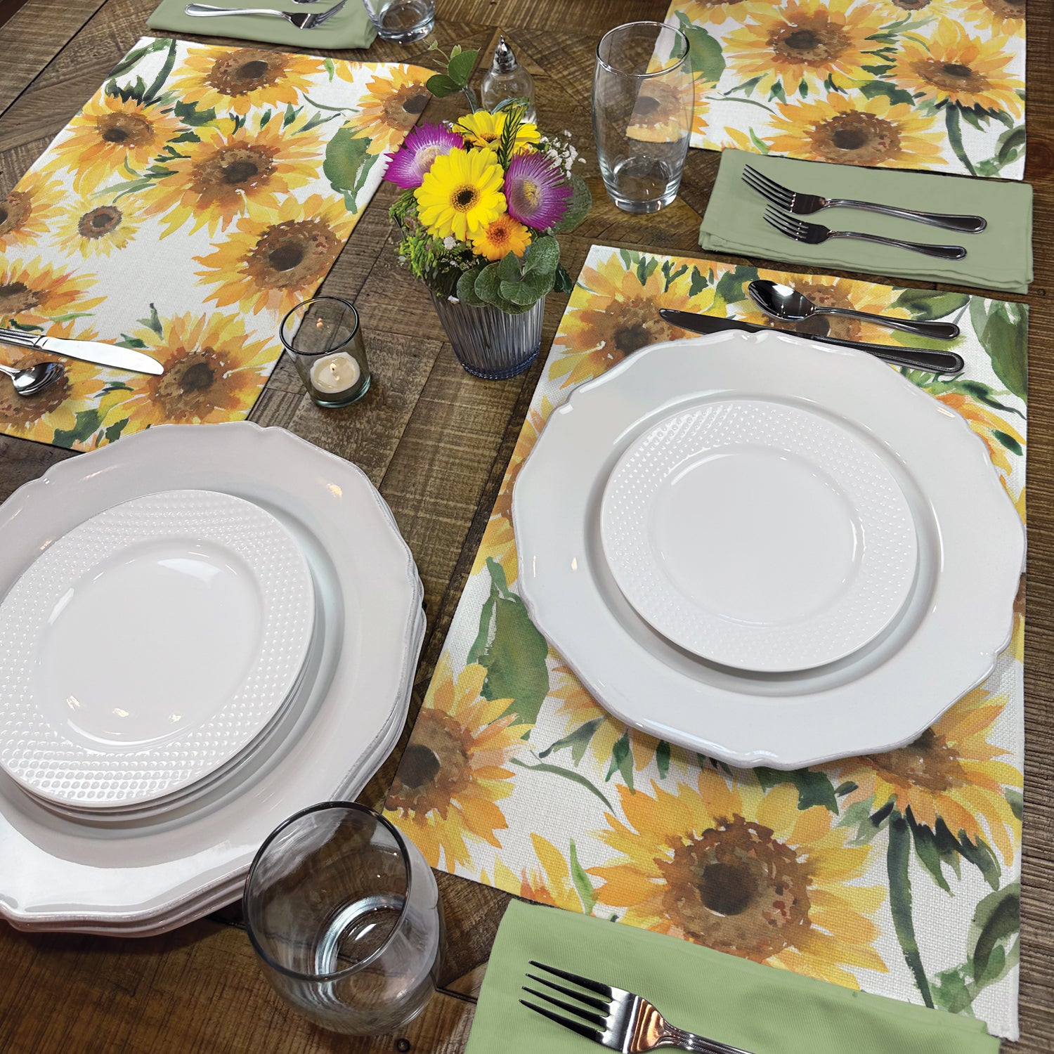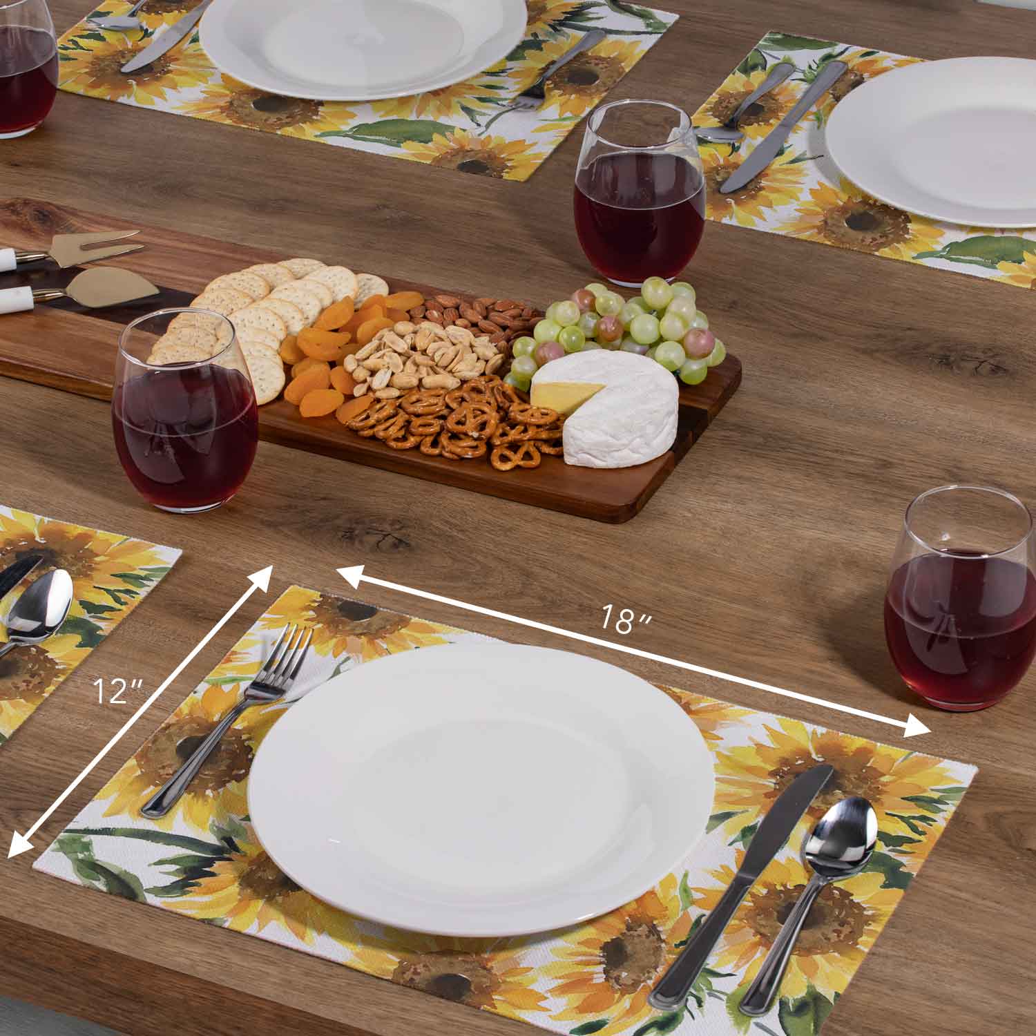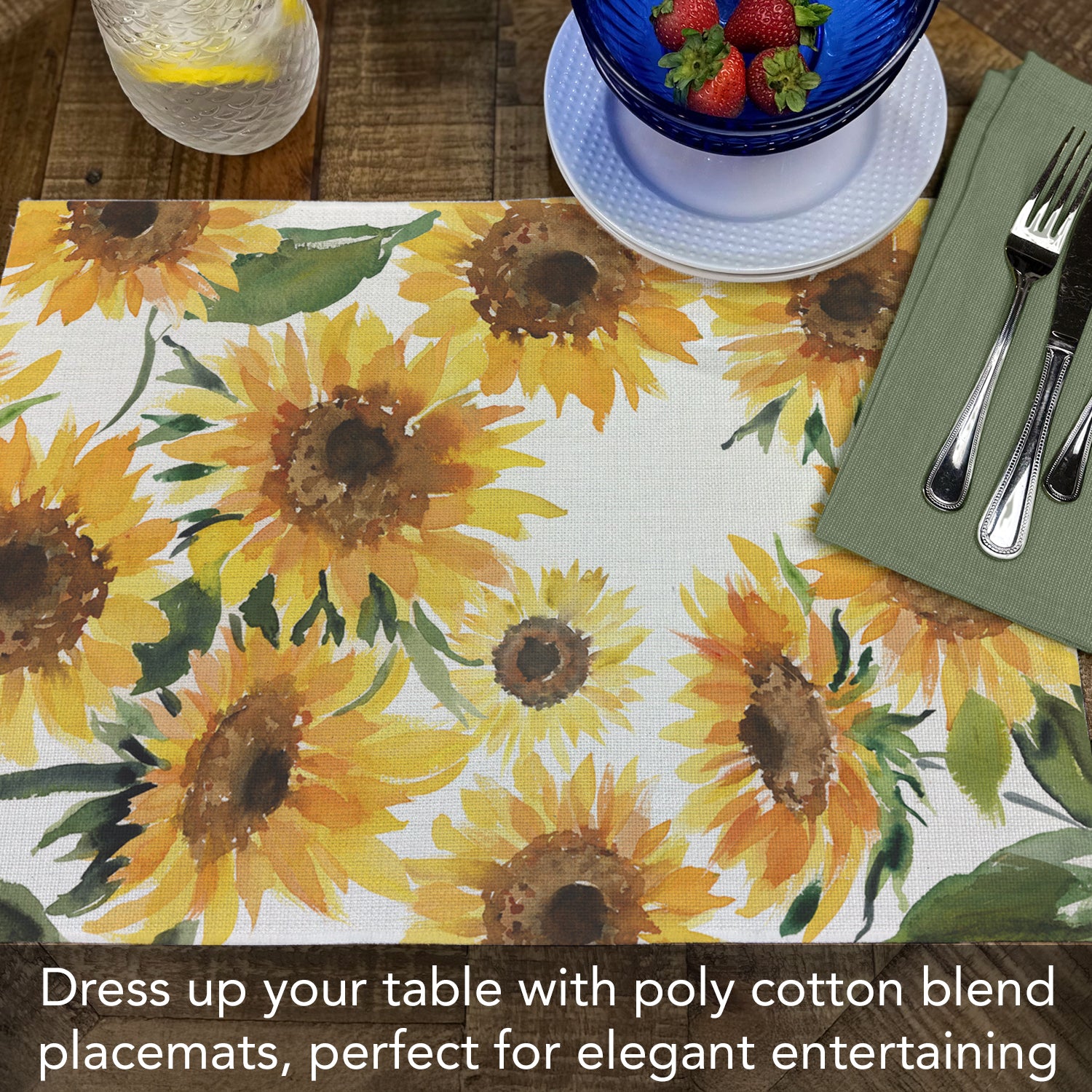 Highland Home Sunflowers 4 Pack Poly-Cotton Blend Fabric Placemats 18" x 12" Manufactured in The USA