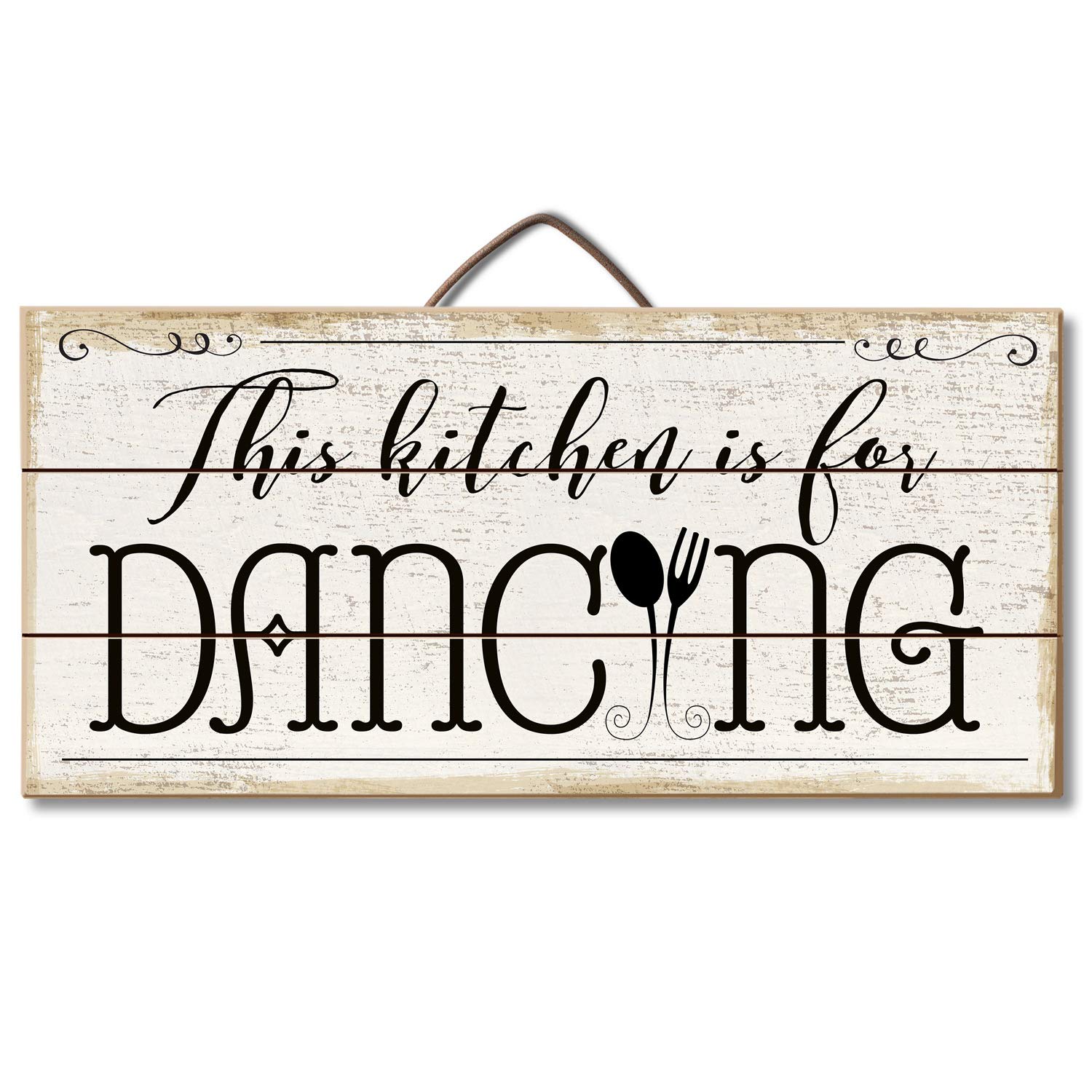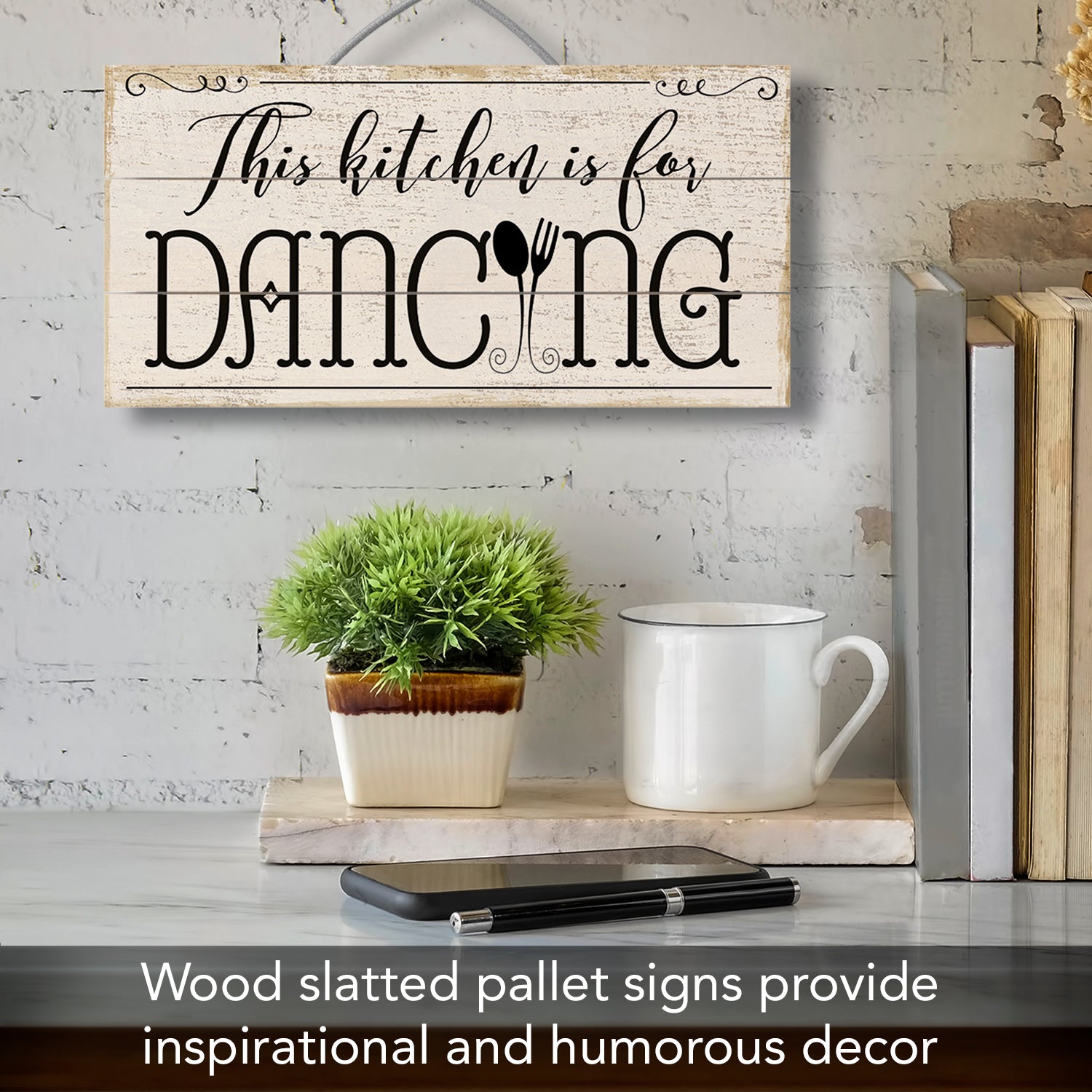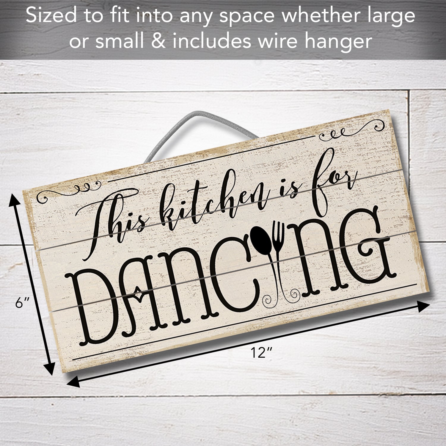 Kitchen Is For Dancing Decorative Pallet Wood Sign 12" x 6" Made in the USA Wire Hanger Doubles as an Easel