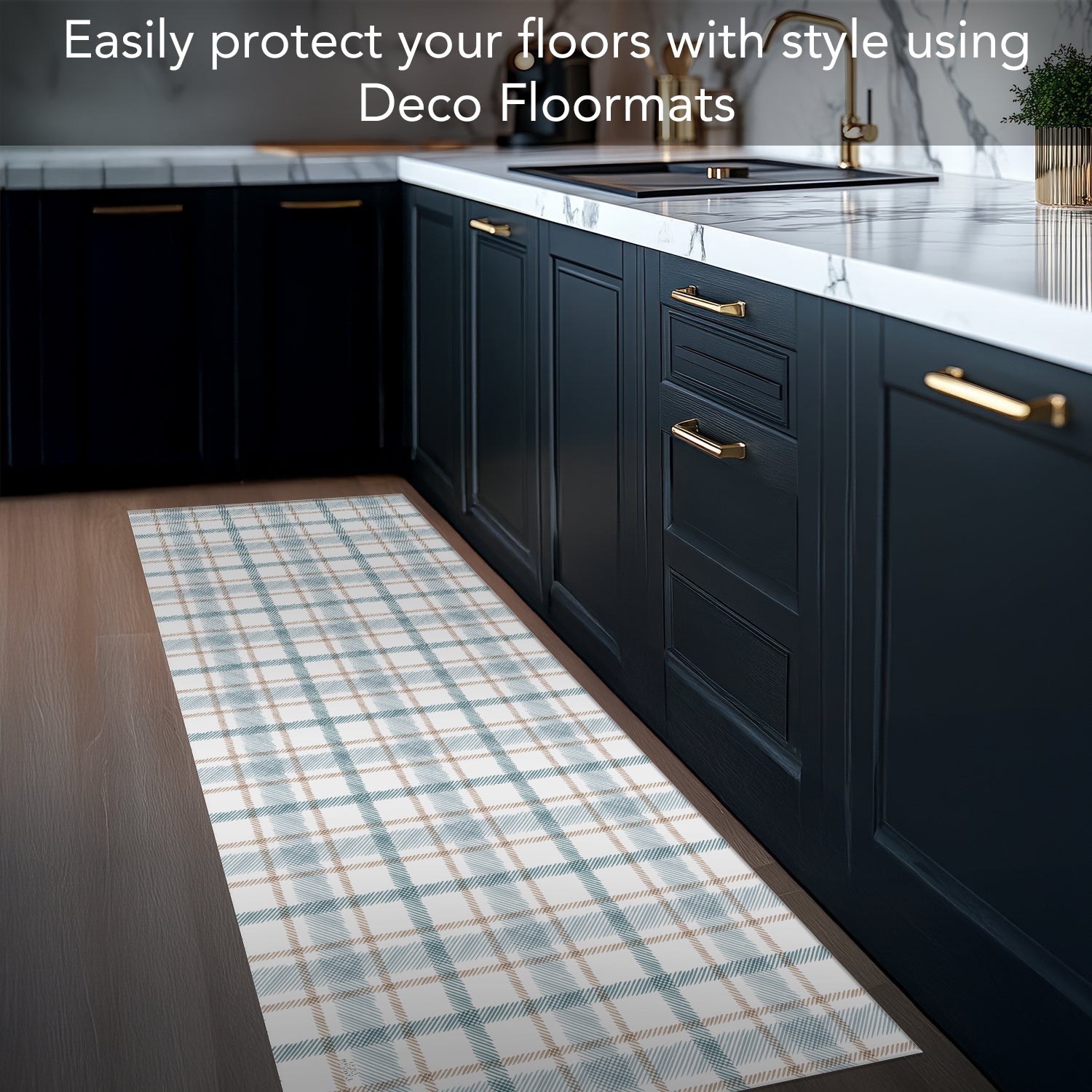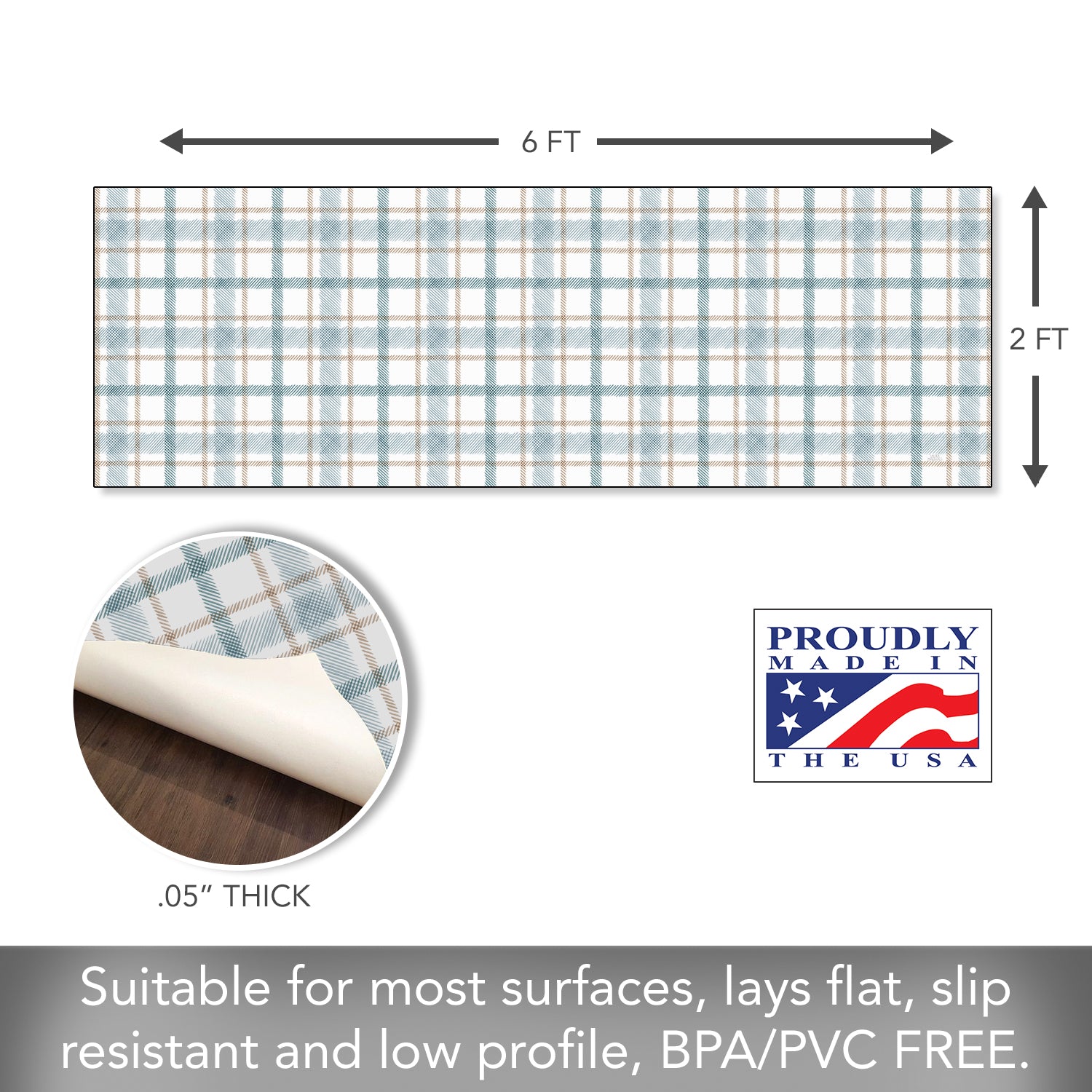 Highland Home Ticking Plaid Deco-Floormat, Decorative Mat, Kitchen Rug, Splat Mat, Chair Mat Made in the USA