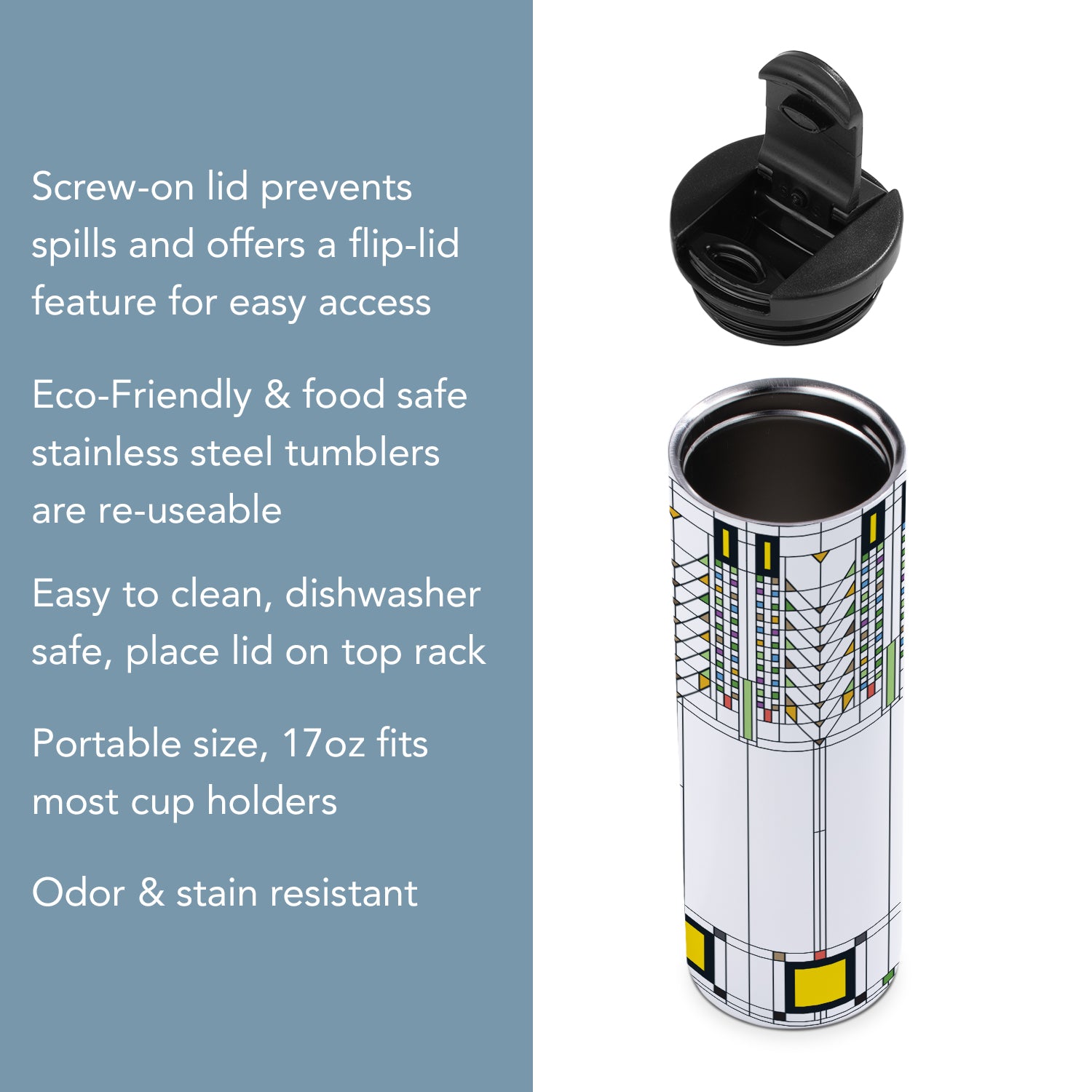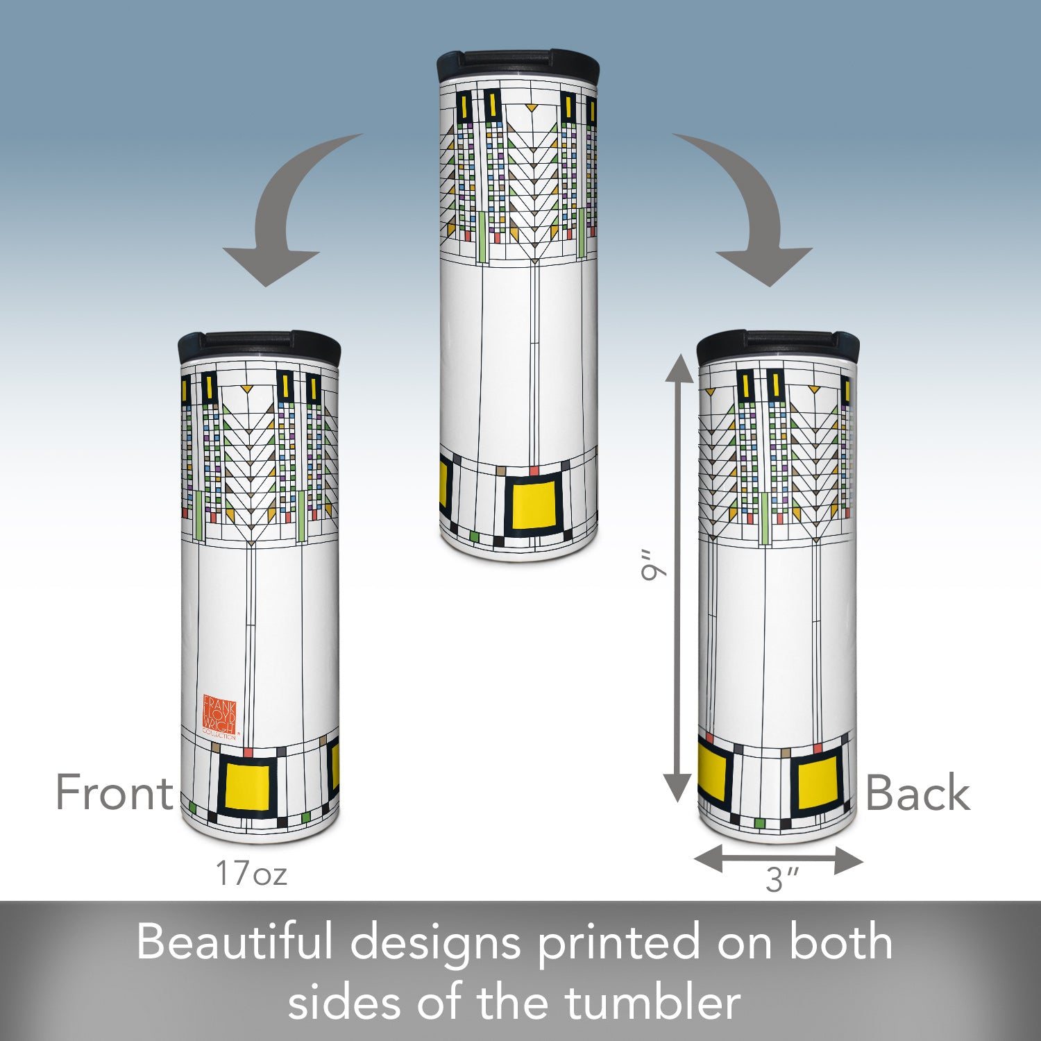 Frank Lloyd Wright's Tree of Life Design on 17 Ounce Insulated Stainless Steel Tumbler Manufactured in the USA