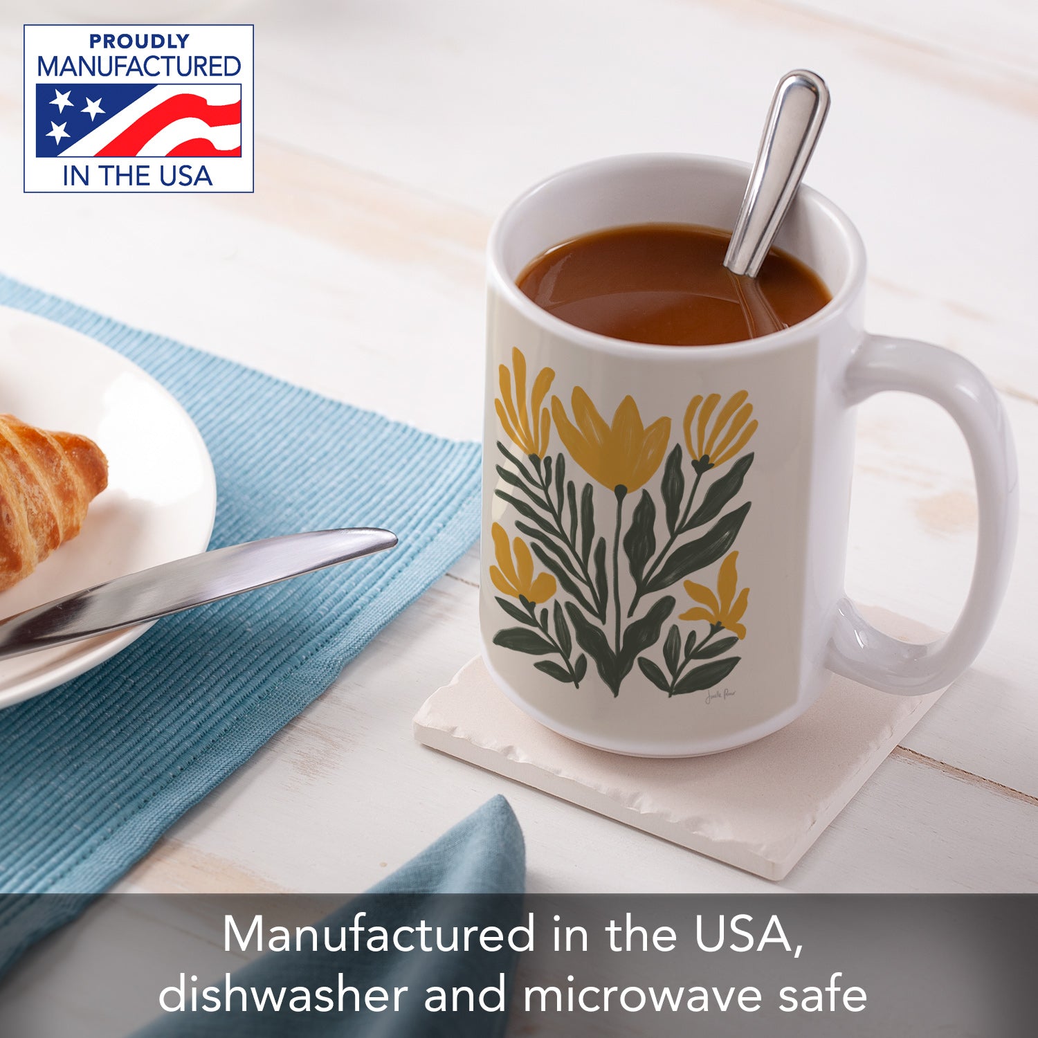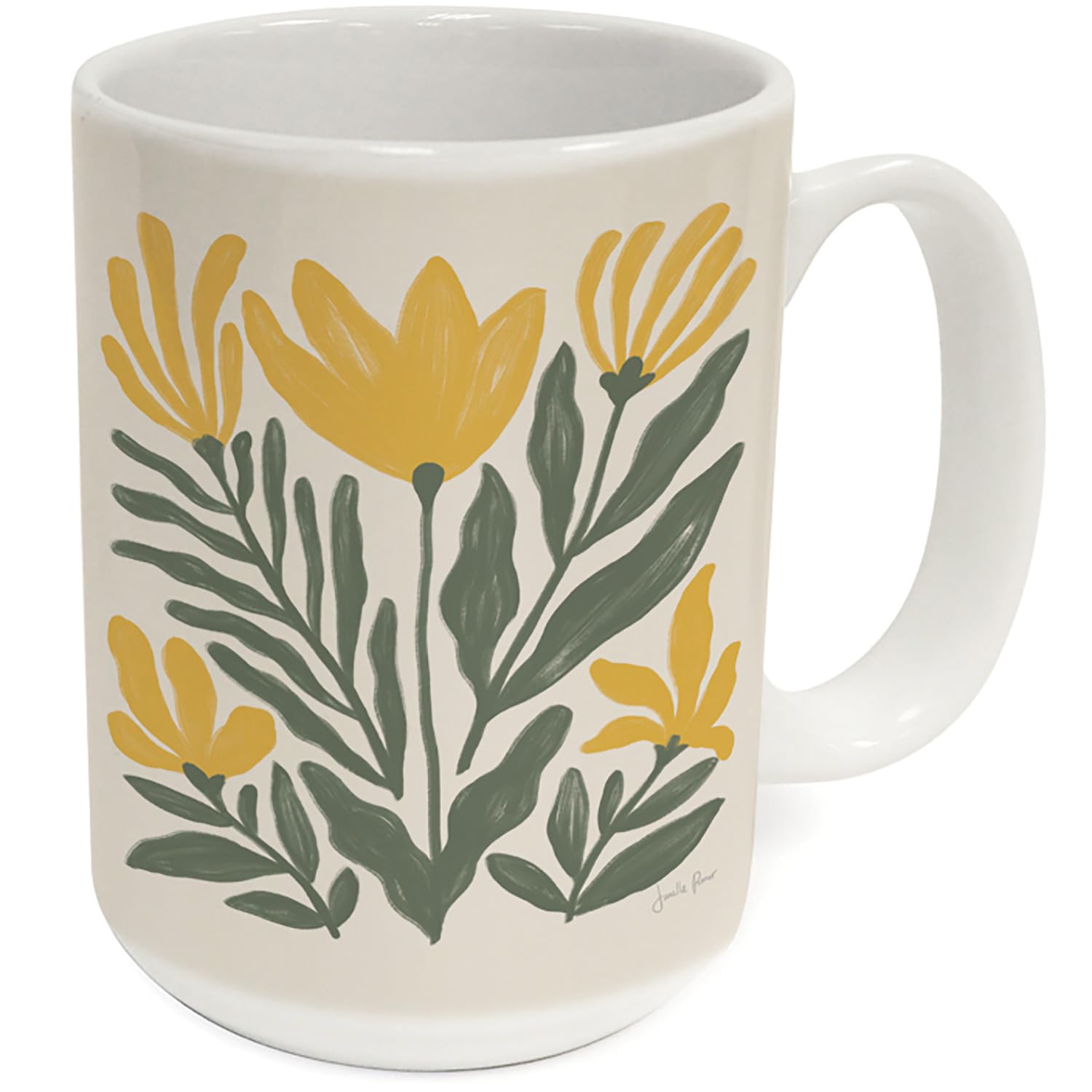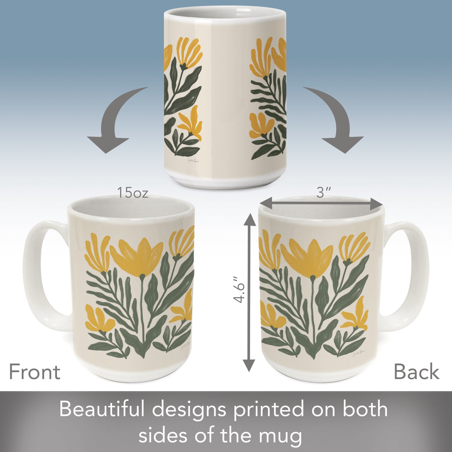 Highland Home Yellow Petals 15 oz. Ceramic Mug Manufactured in the USA