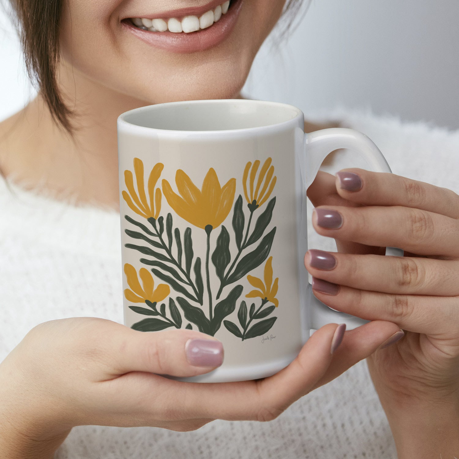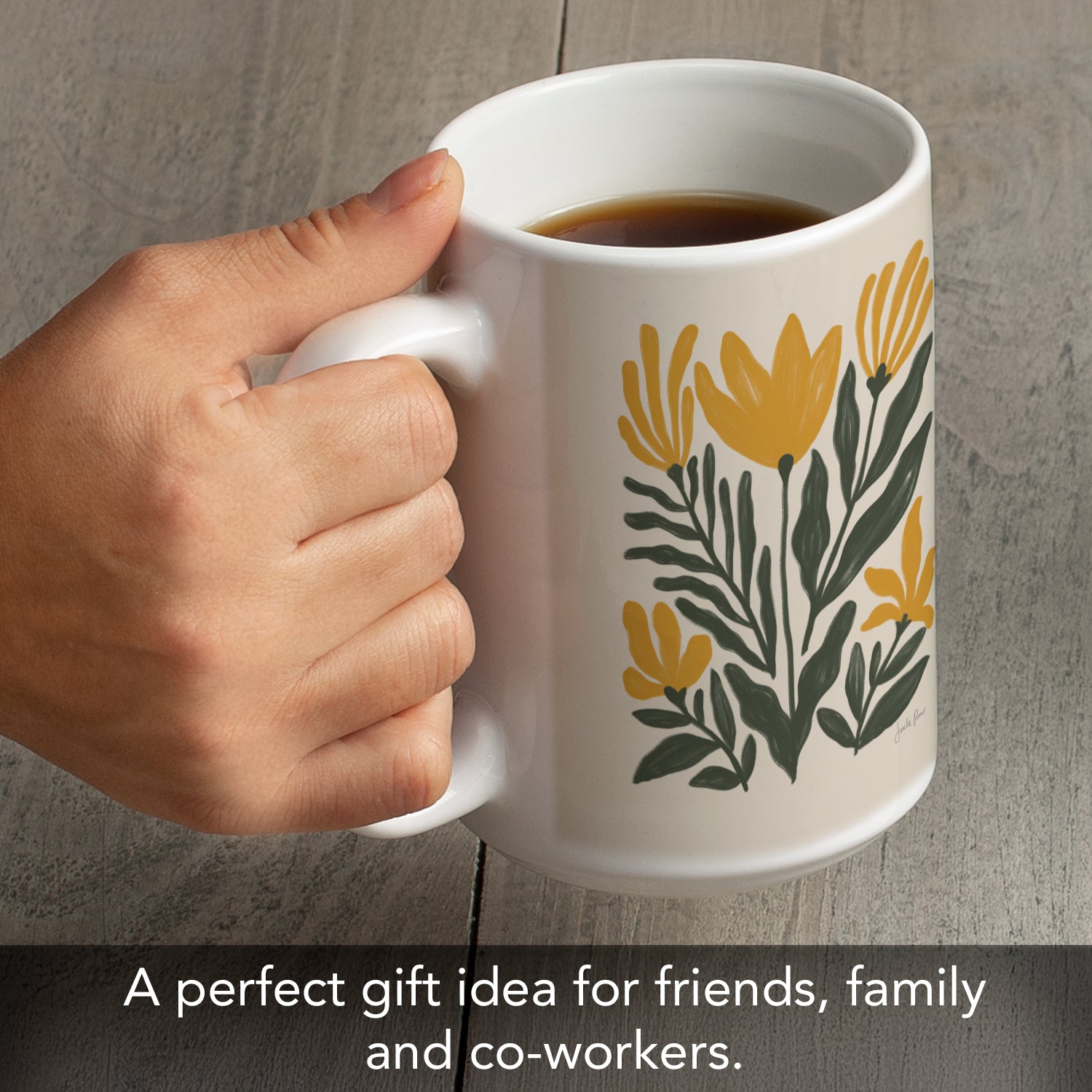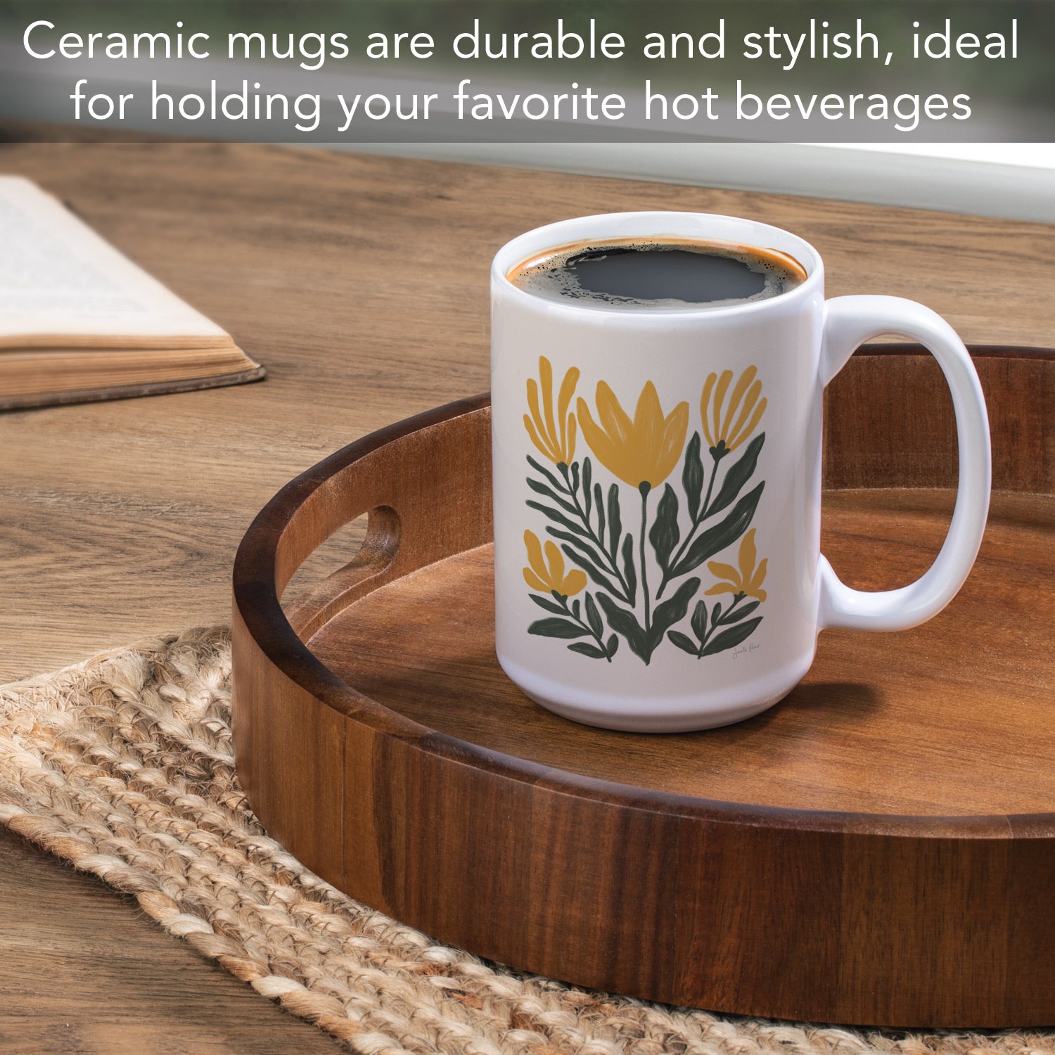 Highland Home Yellow Petals 15 oz. Ceramic Mug Manufactured in the USA