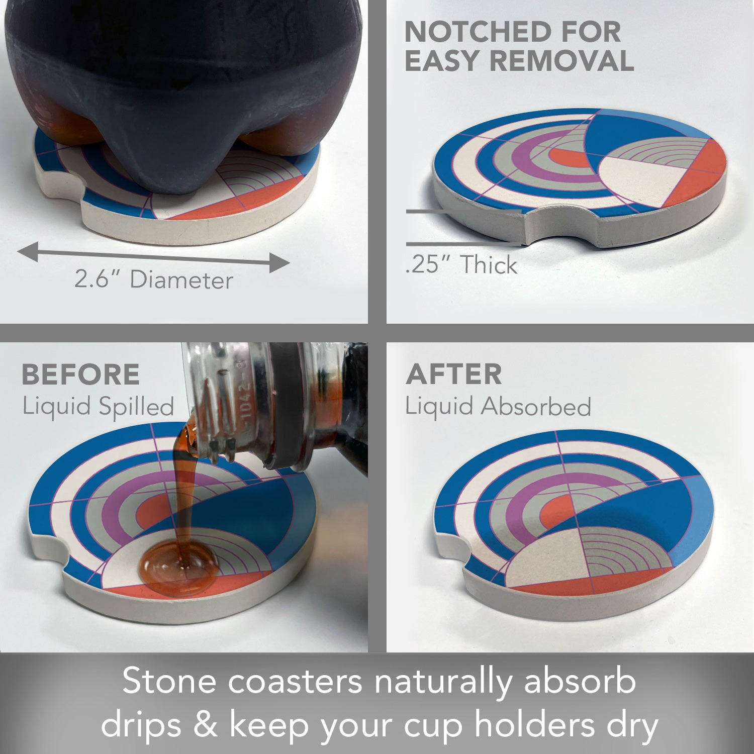 ABSORBENT STONE-Car Coaster is constructed of natural absorbent stone that absorbs drips and condensation from beverages in your vehicle’s cup holder.