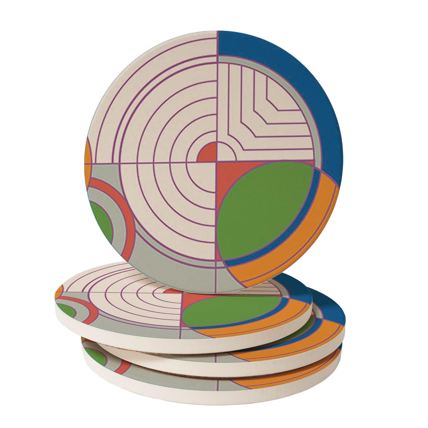 Hoffman Rug Design III by Frank Lloyd Wright 4 Pack Round Absorbent Stone Coasters with Protective Cork Backing Manufactured in The USA