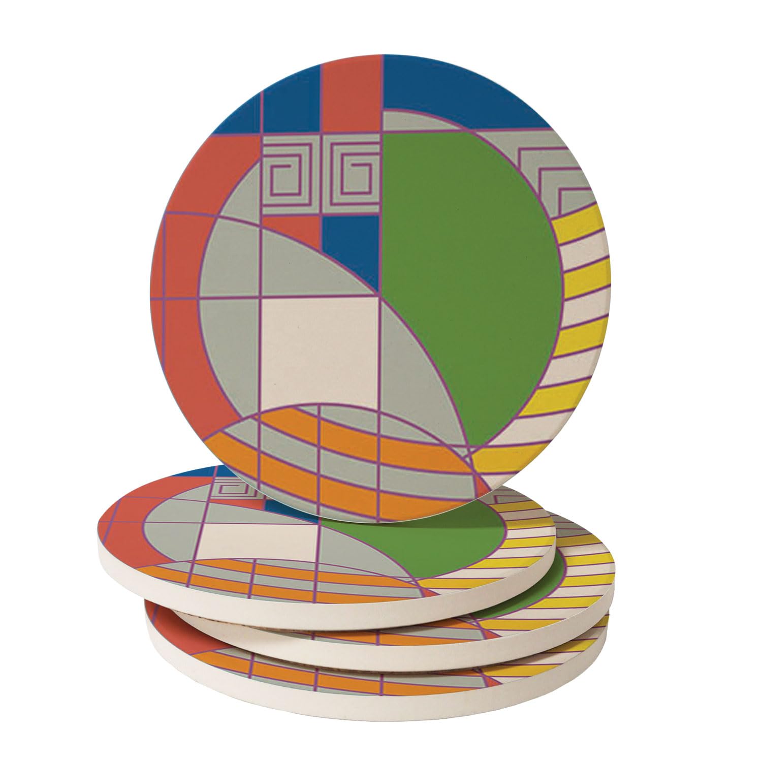 Hoffman Rug Design IV by Frank Lloyd Wright 4 Pack Round Absorbent Stone Coasters with Protective Cork Backing Manufactured in The USA