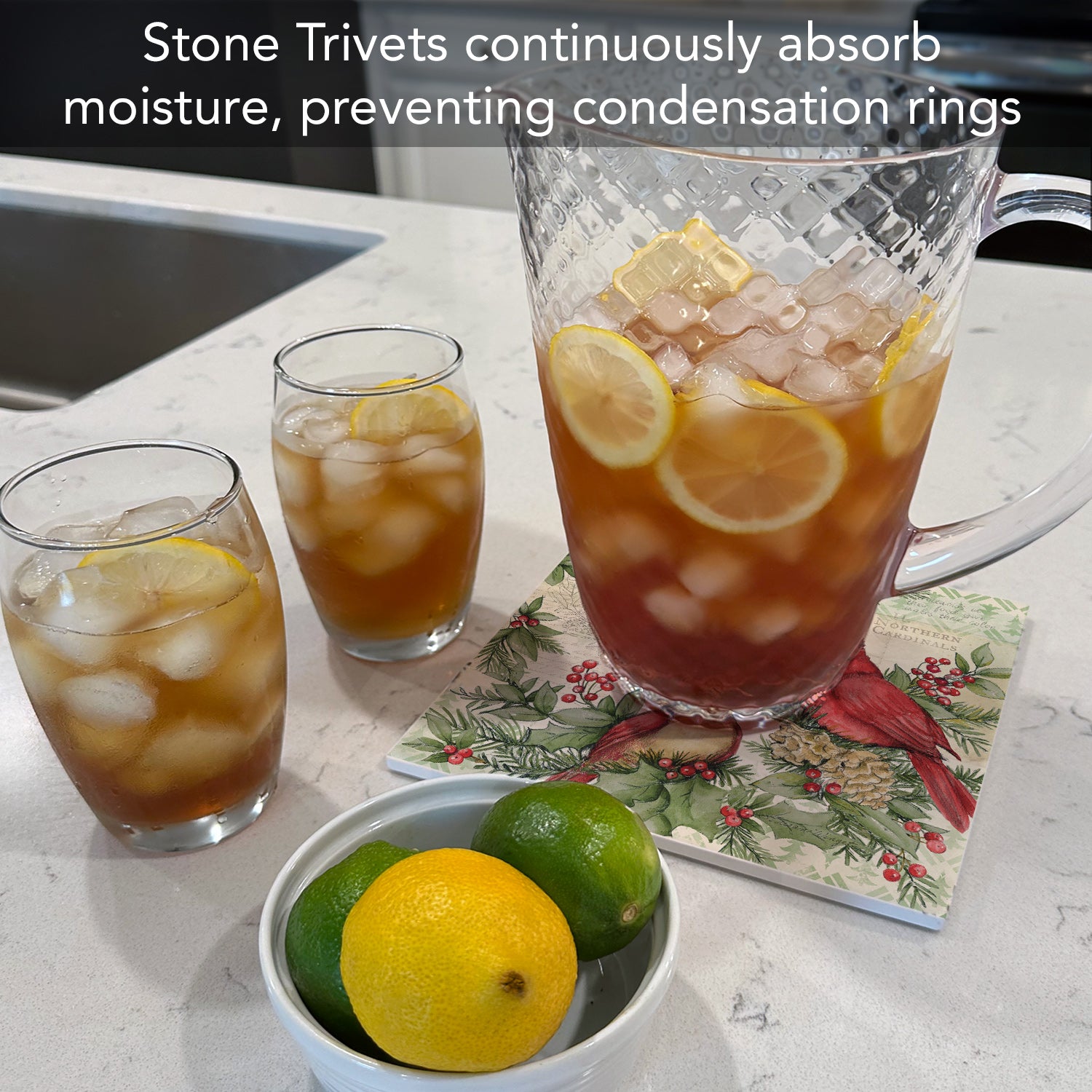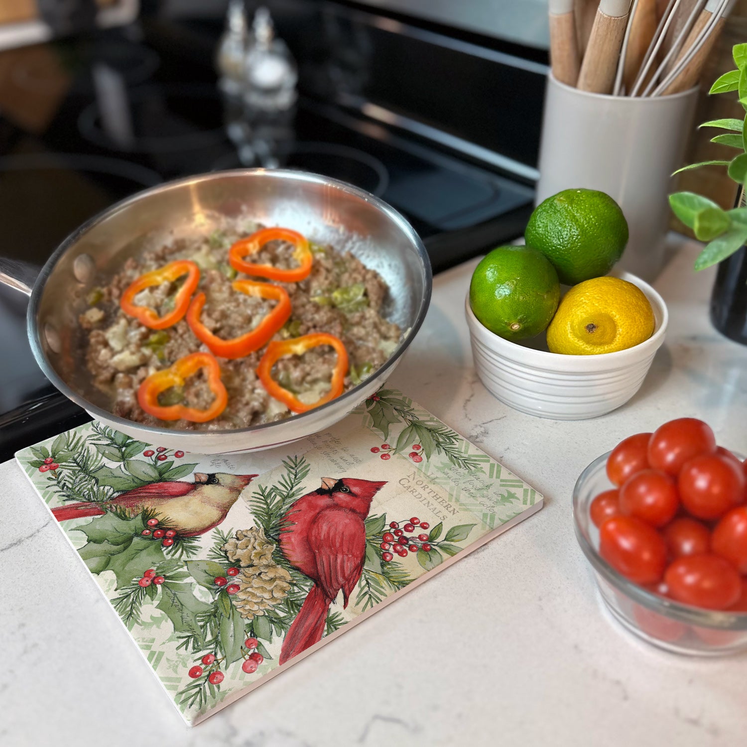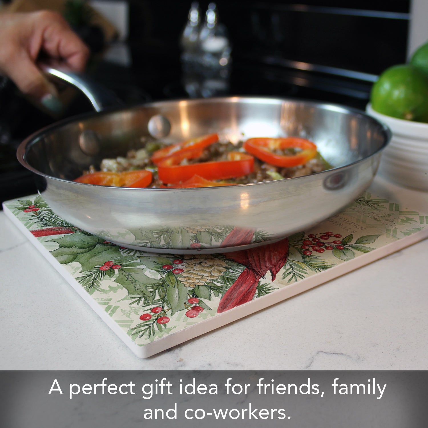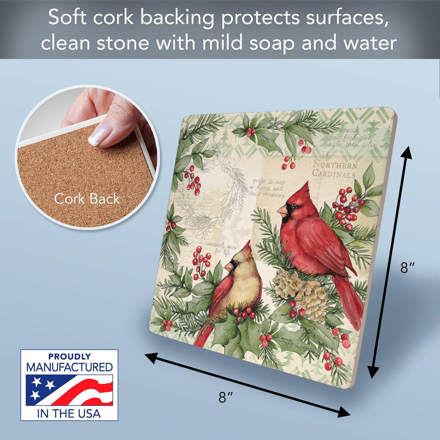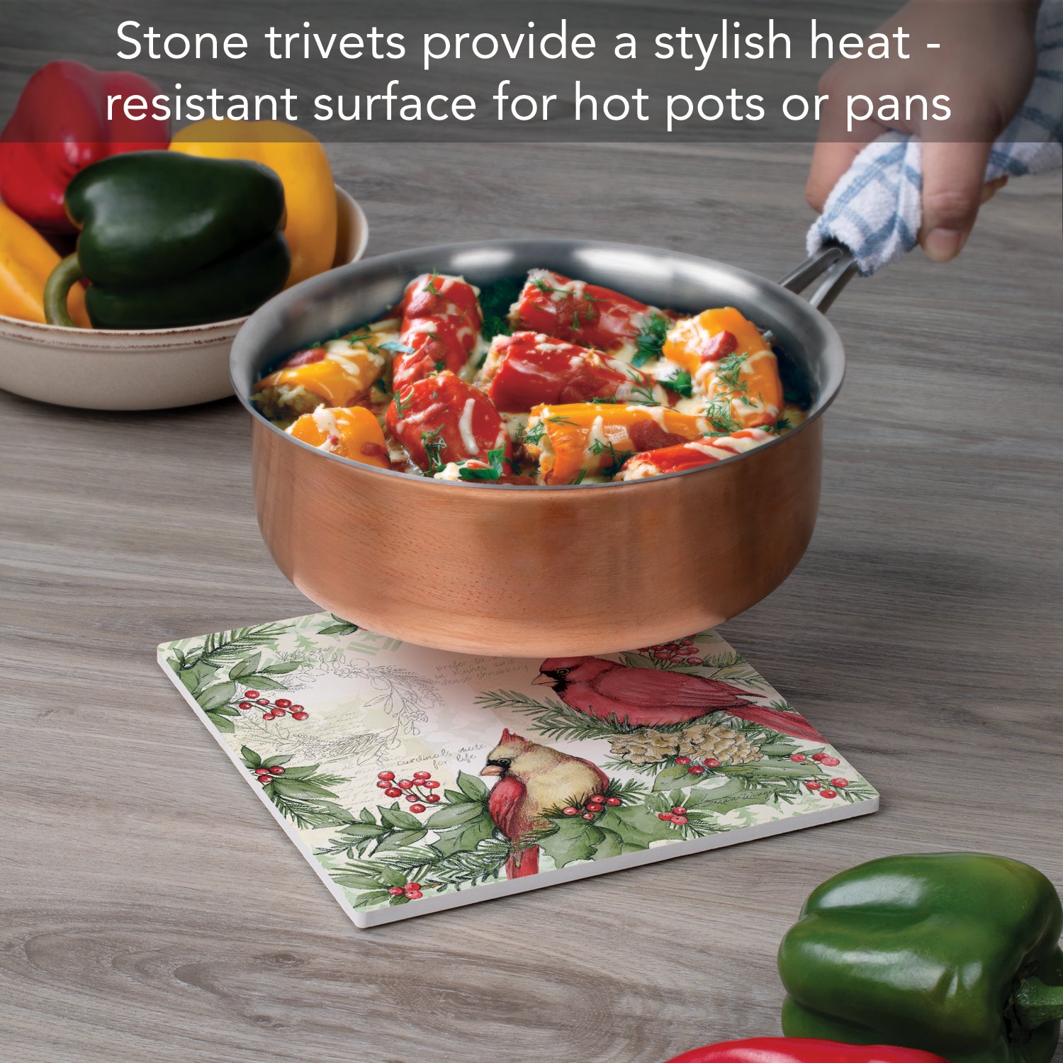 Thirstystone Holiday Cardinal Decorative Heat Tolerant Stone Trivet with Non-Skid Cork Backing 8”