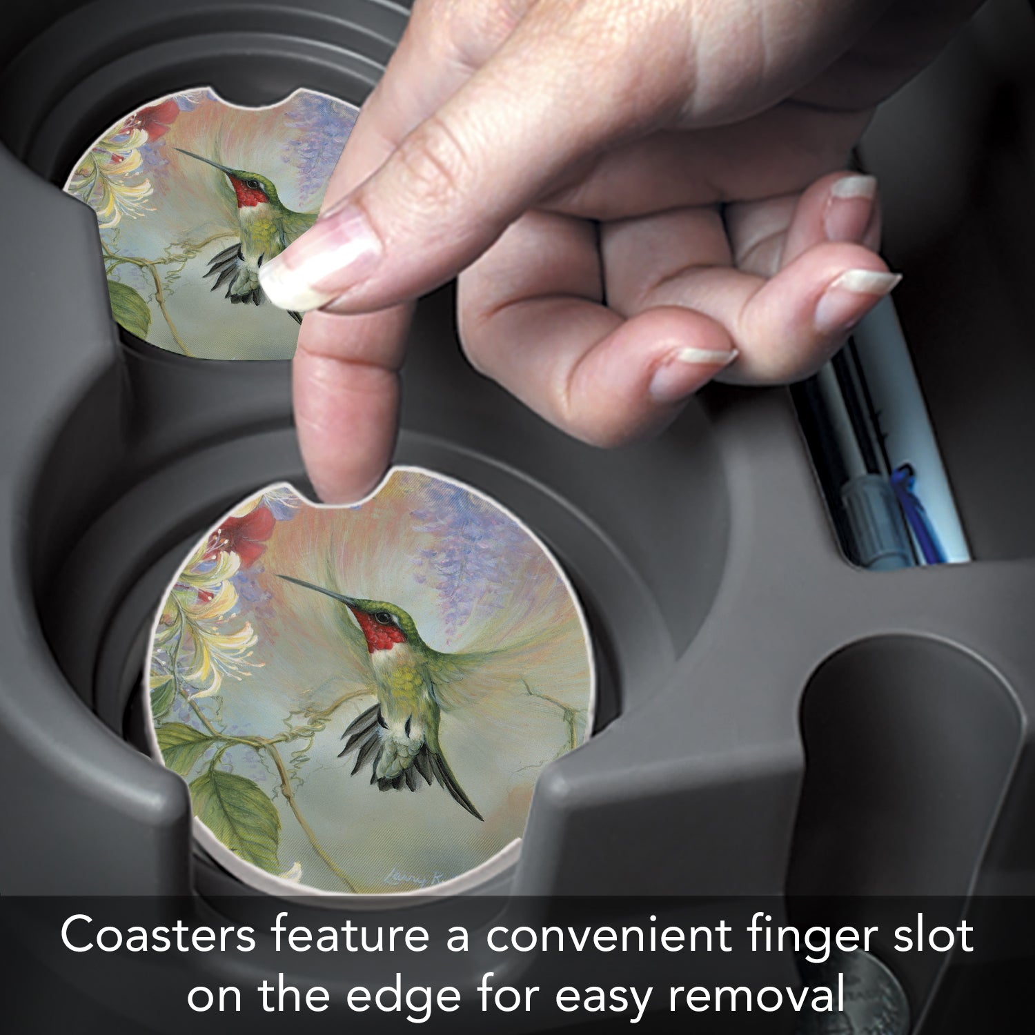 Hummingbird 2 Pack Absorbent Stone Car Coasters 2.6" Manufactured in the USA