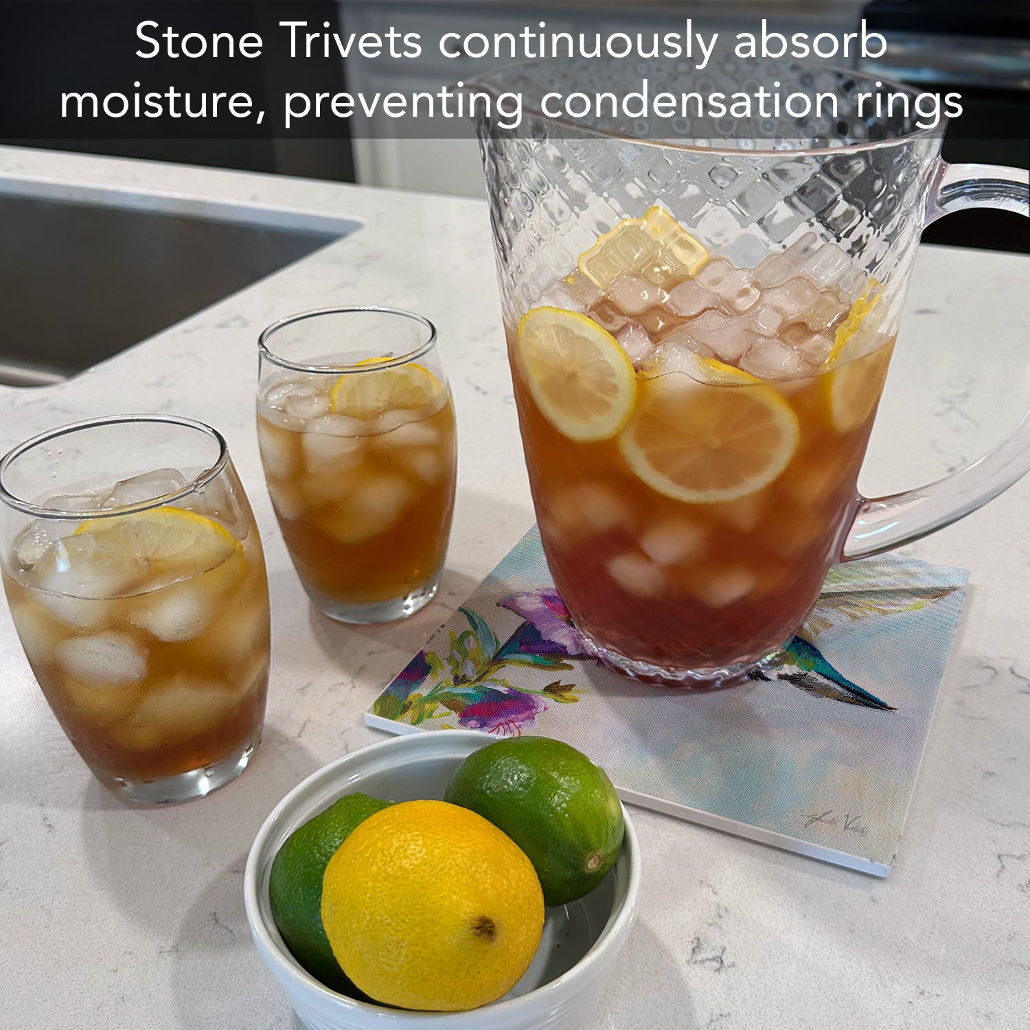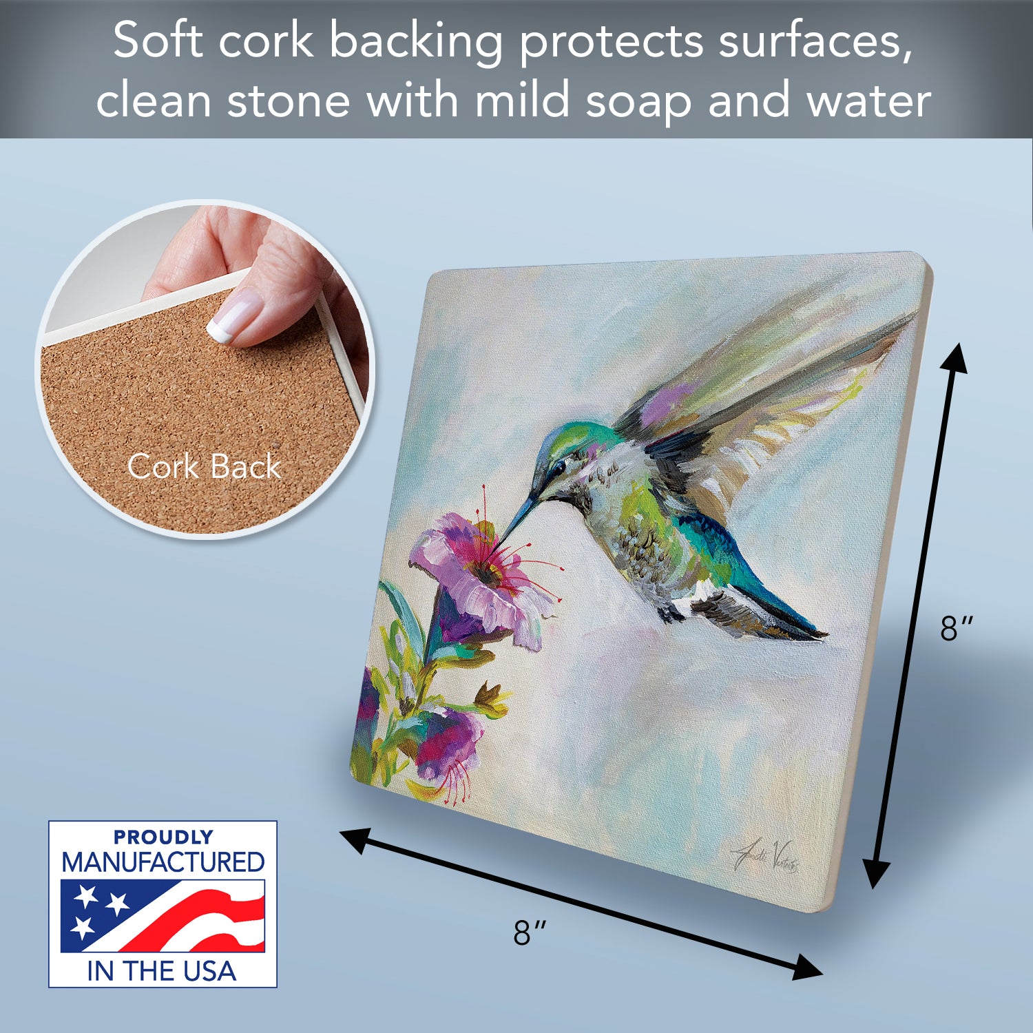 Thirstystone Hummingbird Delight Decorative Heat Tolerant Stone Trivet with Non-Skid Cork Backing 8” Square