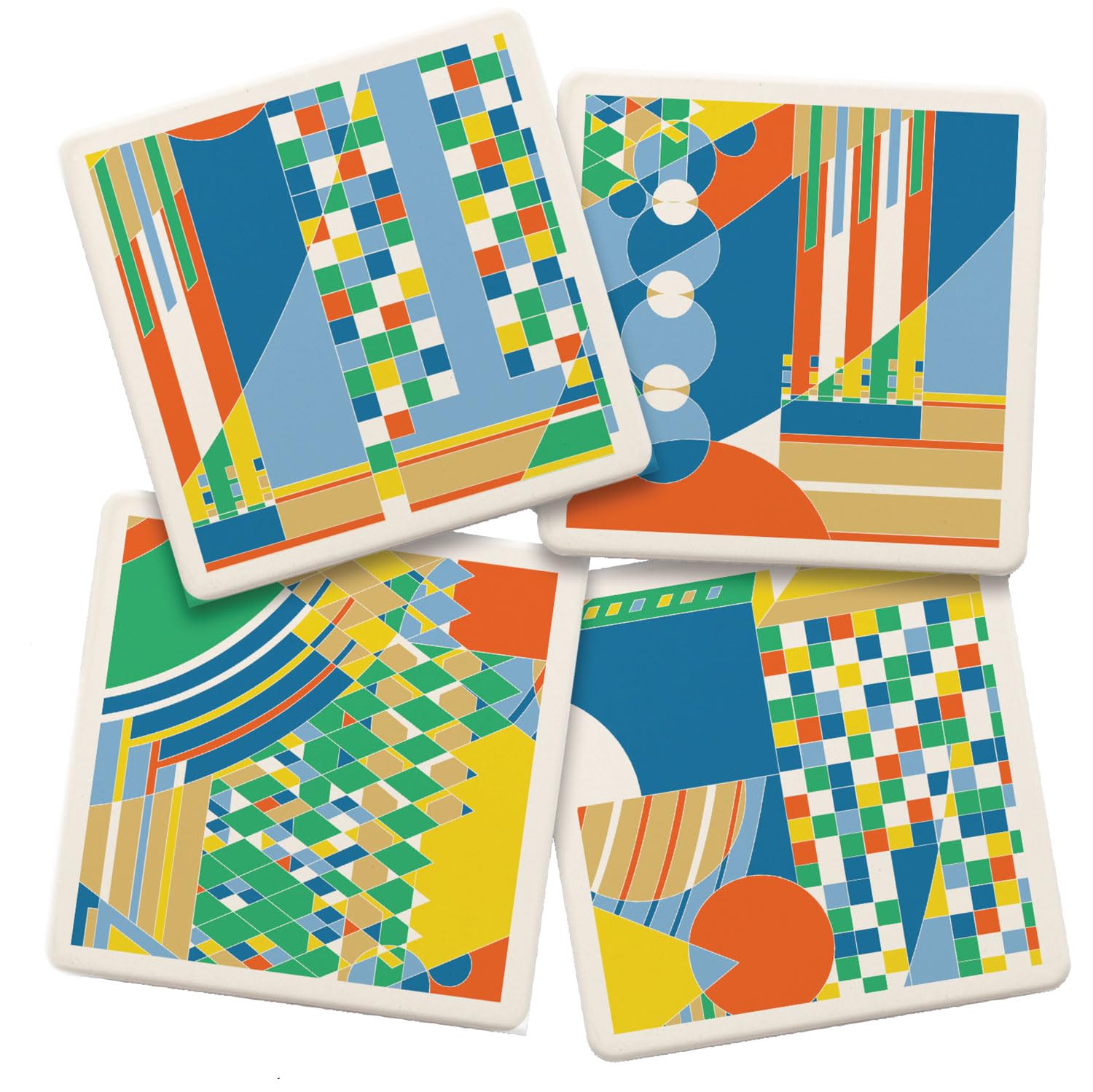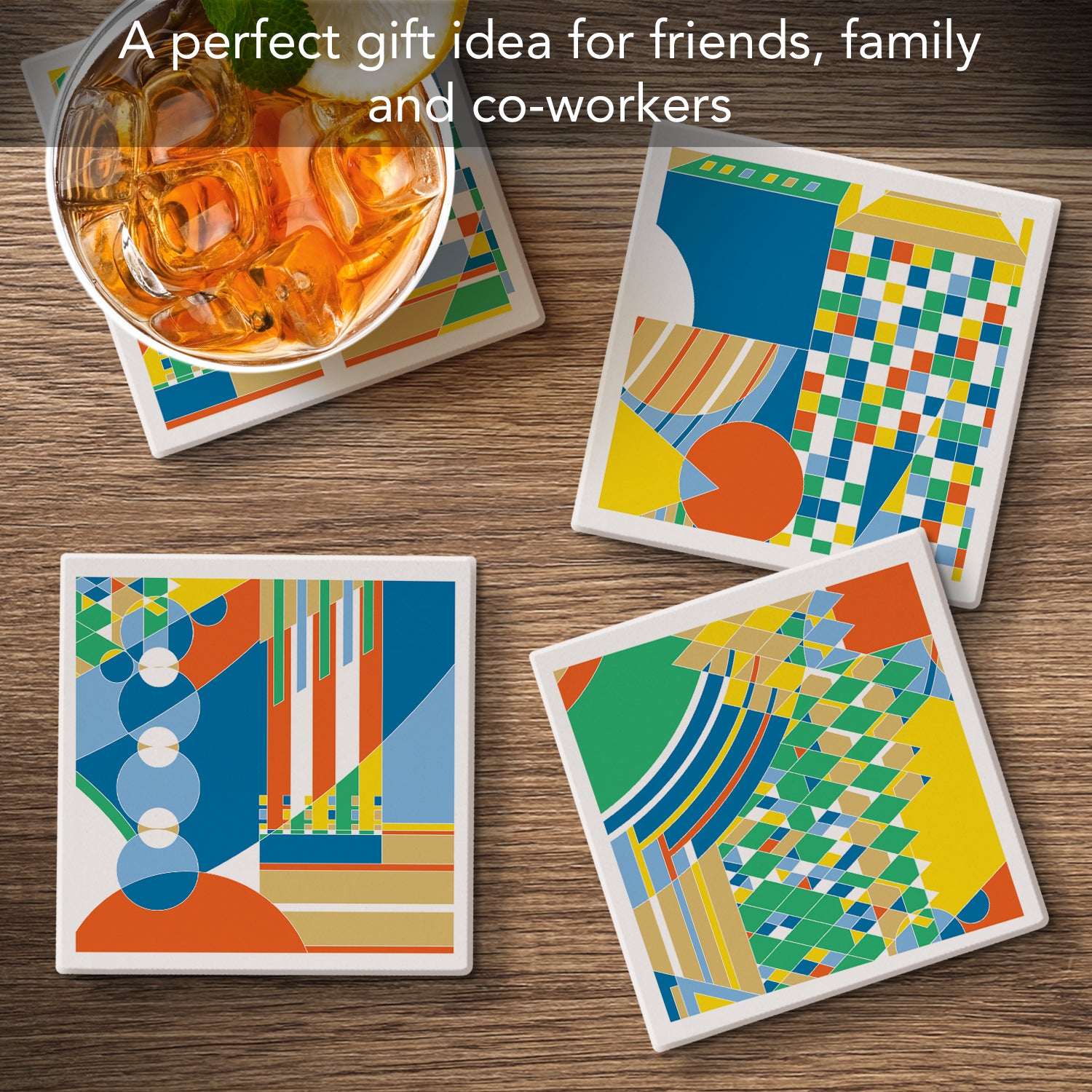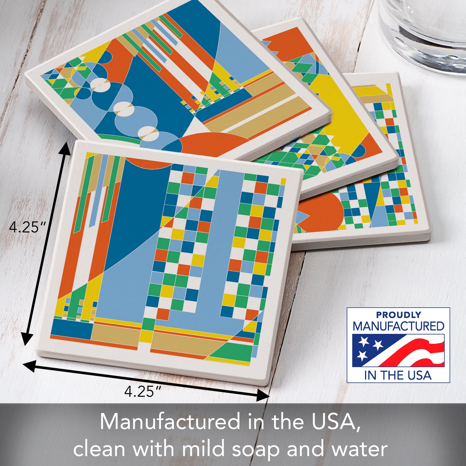 Frank Lloyd Wright's Imperial Mural 4 Pack Assorted Stone Coasters Manufactured in the USA