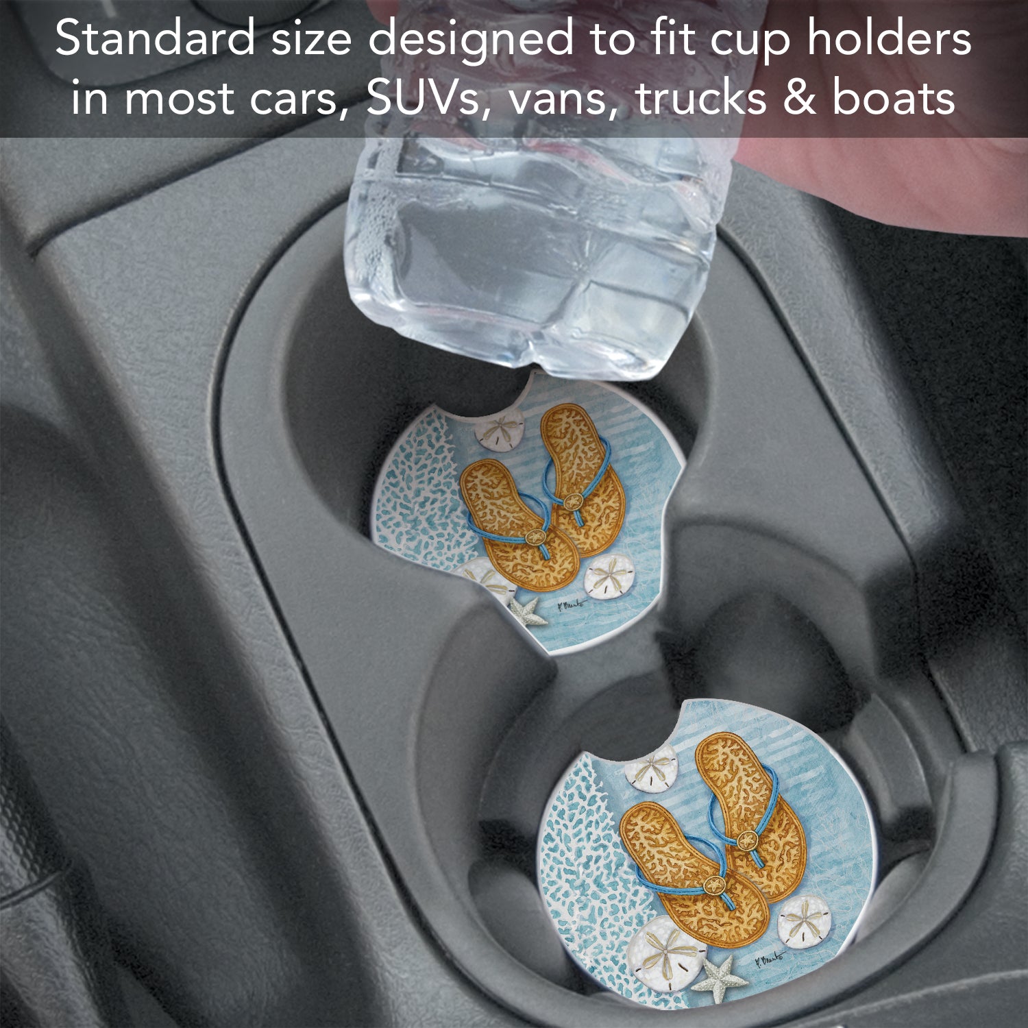 Key Largo Sandals 2 Pack Absorbent Stone Car Coasters 2.6" Manufactured in the USA