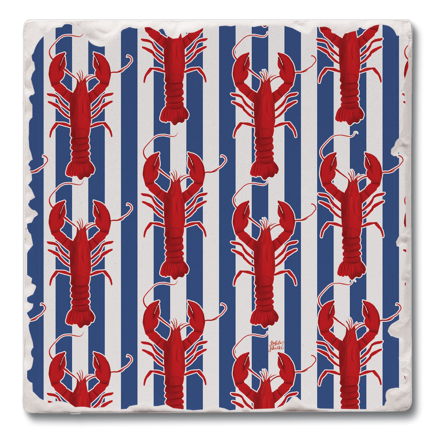 Lobster Stripe Single Tumbled Tile Coaster 4" Square Create Your Own Collection