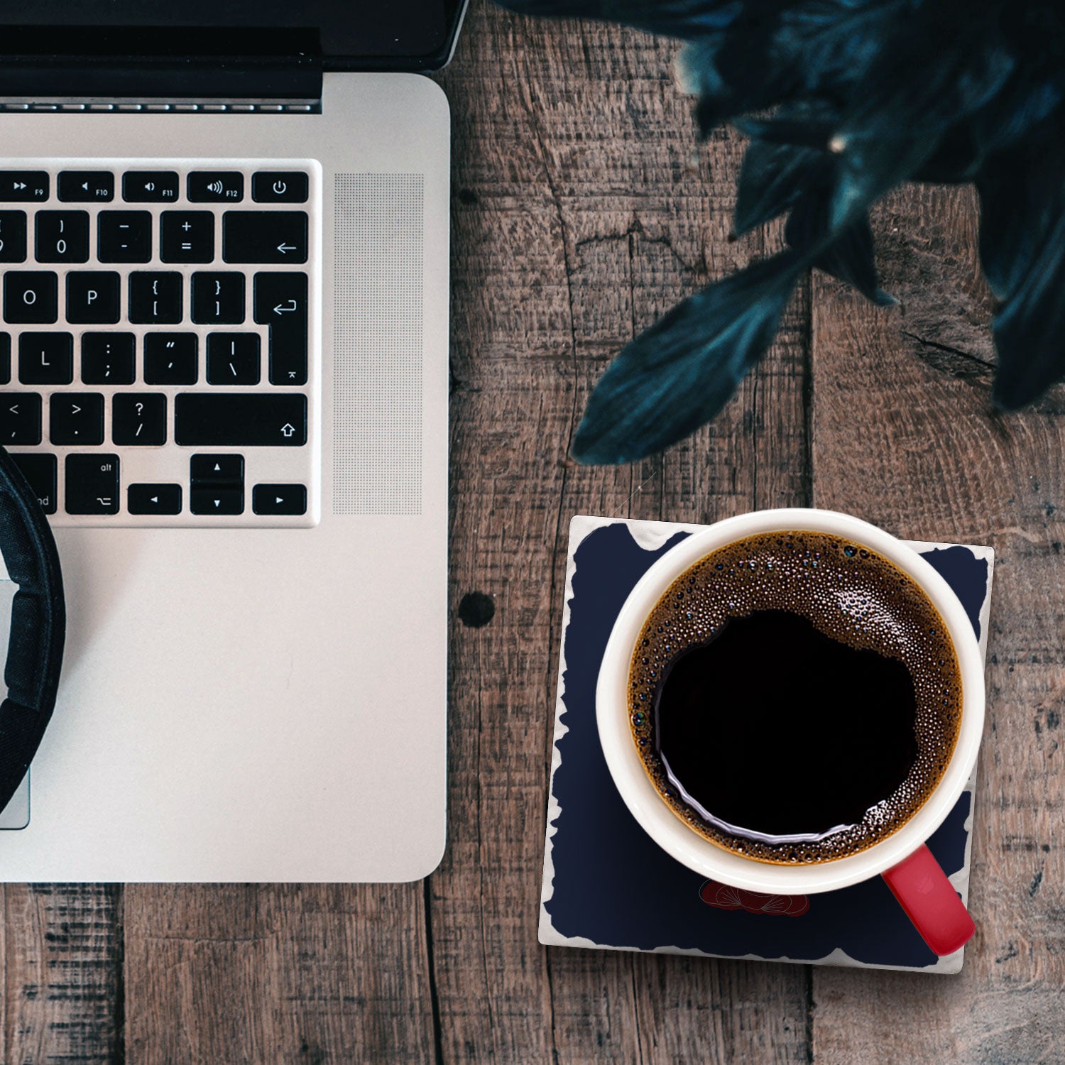 FUNCTIONAL ART-Beautiful artistic design allows the Coaster to remain displayed even when not in use. Each Coaster measures 4” x 4” x .25”. Sized to fit larger Mugs & Glasses.