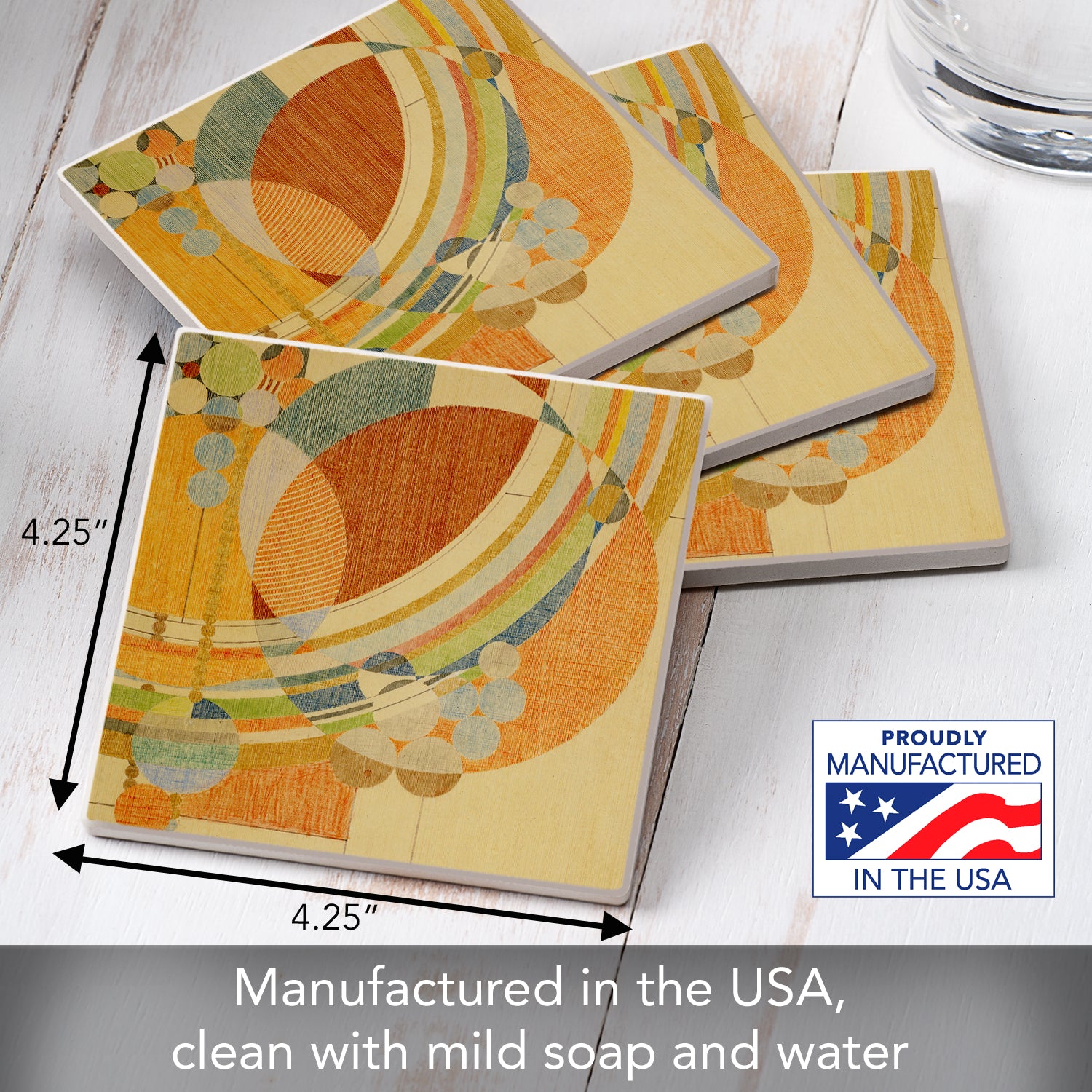 Frank Lloyd Wright 4 Pack March Balloons Absorbent Stone Coasters Manufactured in the USA