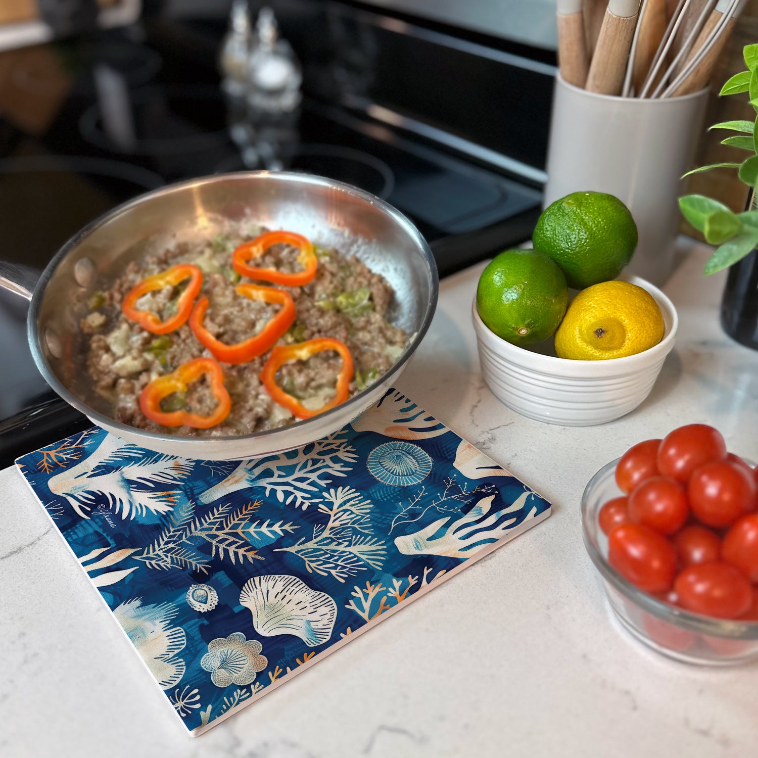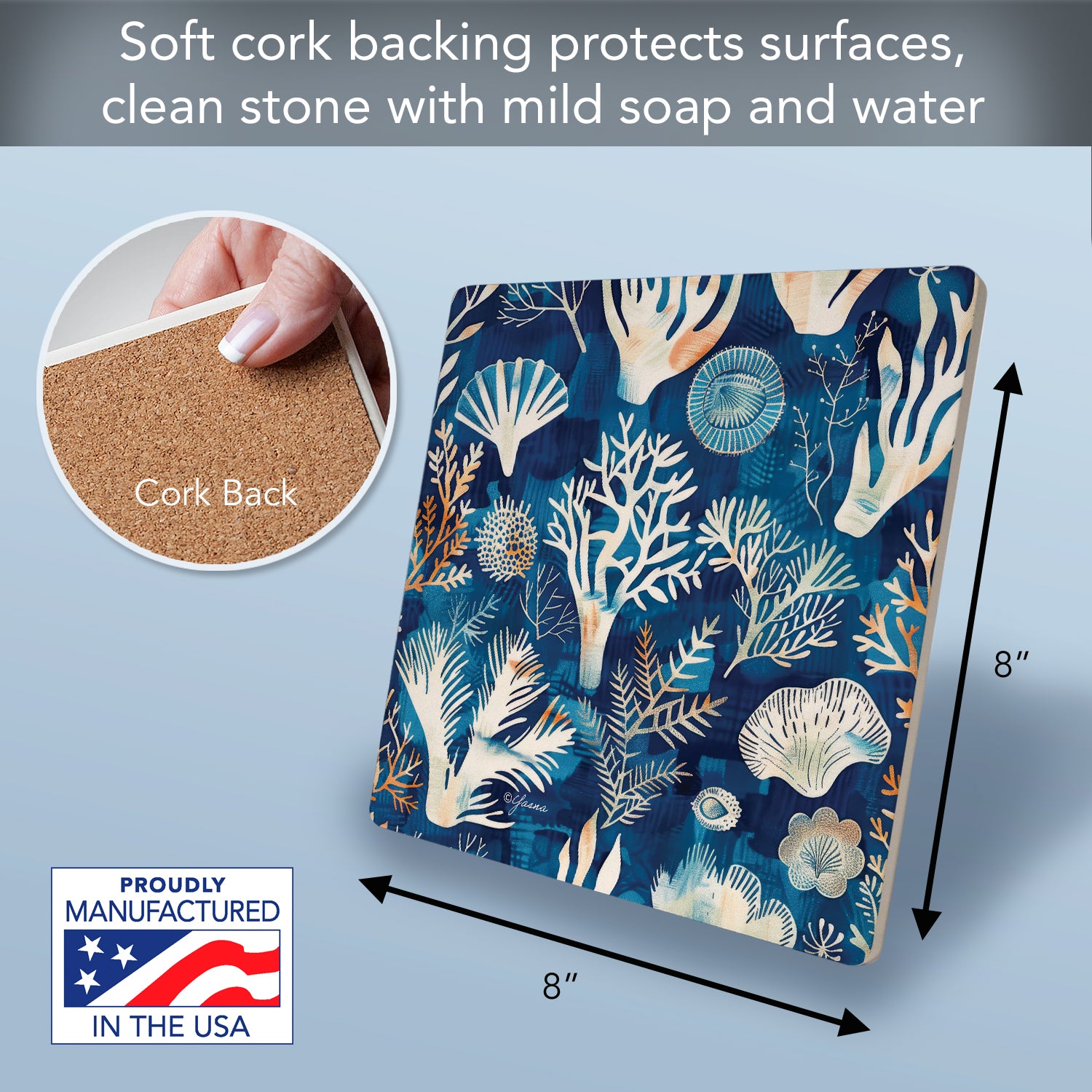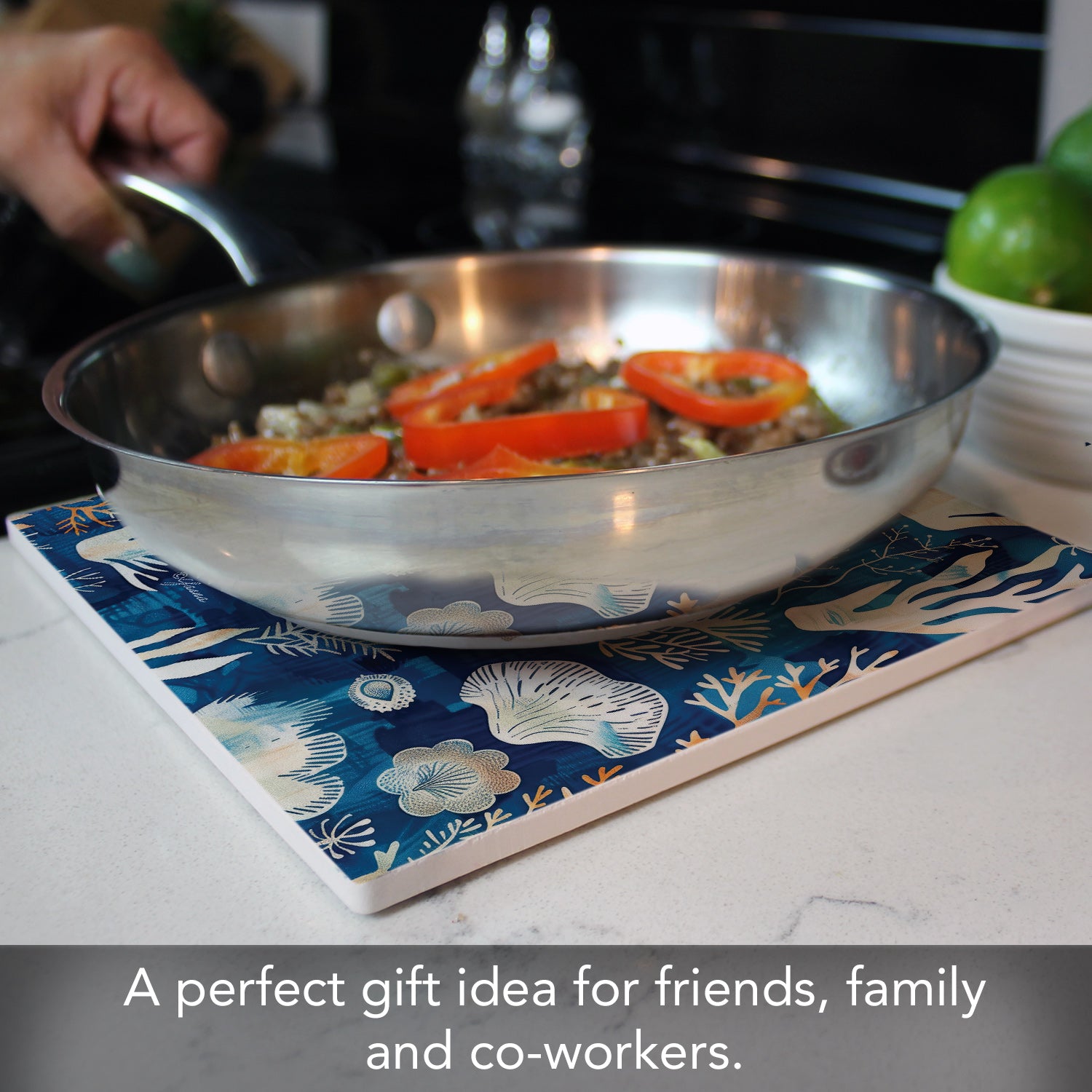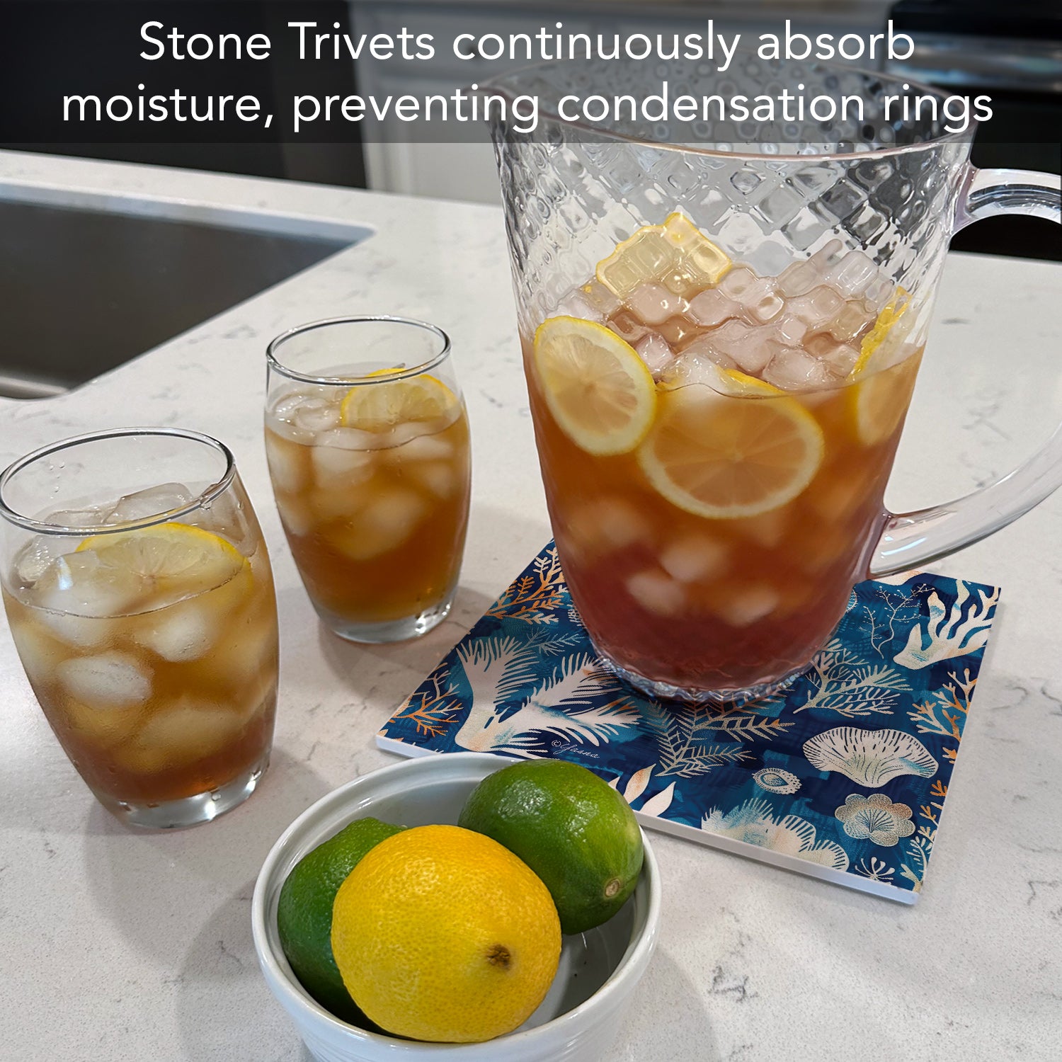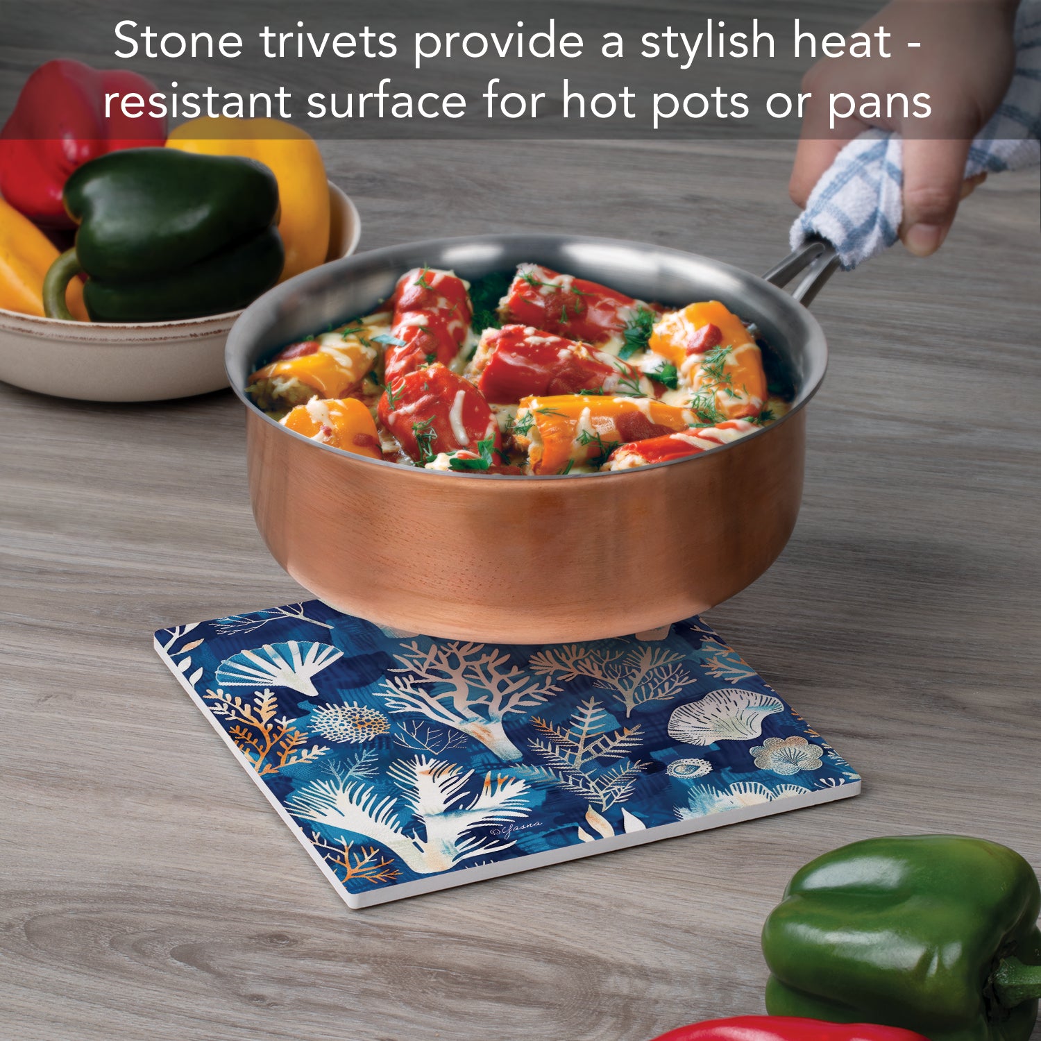Thirstystone Maritime Mosaic Decorative Heat Tolerant Stone Trivet with Non-Skid Cork Backing 8” Square