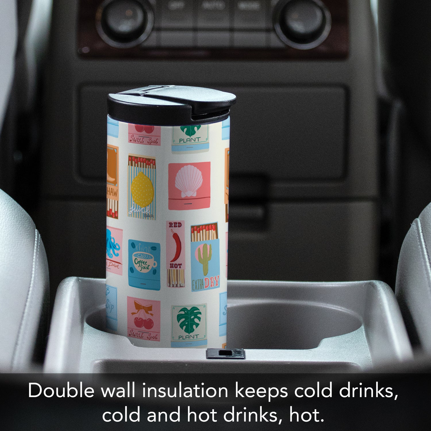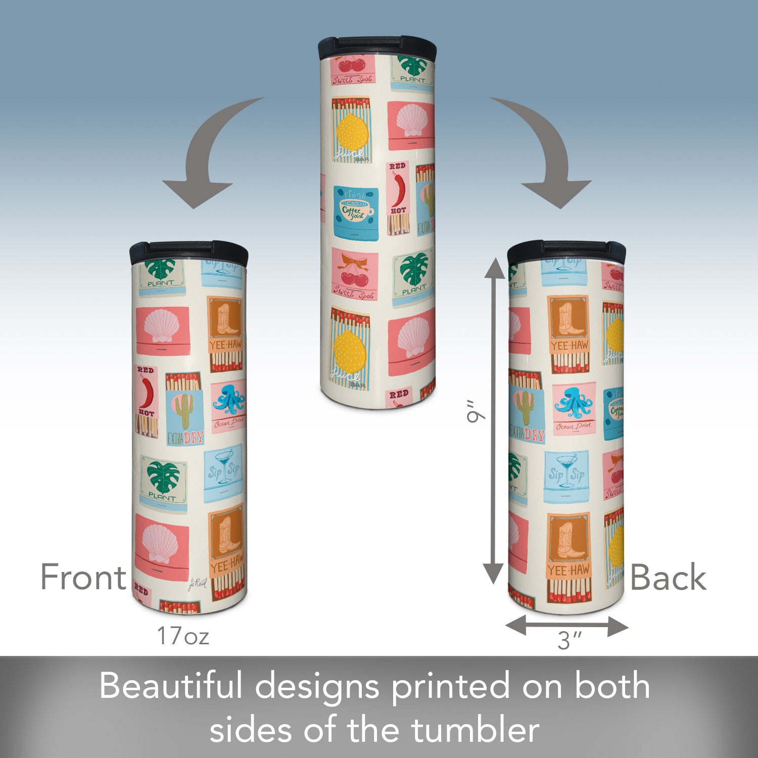 Match Books Decorative Stainless Steel Double Wall Insulated Travel Tumbler with Lid 17 oz.