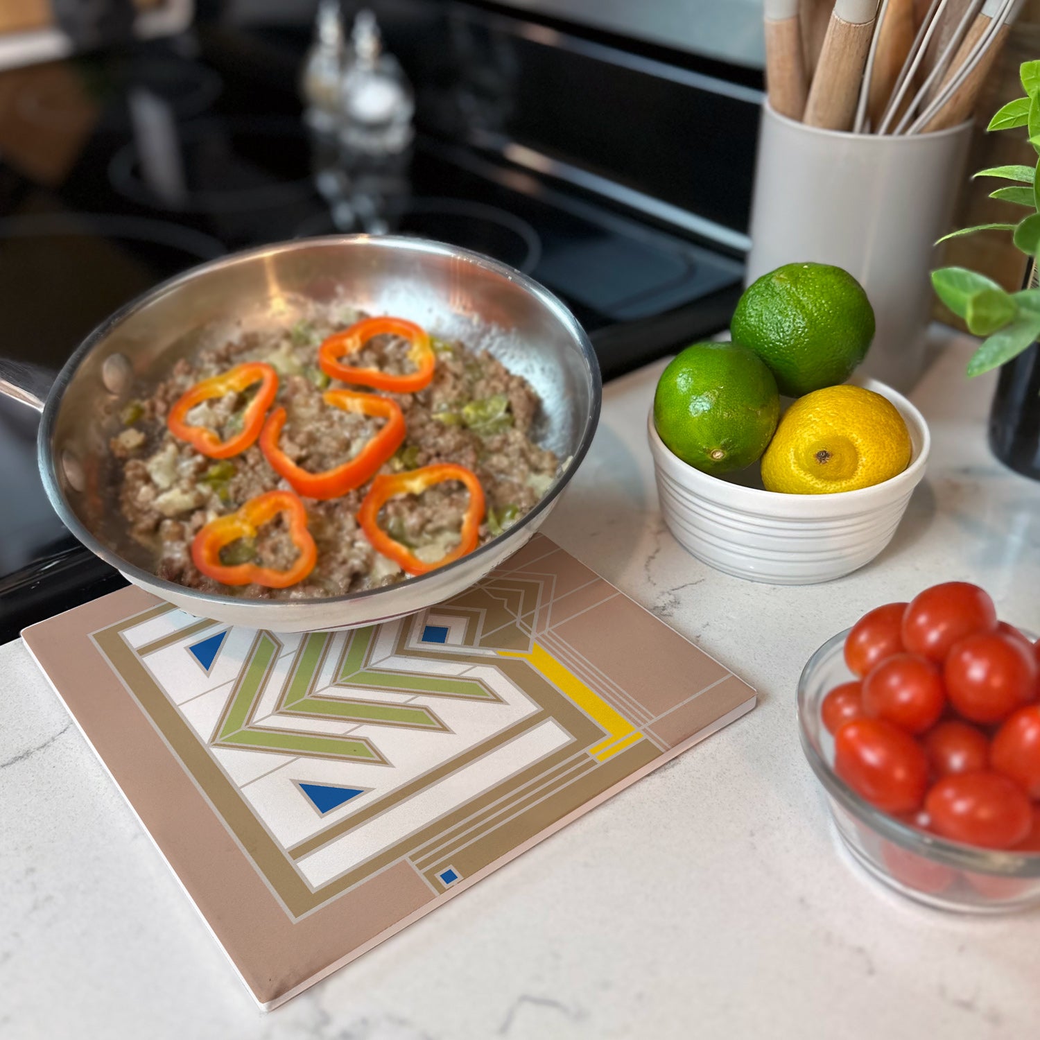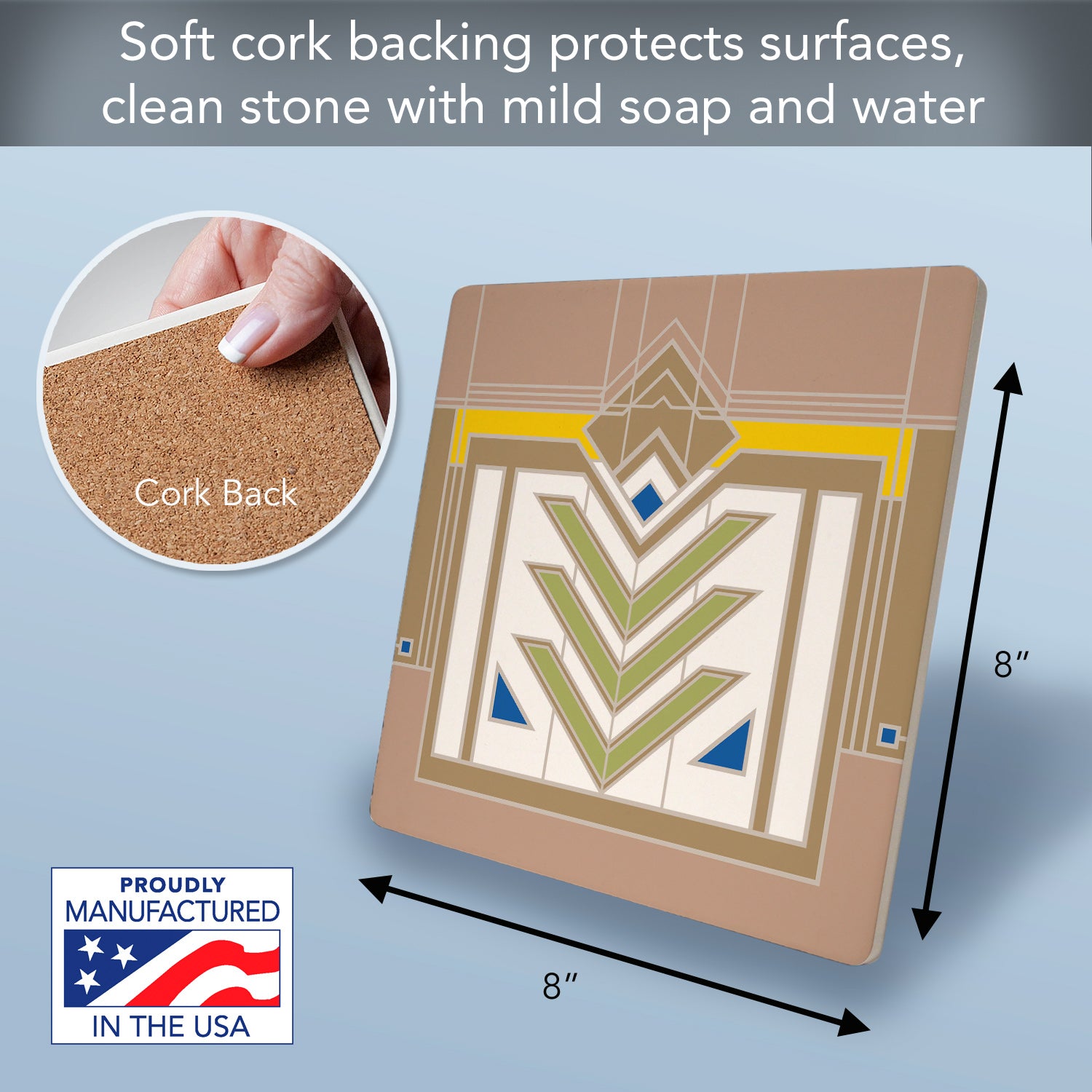 Frank Lloyd Wright's Meyer May Design on 8" Square Stone Trivet Manufactured in the USA